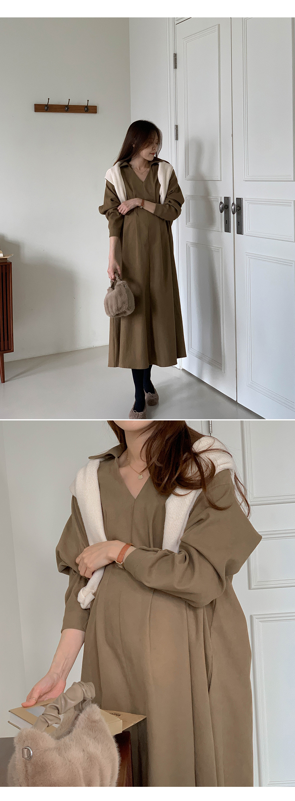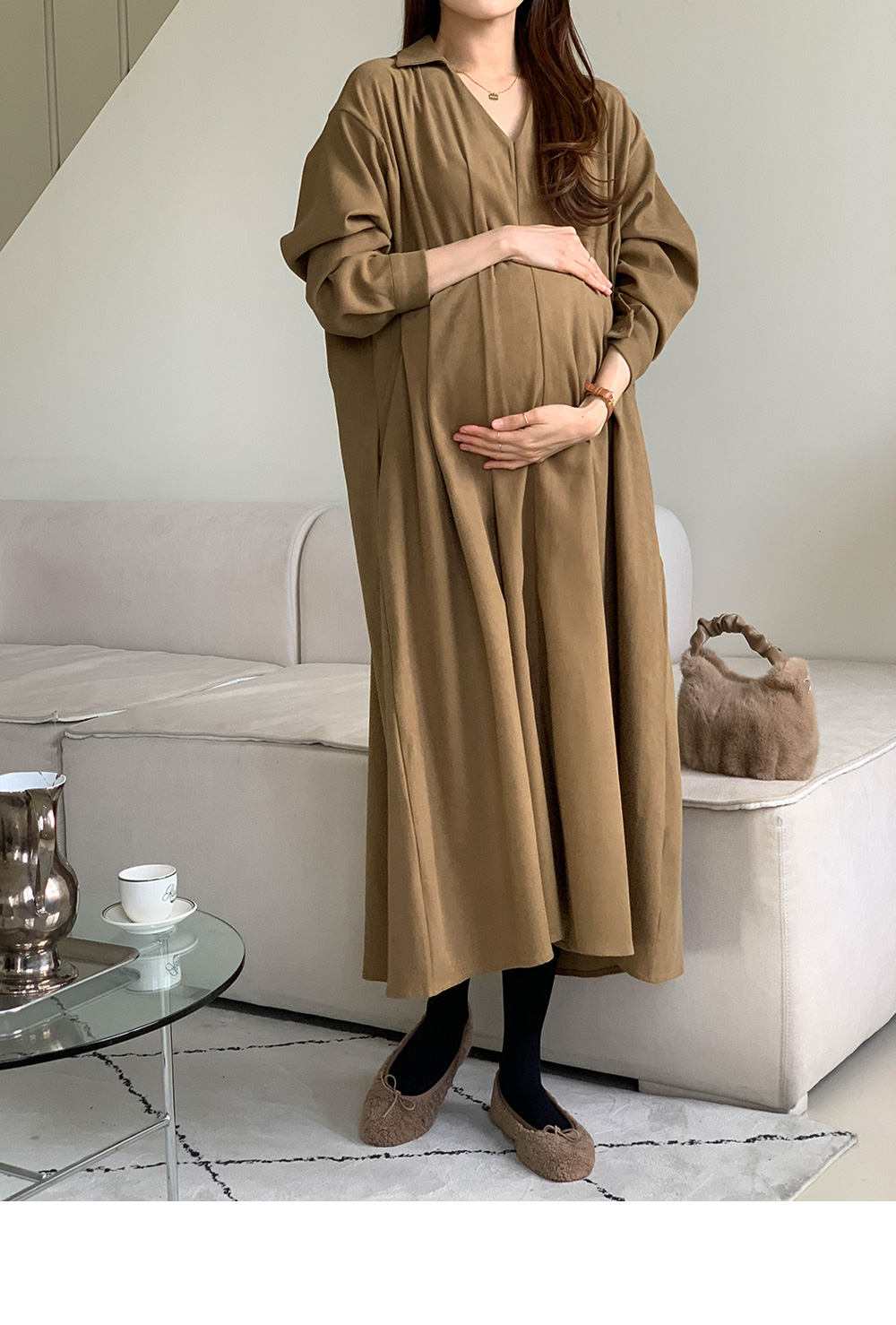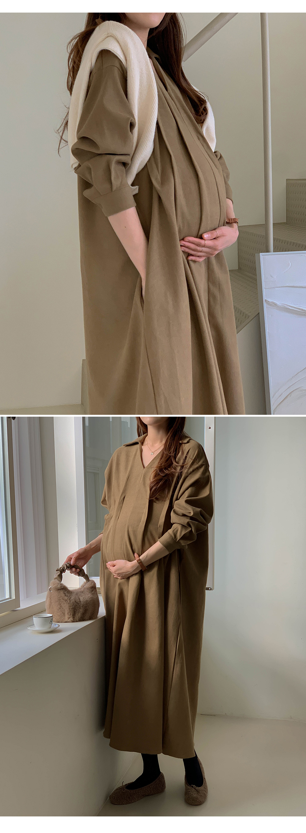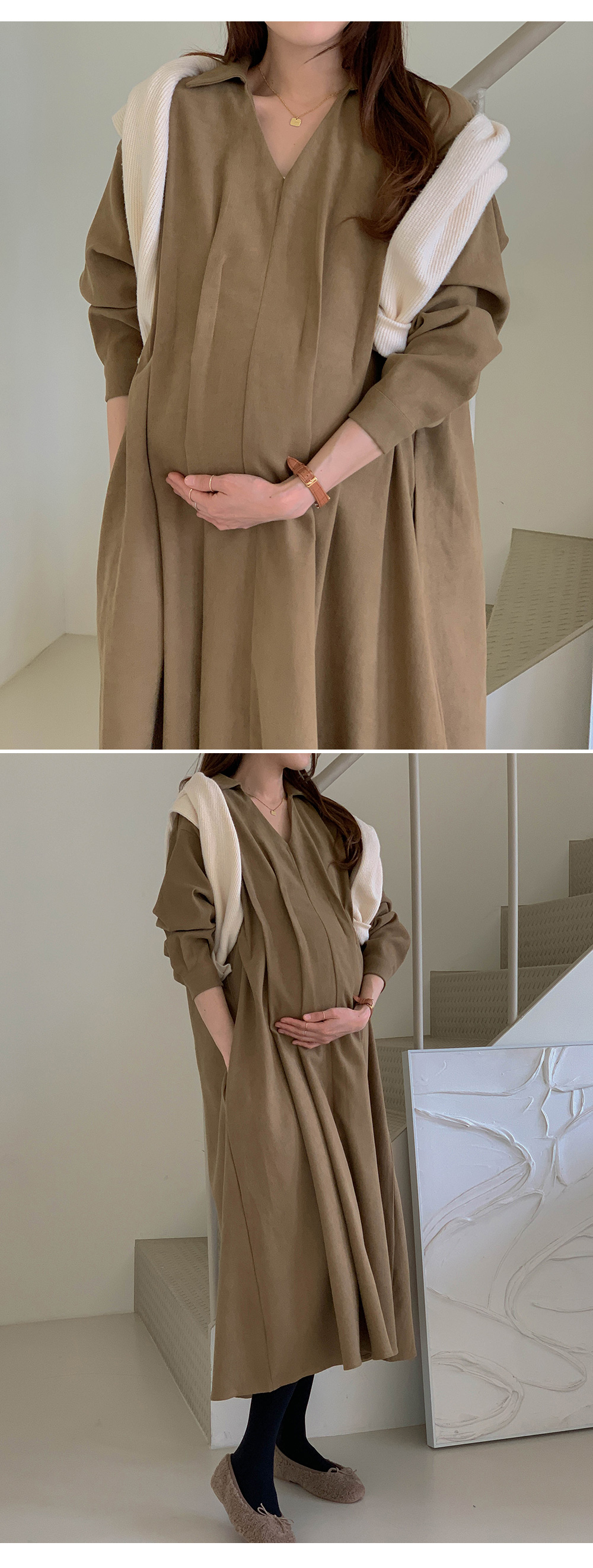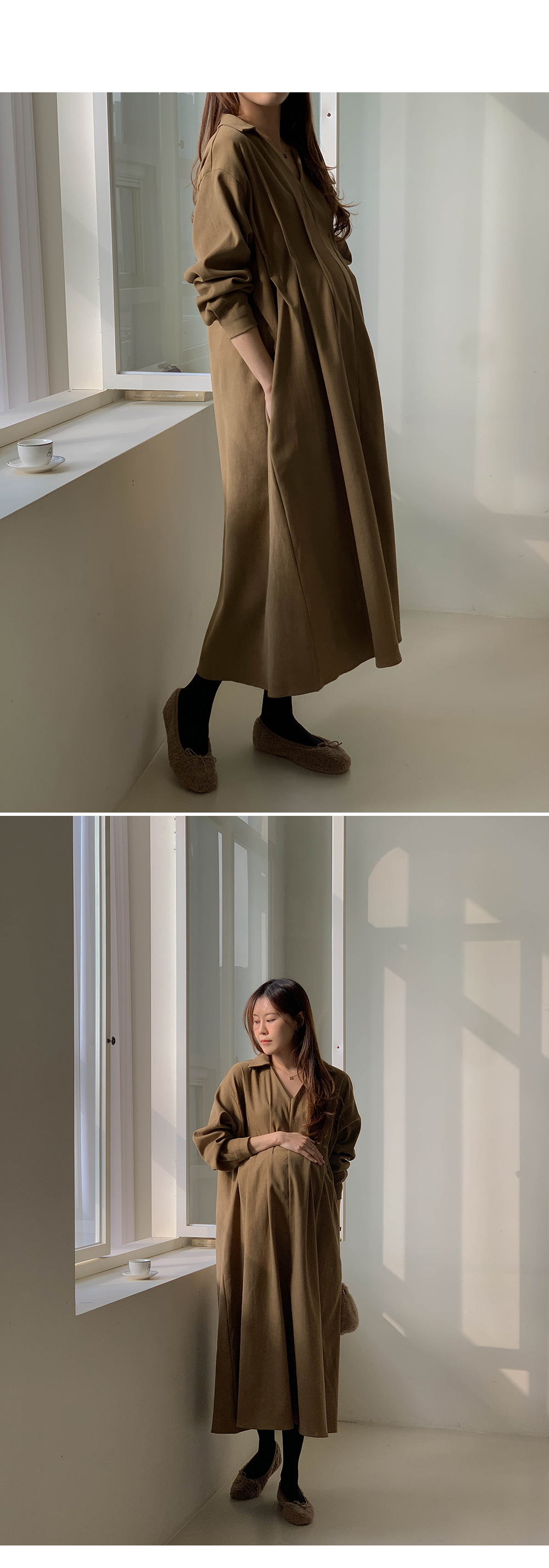 Maternity*Firm Fleece Slim Pin Tuck Collar One Piece