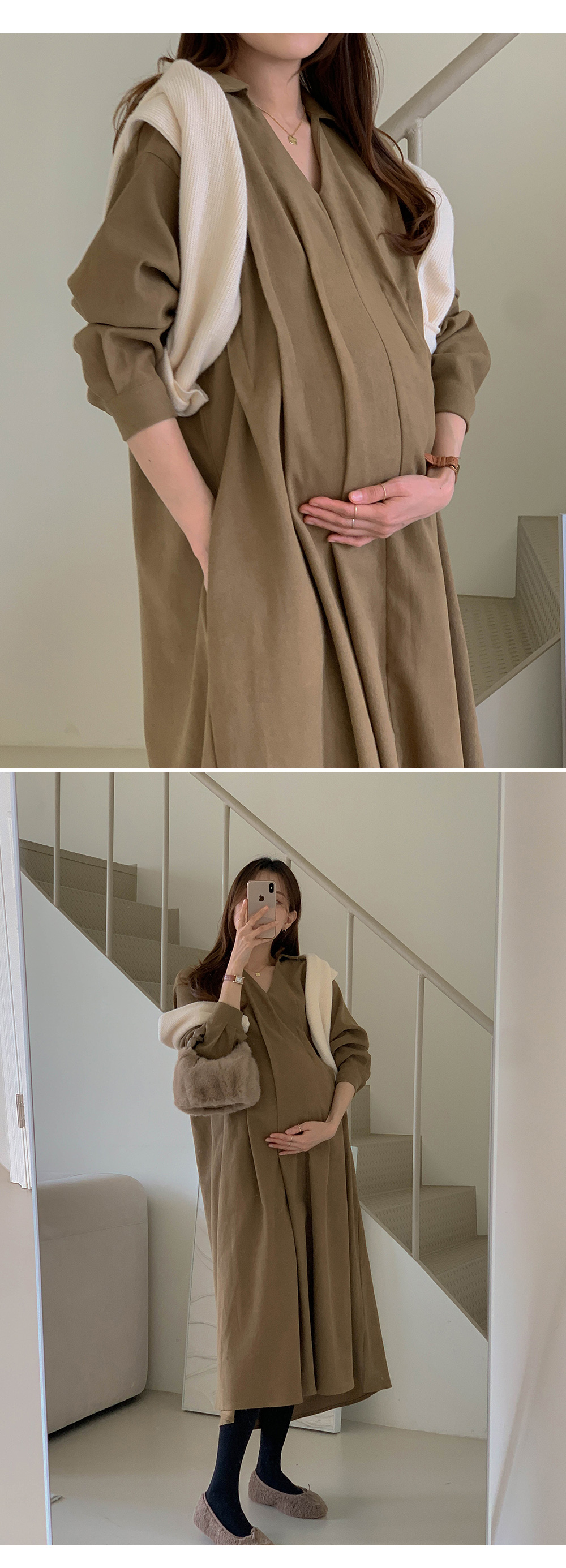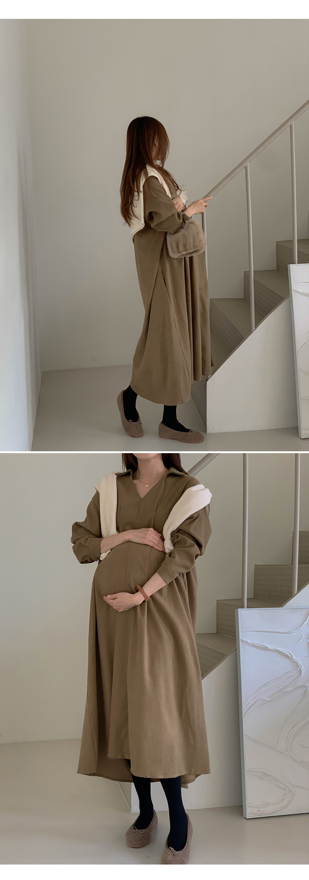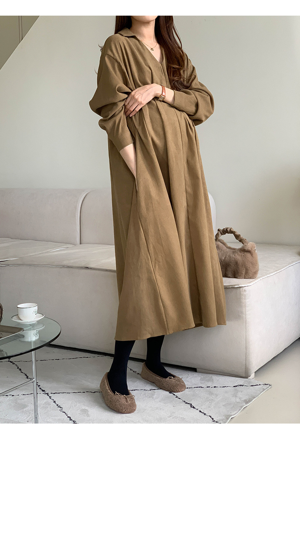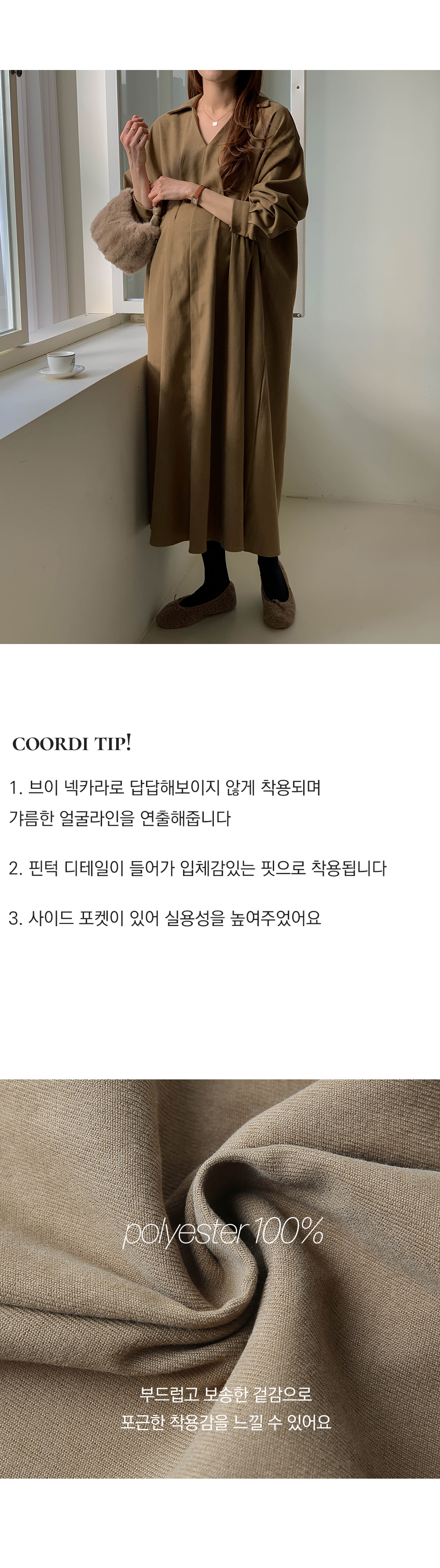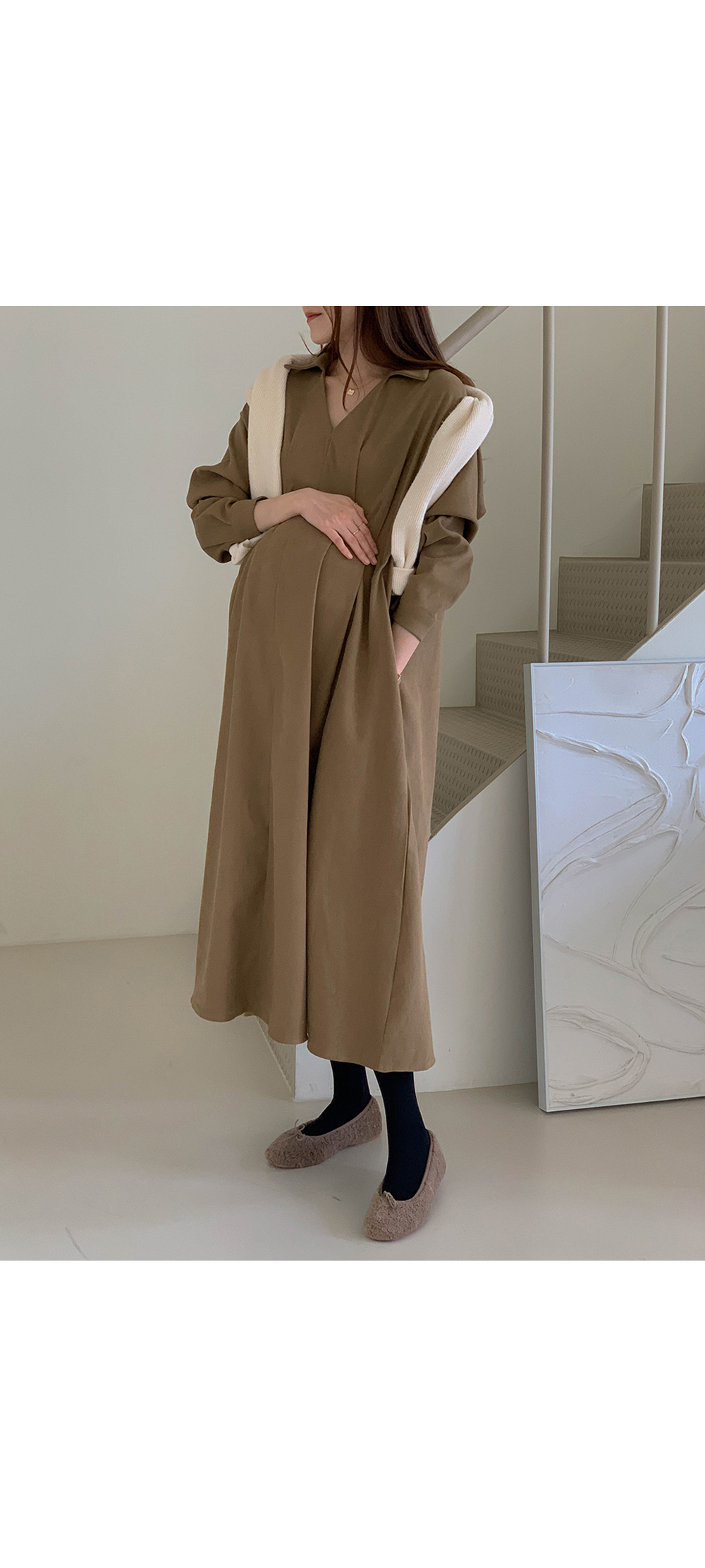 Maternity*Firm Fleece Slim Pin Tuck Collar One Piece