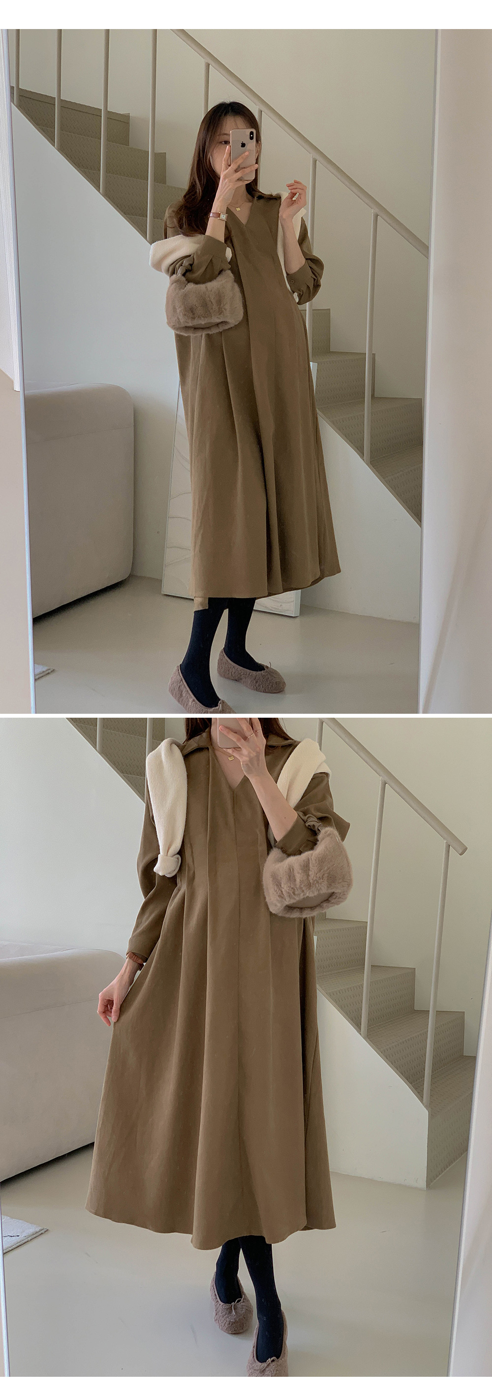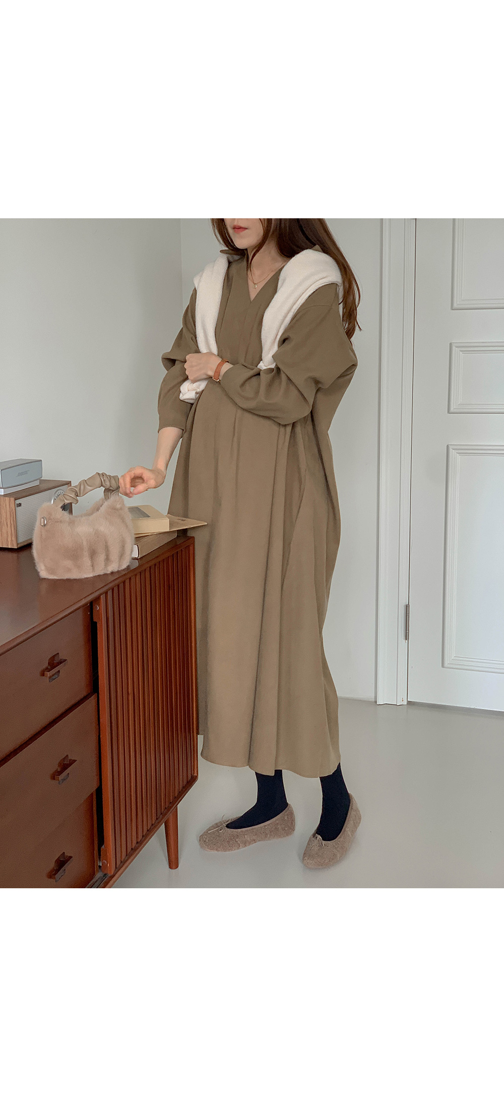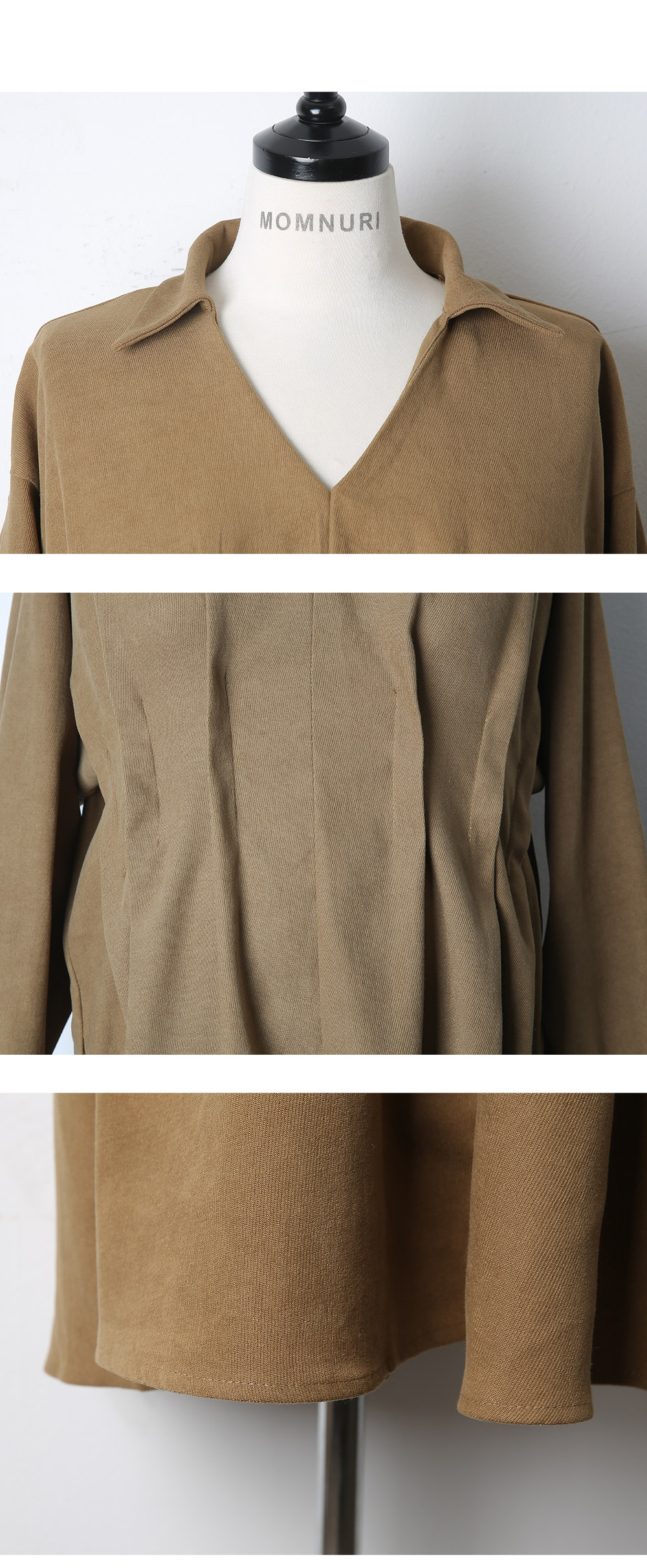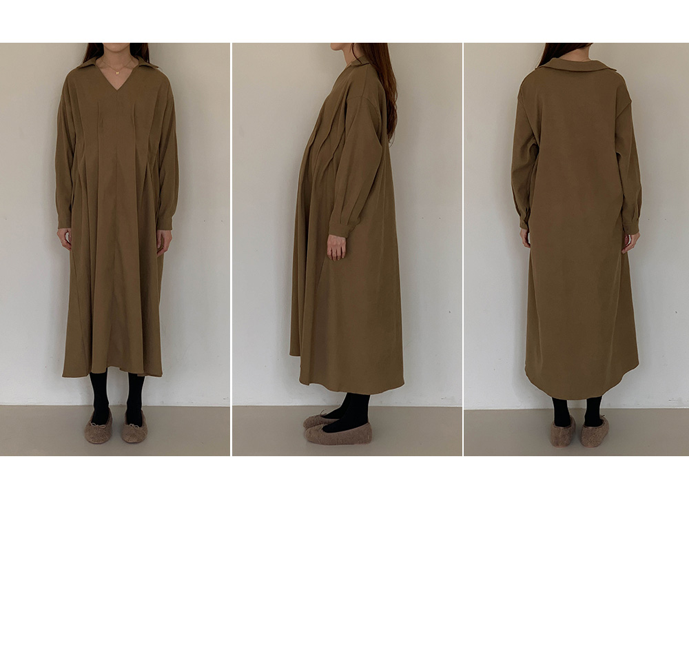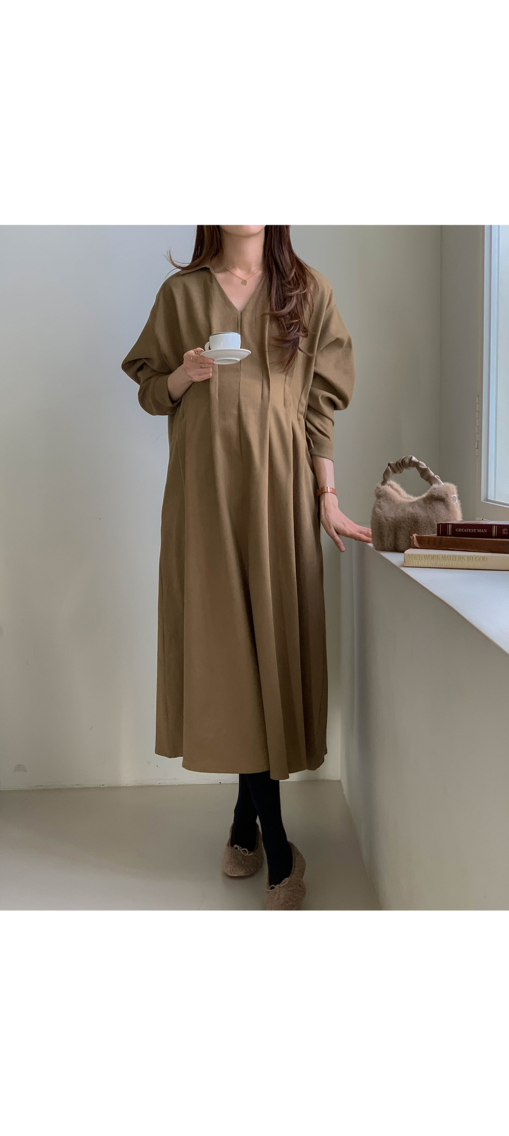 Maternity*Firm Fleece Slim Pin Tuck Collar One Piece