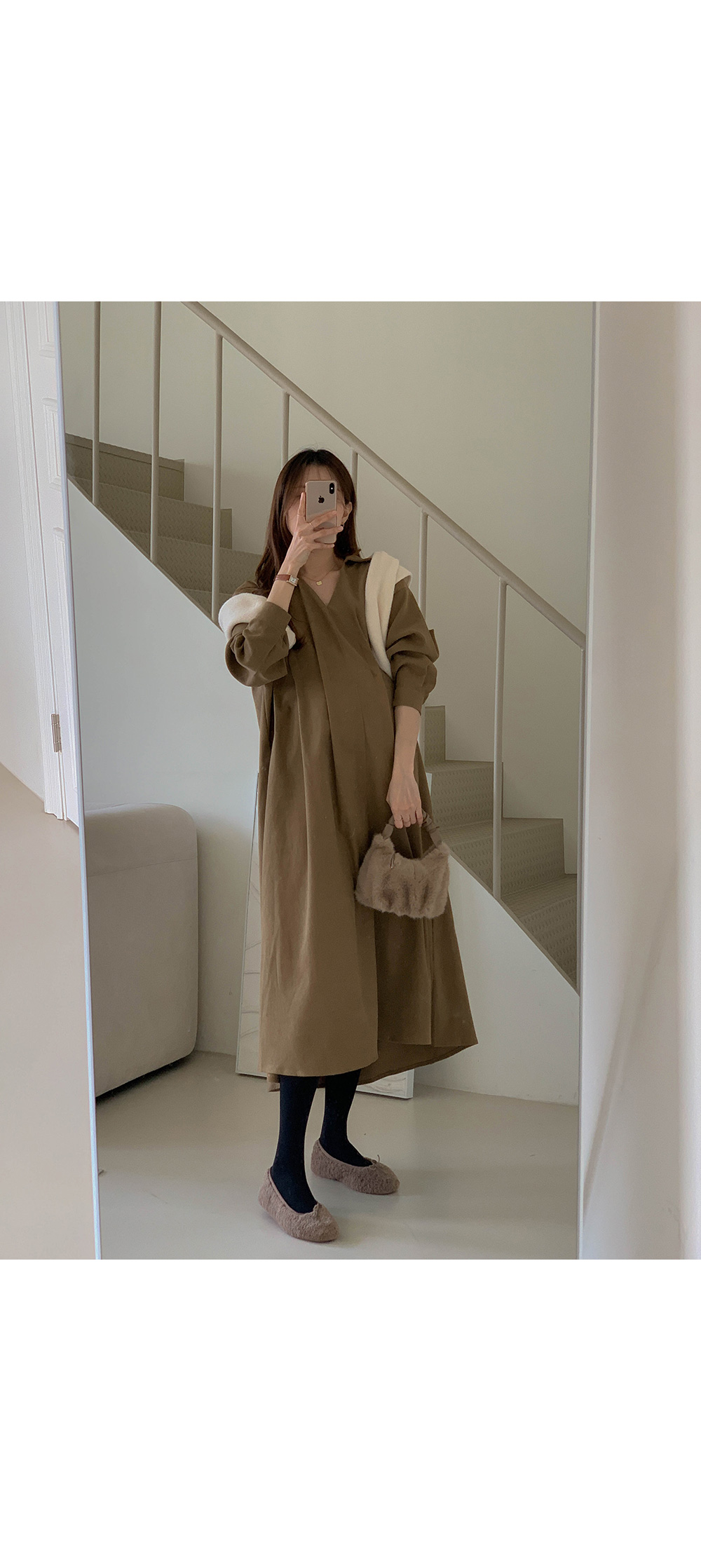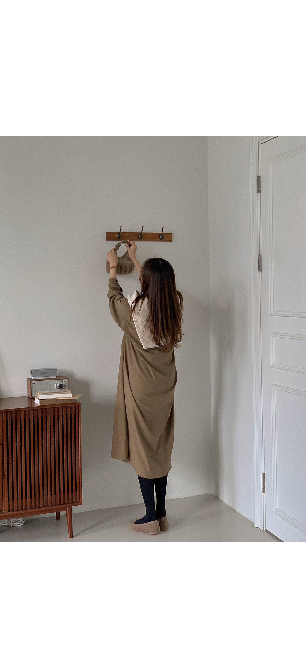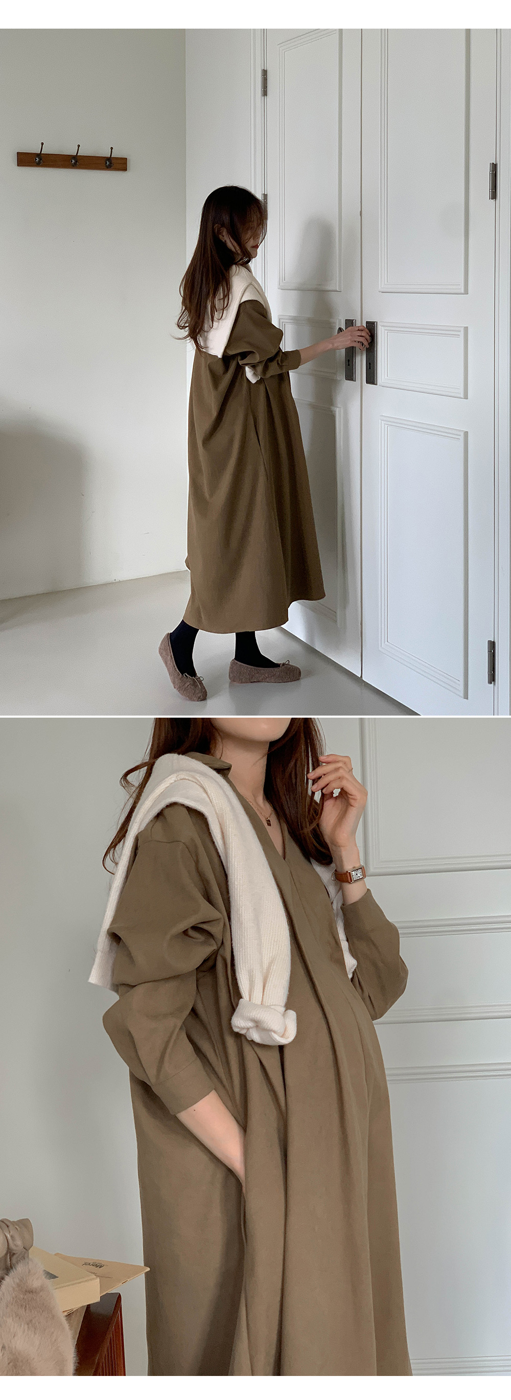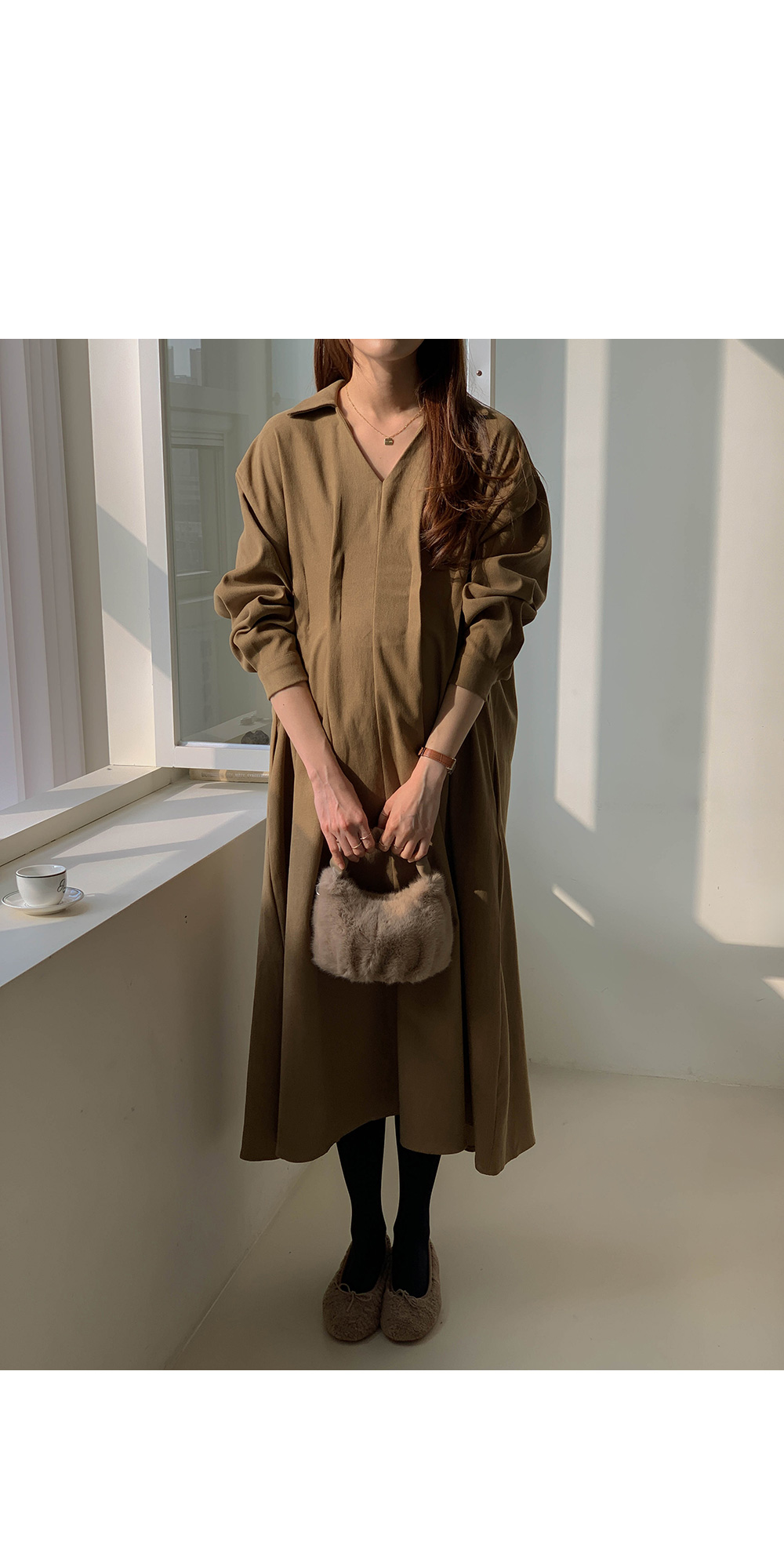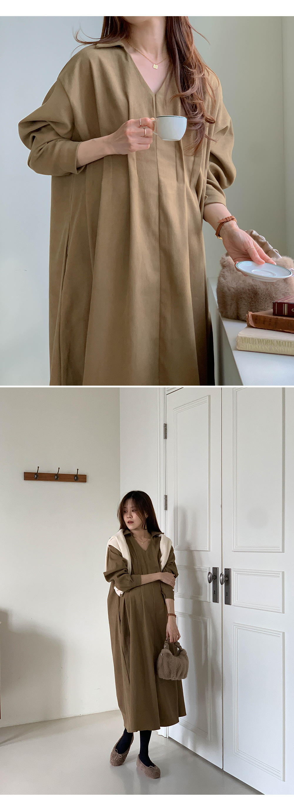 Maternity*Firm Fleece Slim Pin Tuck Collar One Piece