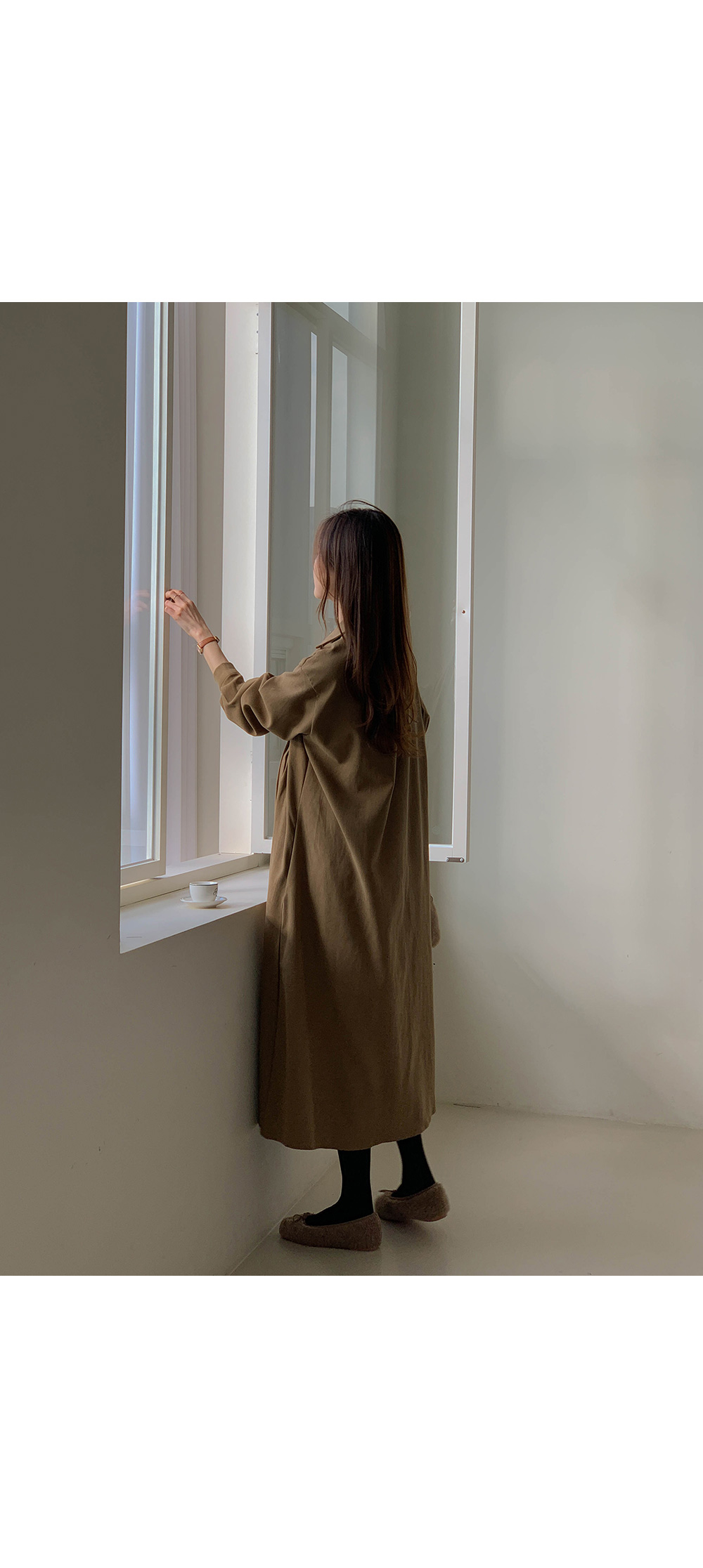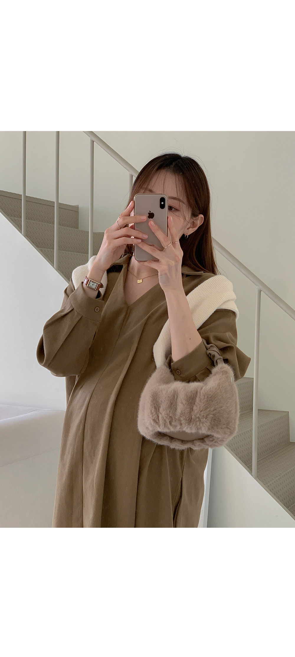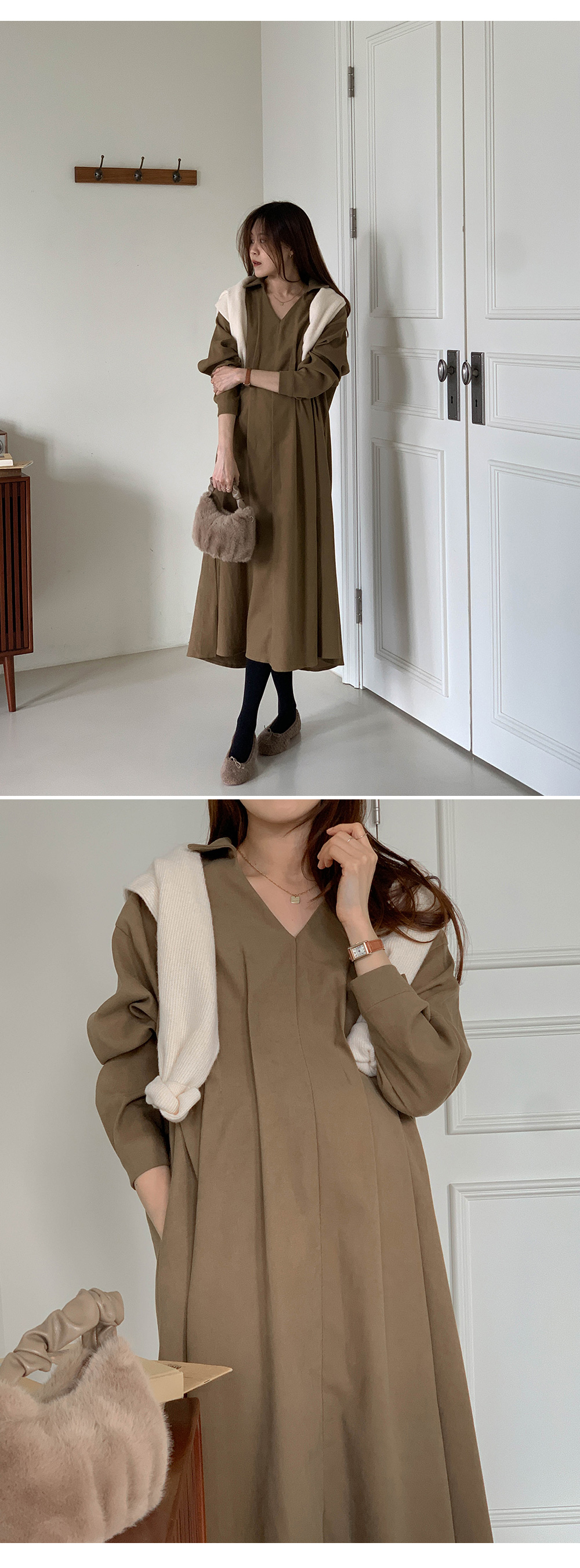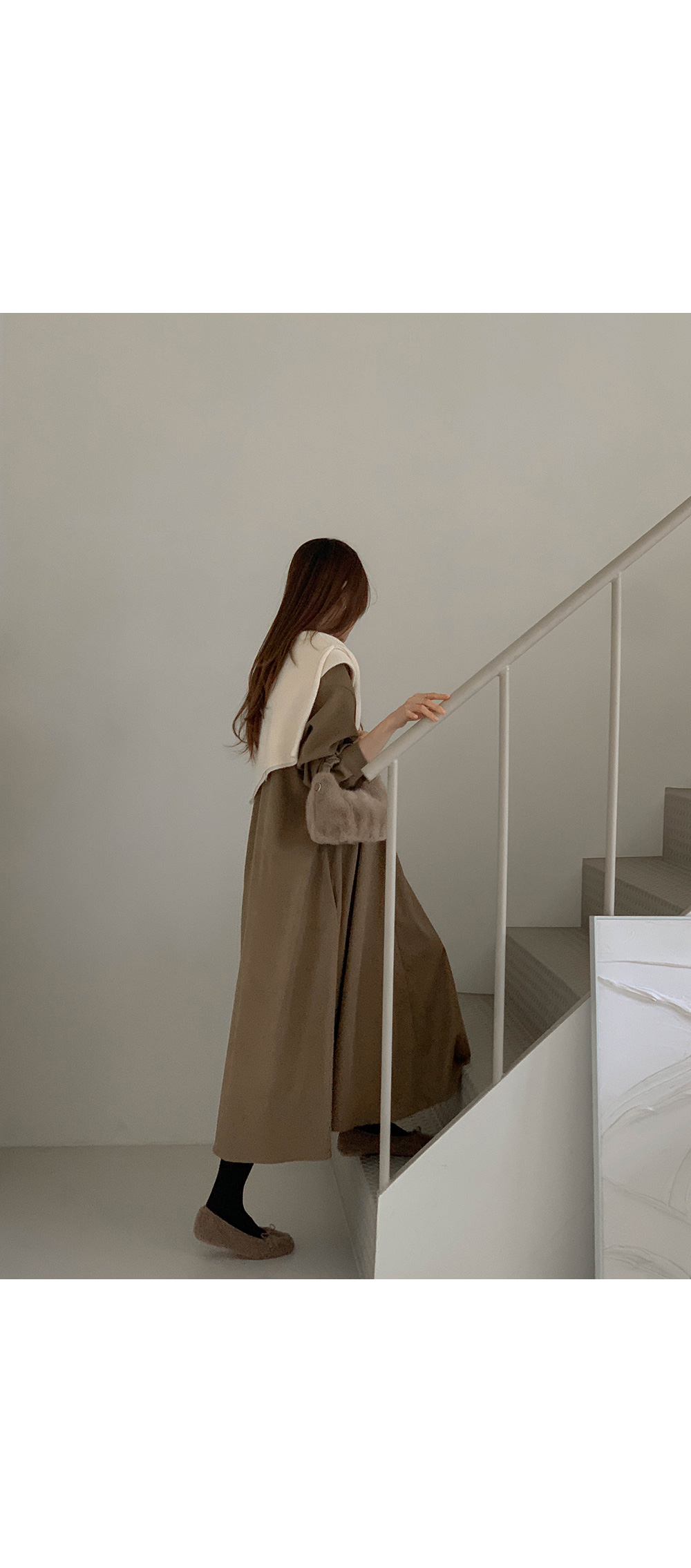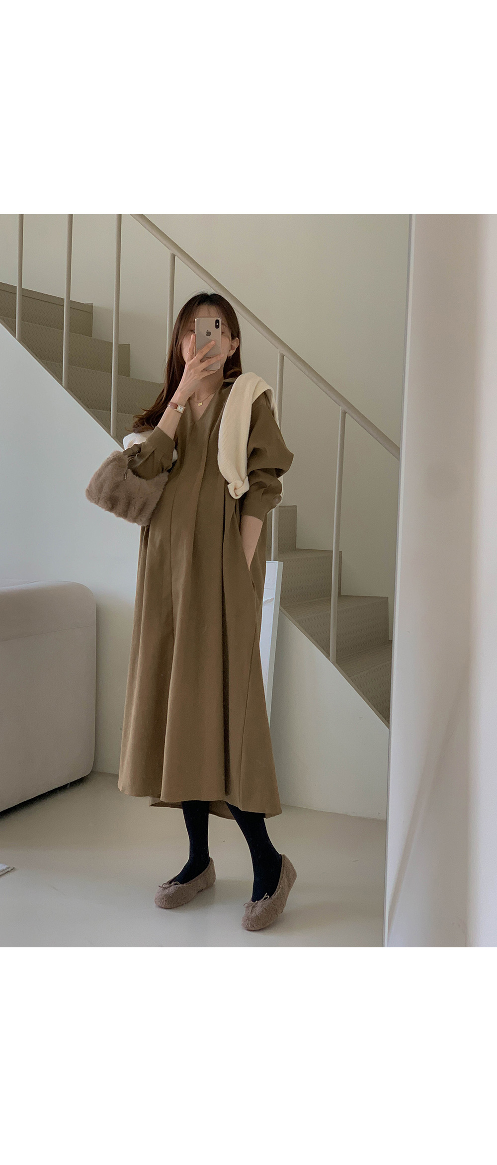 Maternity*Firm Fleece Slim Pin Tuck Collar One Piece