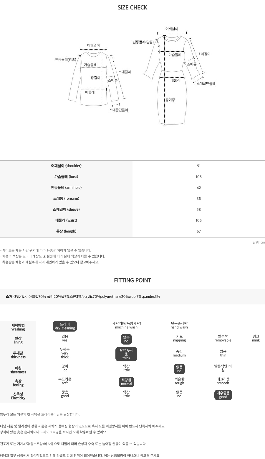# 소재 Fabric [아크릴70% 폴리20%울7%스판3%]