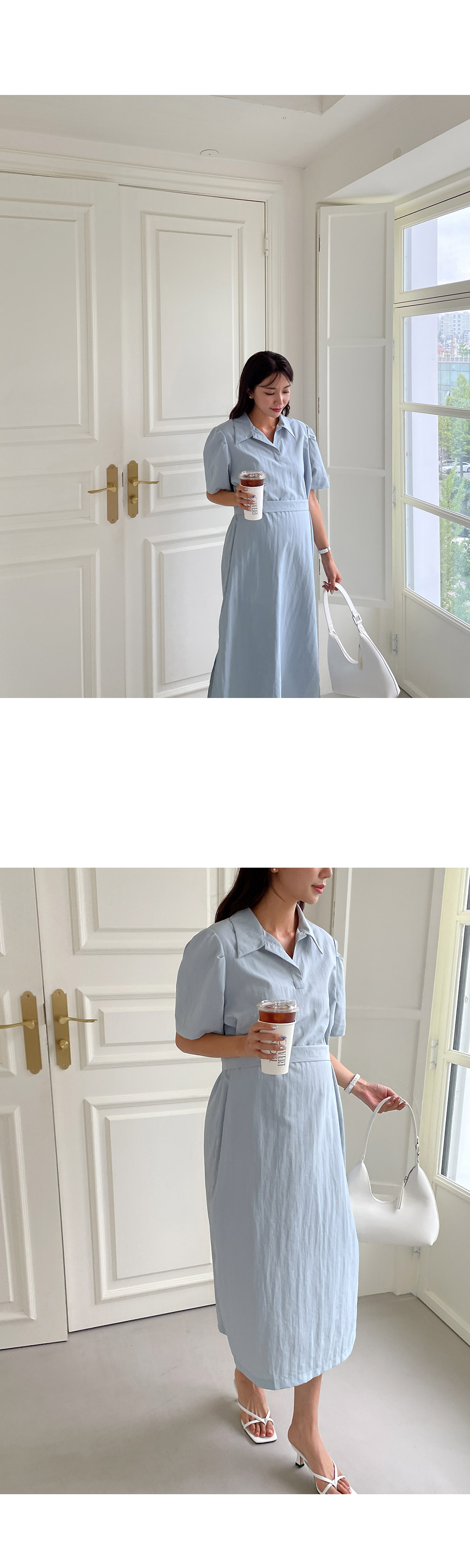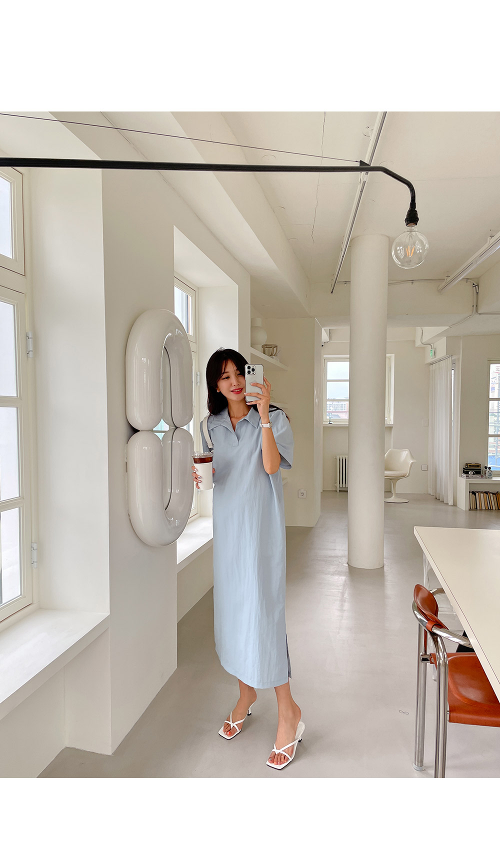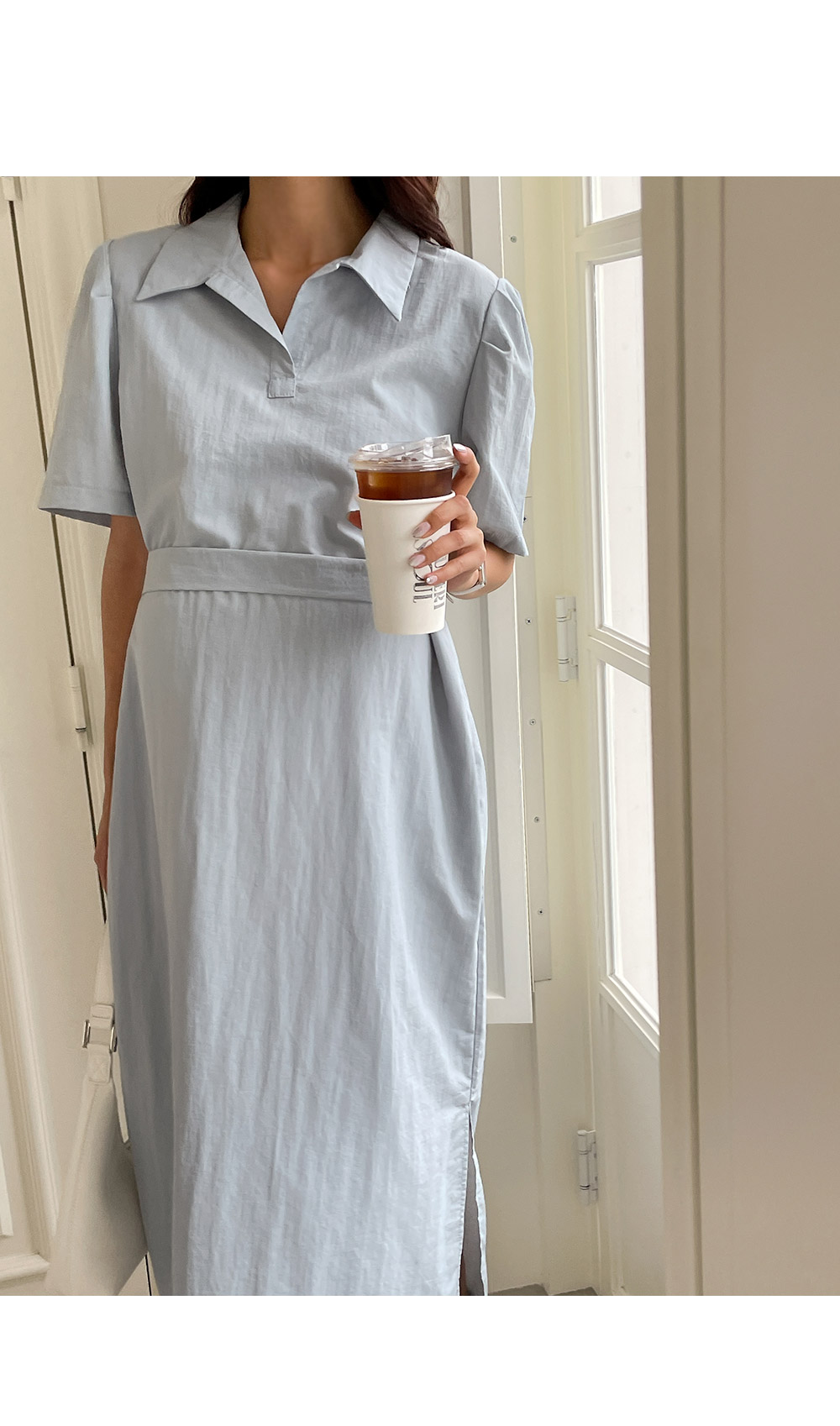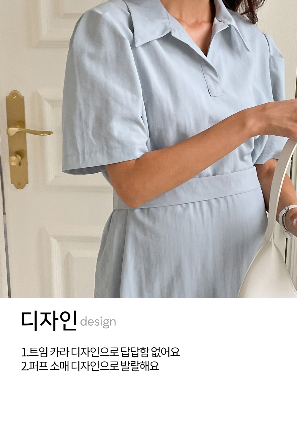 TALK 데일리로 입기 좋은 셔츠 디자인의 원피스를 소개할게요:) 셔츠 디자인이지만 여성스러운 무드가 느껴졌던 원피스에요 퍼프 소매로 발랄한 분위기도 느껴지구요 트임 카라 덕분에 답답함 없이 착용하기 좋았답니다~ 원단이 가볍고 시원해서 마음에 들었는데요 바스락 거리는 텍스쳐로 바디에 달라붙지 않아 여름 내내 착용하기 좋겠더라구요! 구김도 많이 가지 않아 외출할때도 편안했구요 스트랩이 함께해 실루엣을 조절 하실 수 있어 출산 전,후 모두 입기 좋답니다~ SIZE TIP free size /