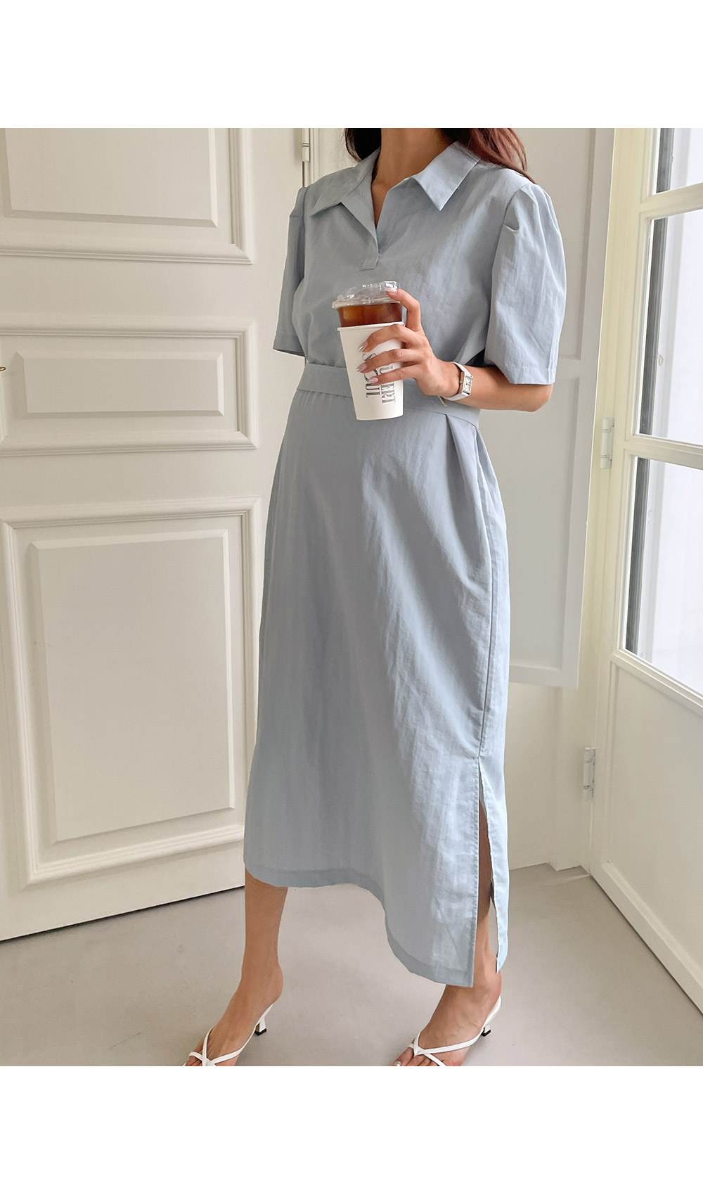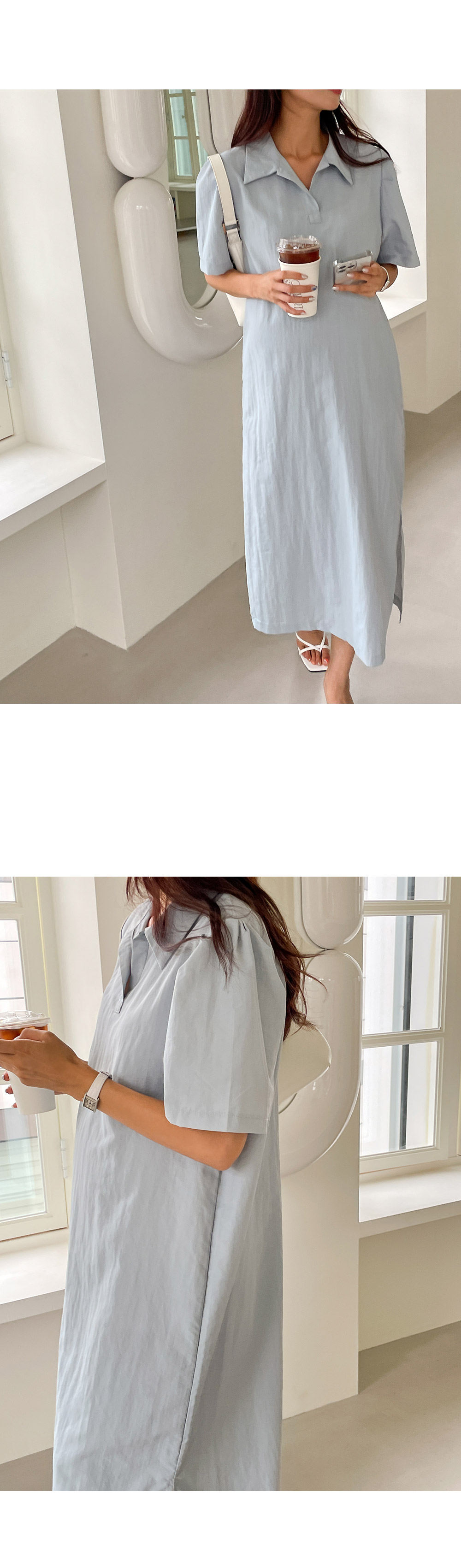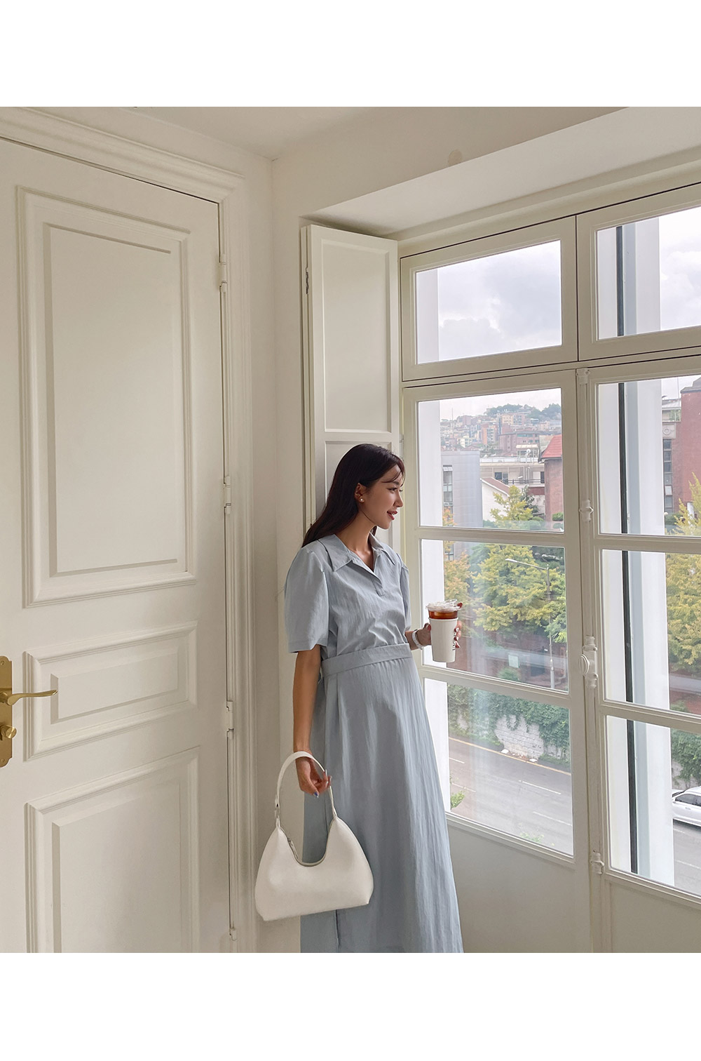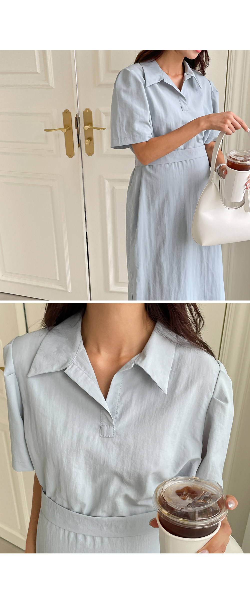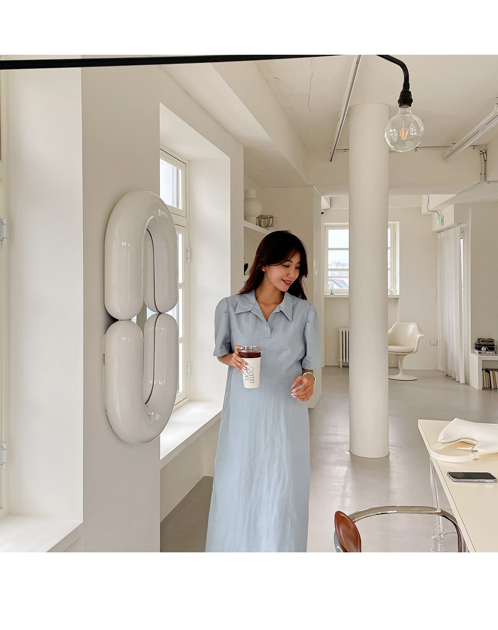 TALK 데일리로 입기 좋은 셔츠 디자인의 원피스를 소개할게요:) 셔츠 디자인이지만 여성스러운 무드가 느껴졌던 원피스에요 퍼프 소매로 발랄한 분위기도 느껴지구요 트임 카라 덕분에 답답함 없이 착용하기 좋았답니다~ 원단이 가볍고 시원해서 마음에 들었는데요 바스락 거리는 텍스쳐로 바디에 달라붙지 않아 여름 내내 착용하기 좋겠더라구요! 구김도 많이 가지 않아 외출할때도 편안했구요 스트랩이 함께해 실루엣을 조절 하실 수 있어 출산 전,후 모두 입기 좋답니다~ SIZE TIP free size /