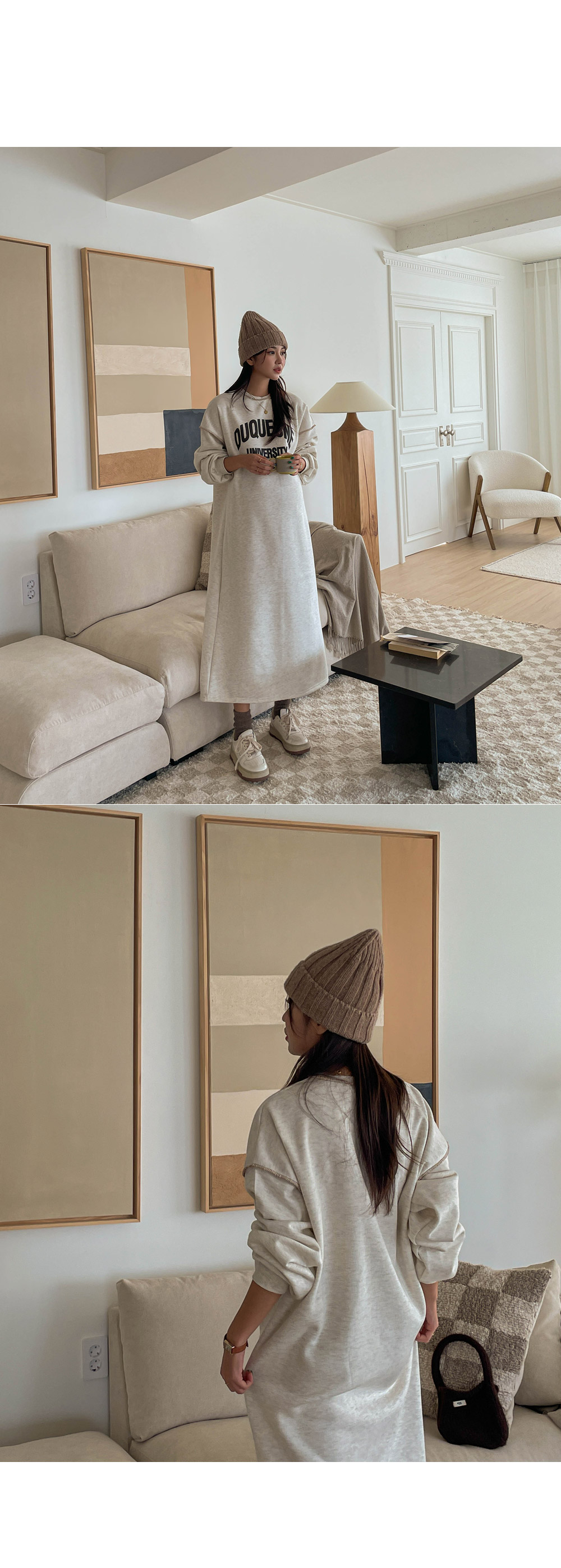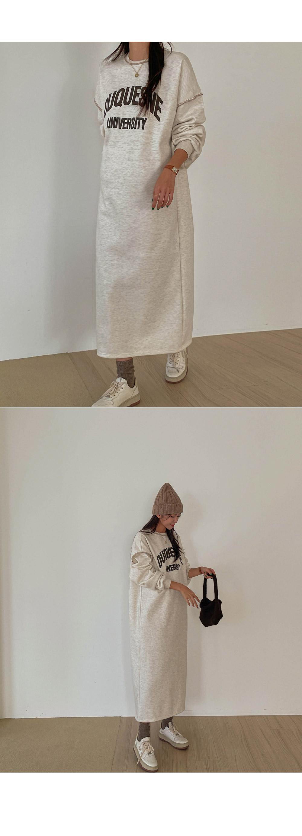 캐주얼한 무드로 입기 좋은 기모 원피스를 소개해드릴게요.
