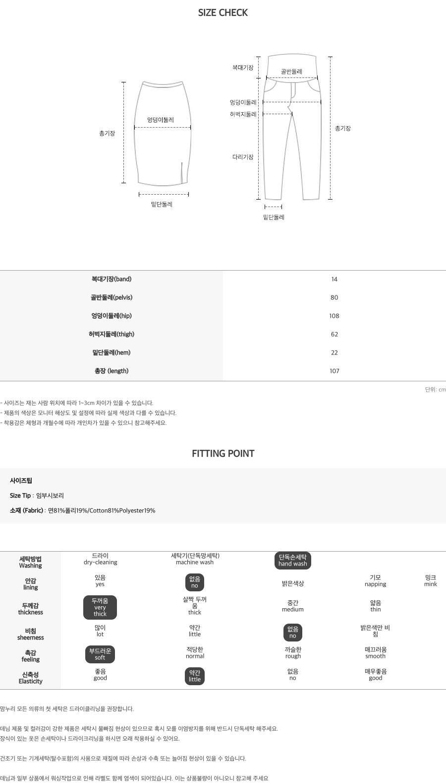 ![]() TALK 편안하게 즐기기 좋은 조거 팬츠를 소개할게요~ 하나쯤은 꼭 소장해야할 조거팬츠에요! 벨로아 소재로 제작된 따뜻하면서 포근한 착용감이 좋은 바지랍니다:) 적당히 여유있는 핏과 임부시보리 디테일로 편안하게 즐길 수 있었구요 양 사이드 포켓으로 실용성까지 더해준 잇 아이템이에요! 다양한 상의와 이지하게 매치되어 활용도 높은 팬츠가 될거에요♥ ♡맘누리의 옷은 출산 후에도 예쁘게 입으실 수 있어요! SIZE TIP free size 개인 체형에 따라 핏이나 기장이 달라질 수 있으니, 구매 전 상세 사이즈를 꼭 확인 부탁드립니다. 피팅 FITTING 지혜 모델 (백메란지 컬러 착용) ![]() ![]() ![]() ![]() ![]() ![]() ![]() ![]() ![]() ![]() ![]() ![]() ![]() ![]() ![]() ![]() ![]() ![]() ![]() ![]() ![]() ![]() |