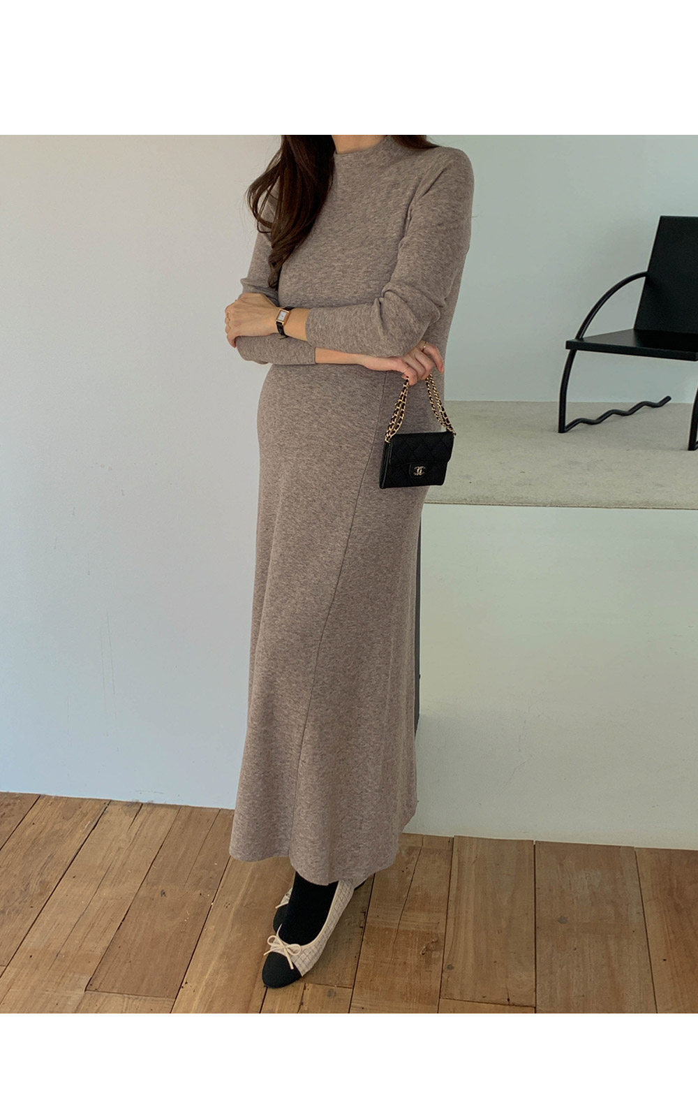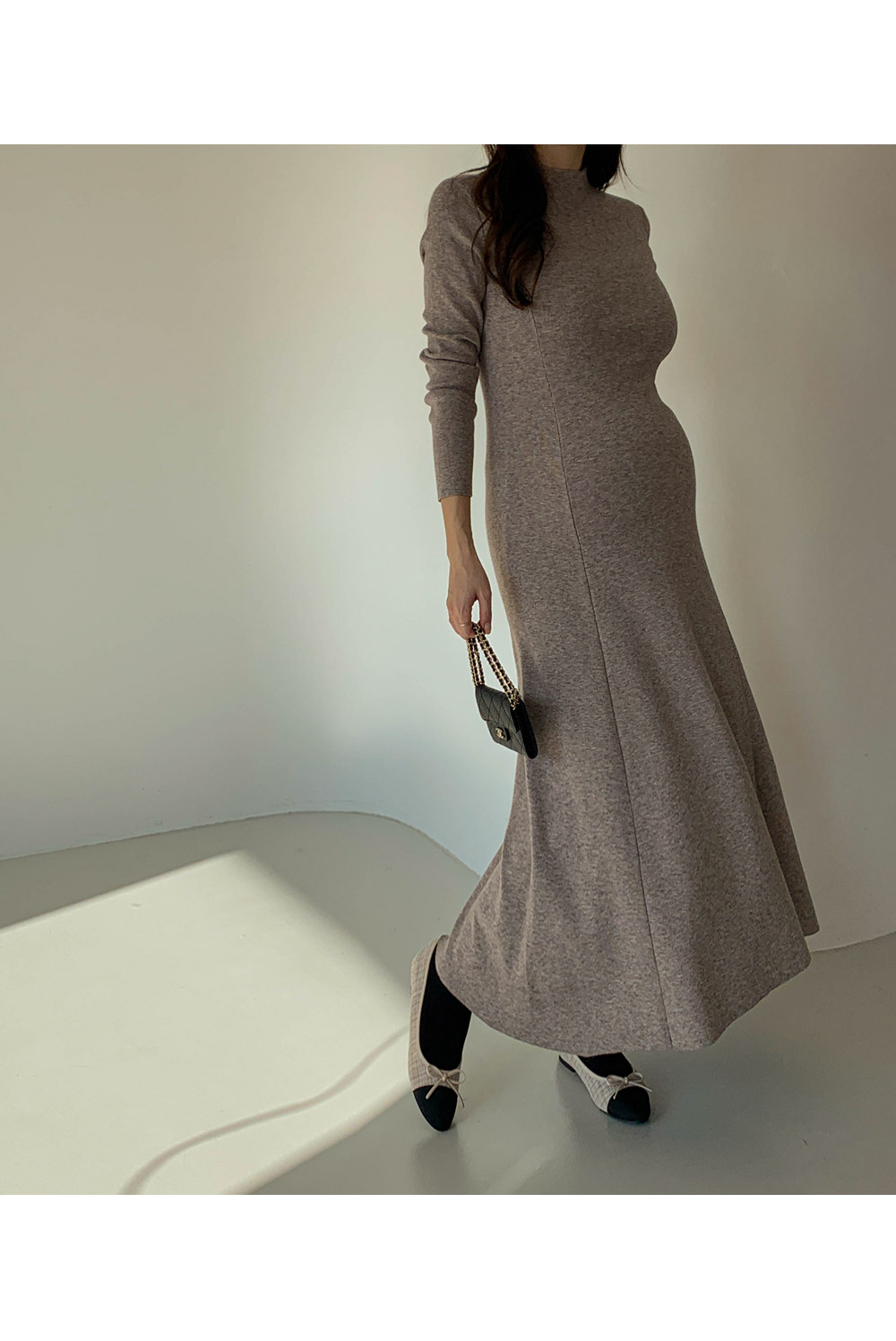 Maternity*Slim cut line firm knit dress)