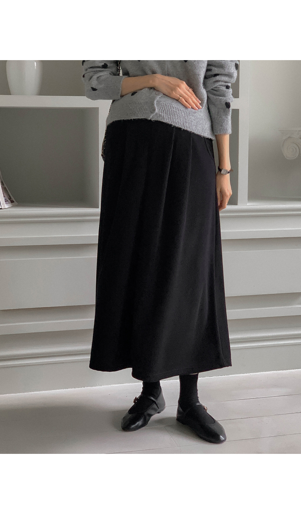 Maternity*Mulet Pintuck Flare Rong Skirt)