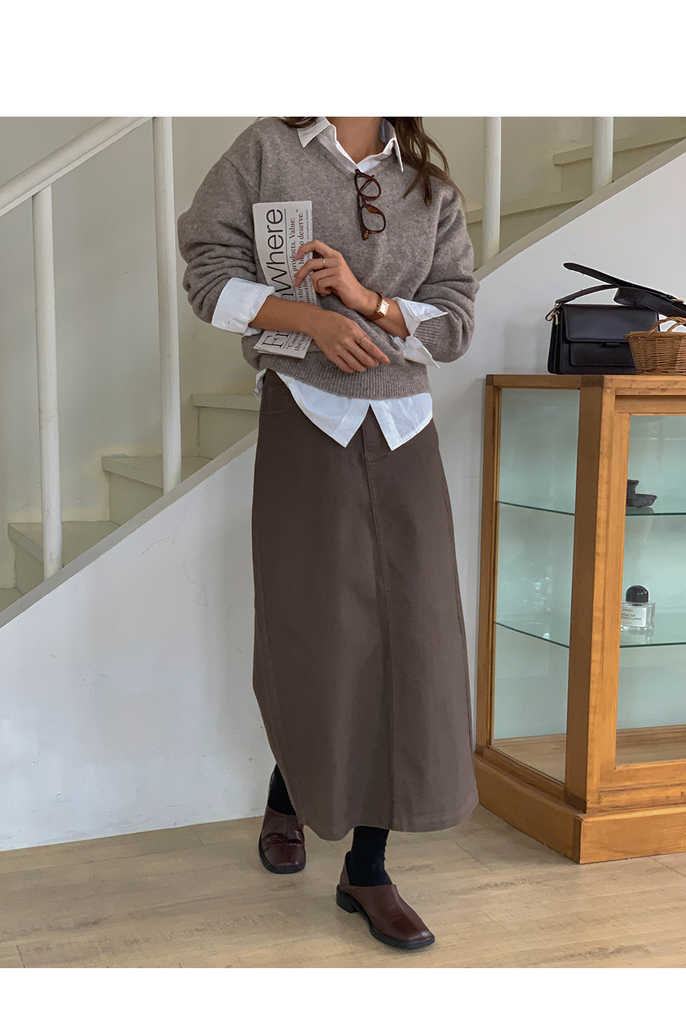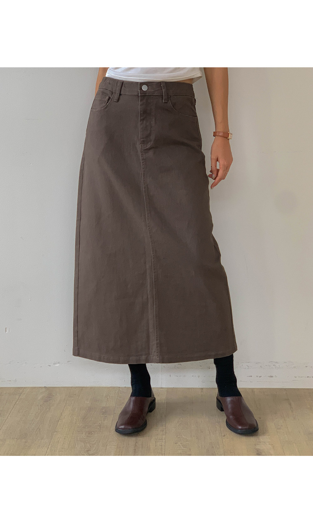 Twill peach back team spandex long skirt)