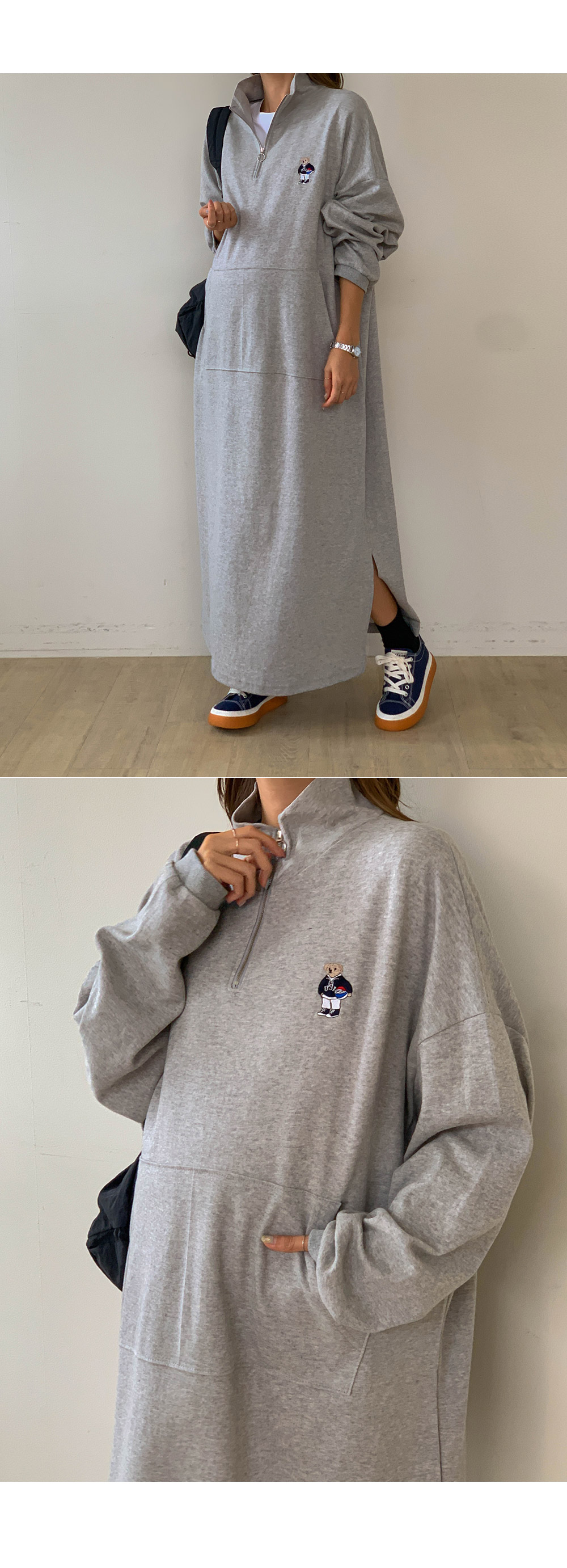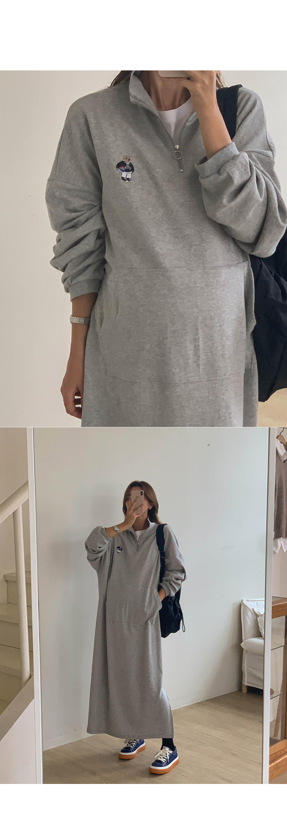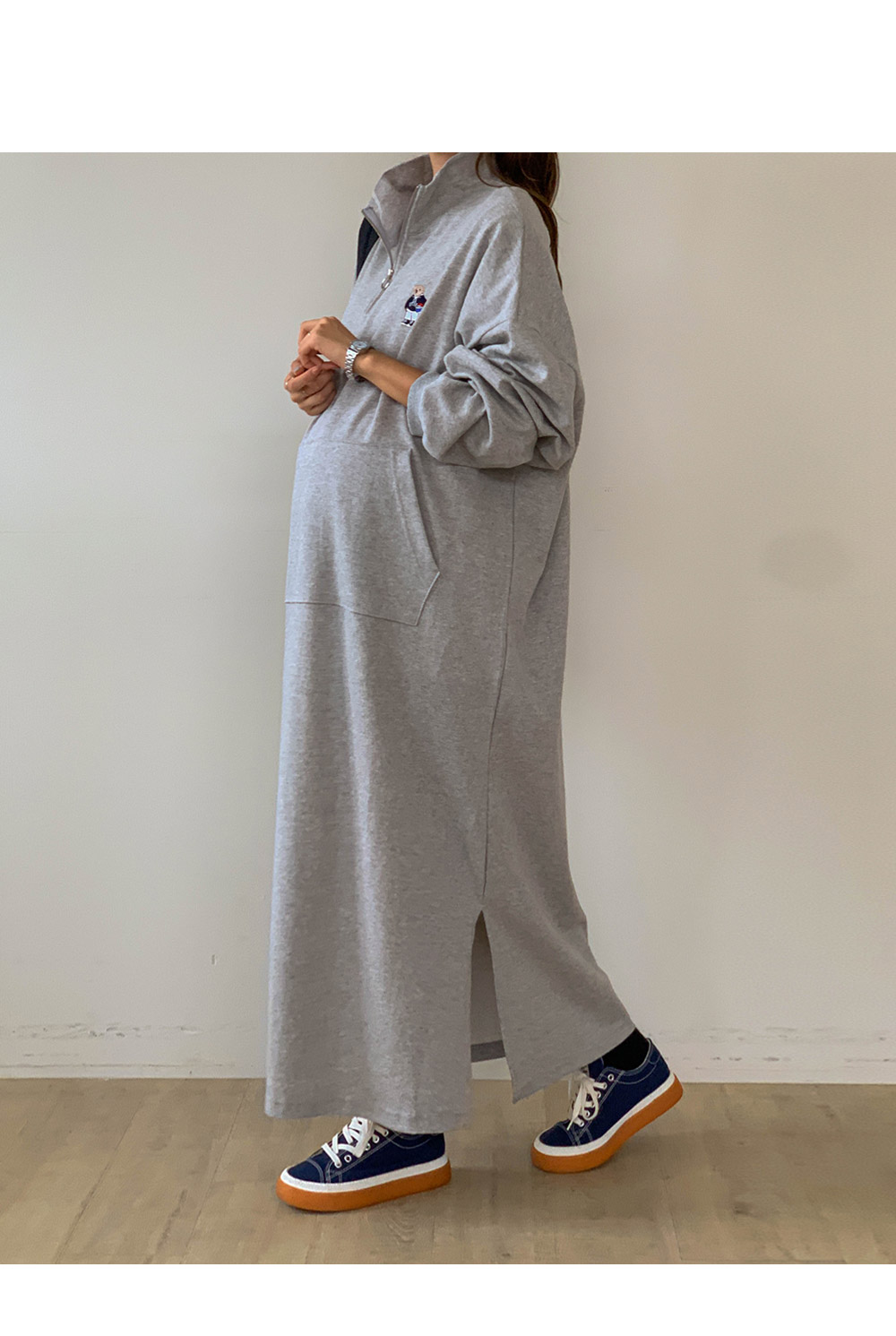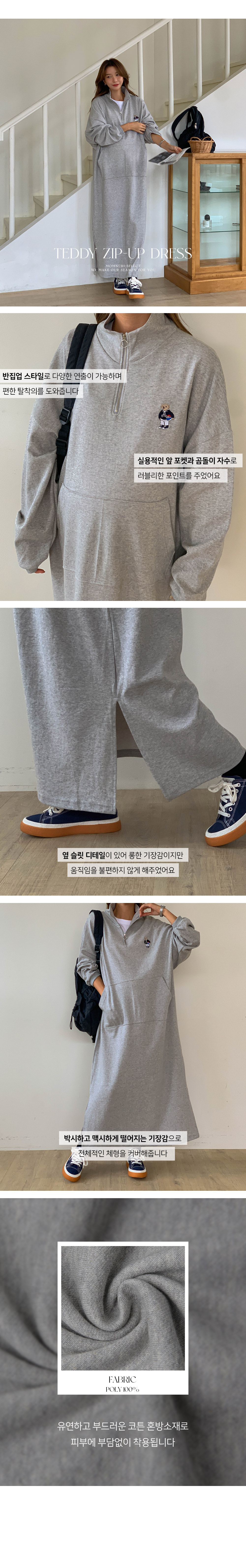 Maternity*Teddy Embroidery Collar Zip-up One Piece)
