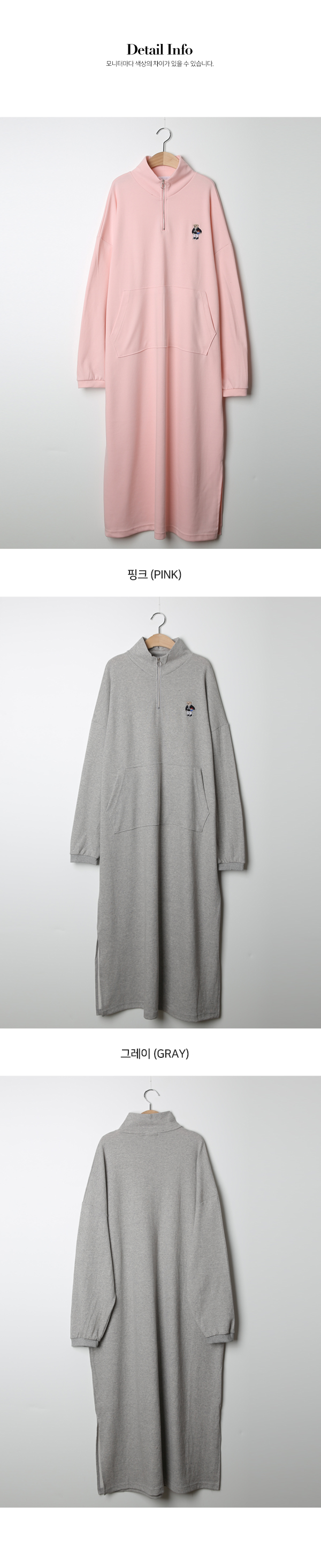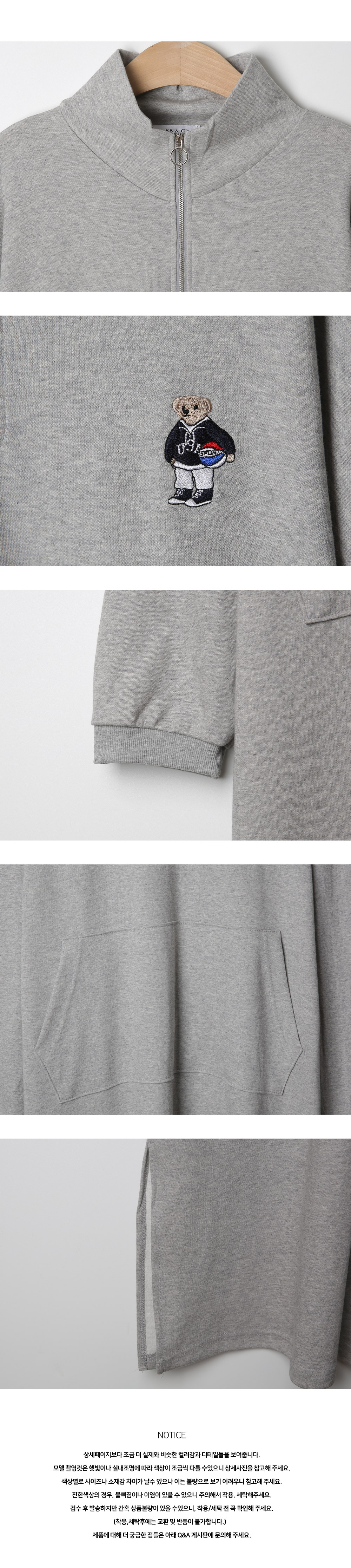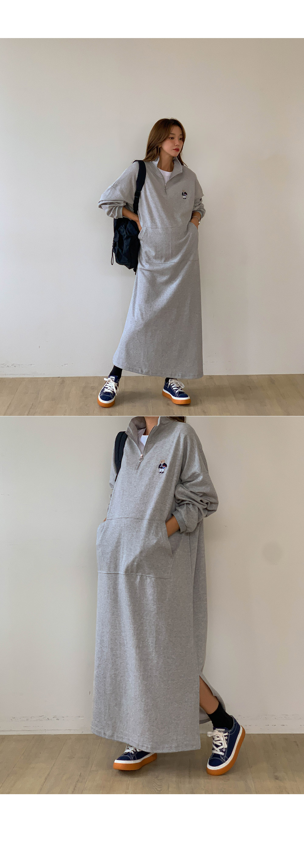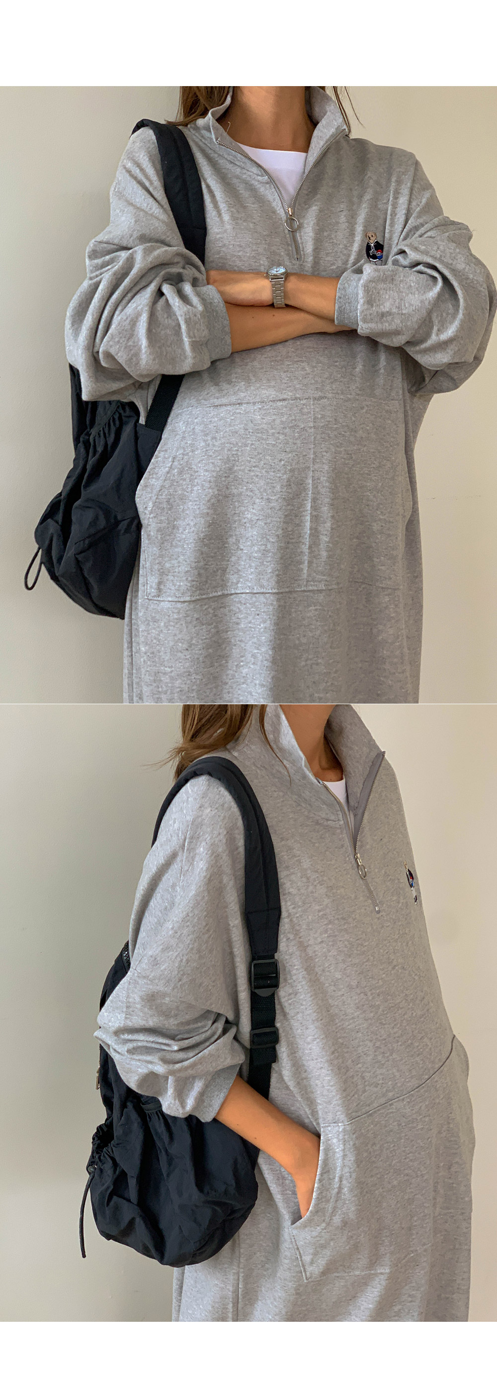 Maternity*Teddy Embroidery Collar Zip-up One Piece)