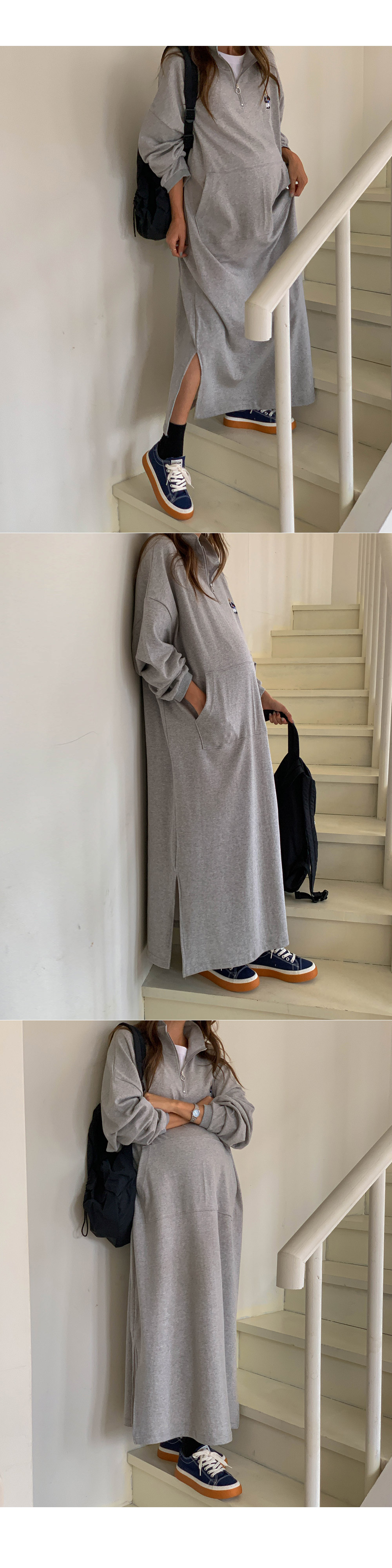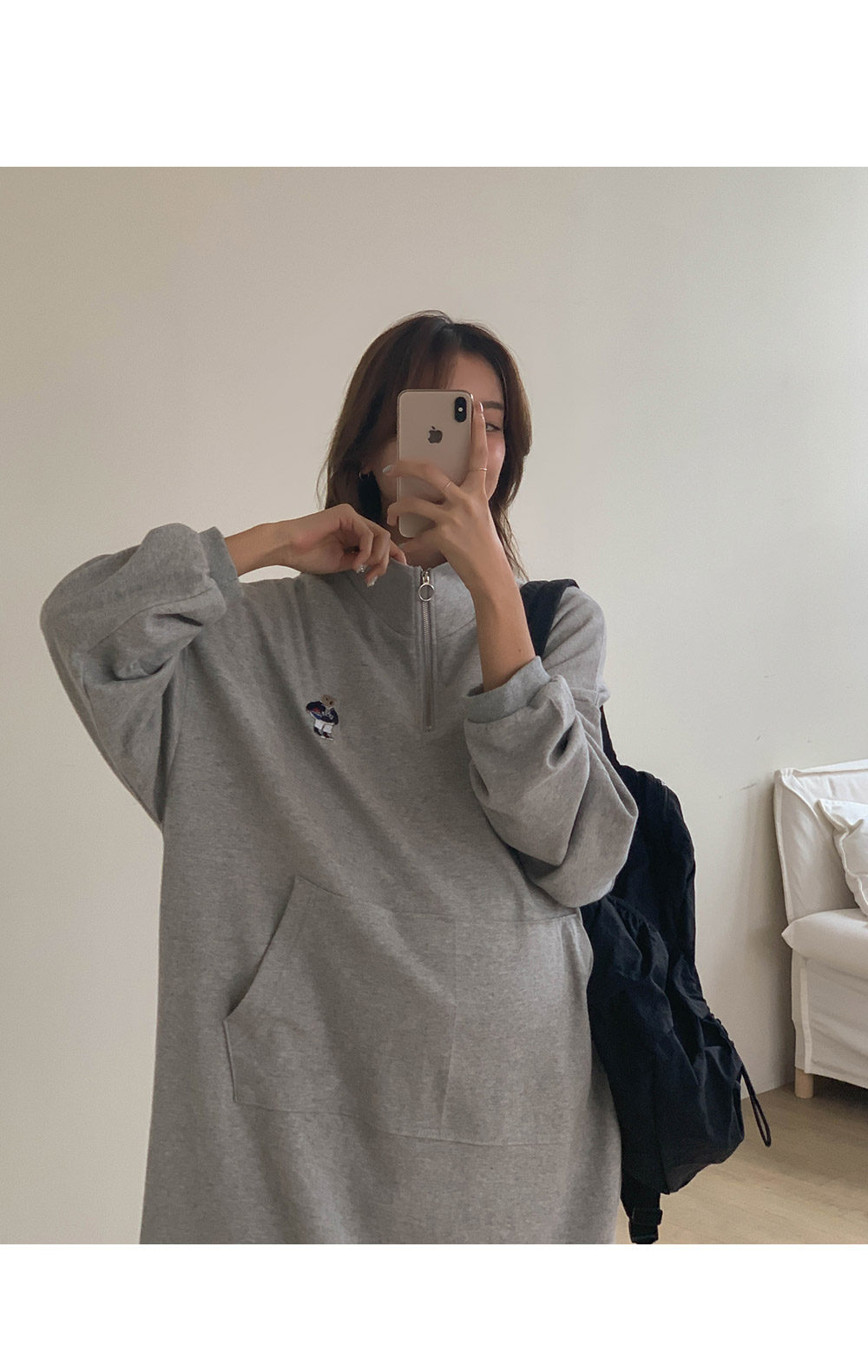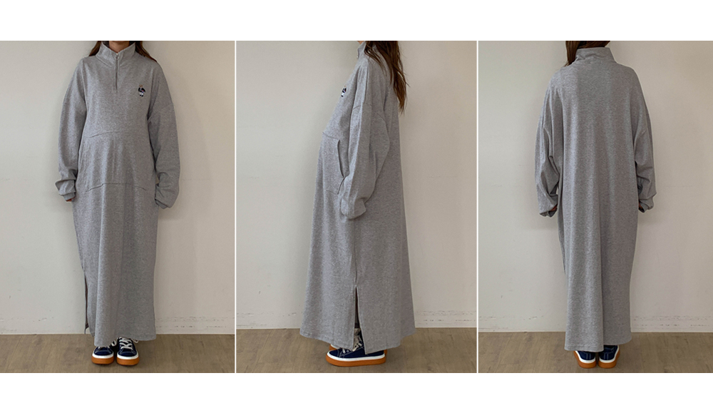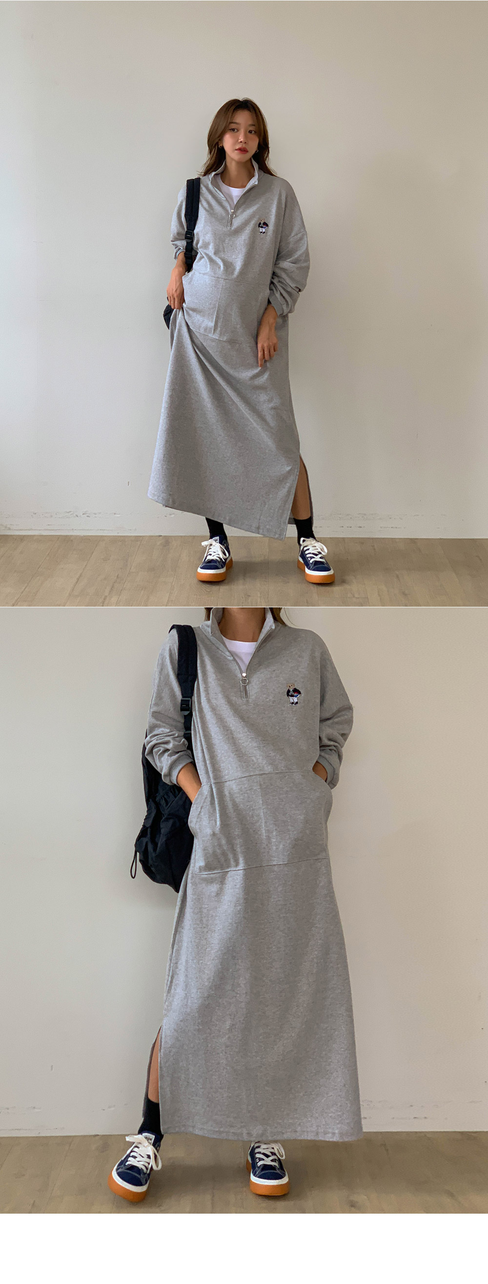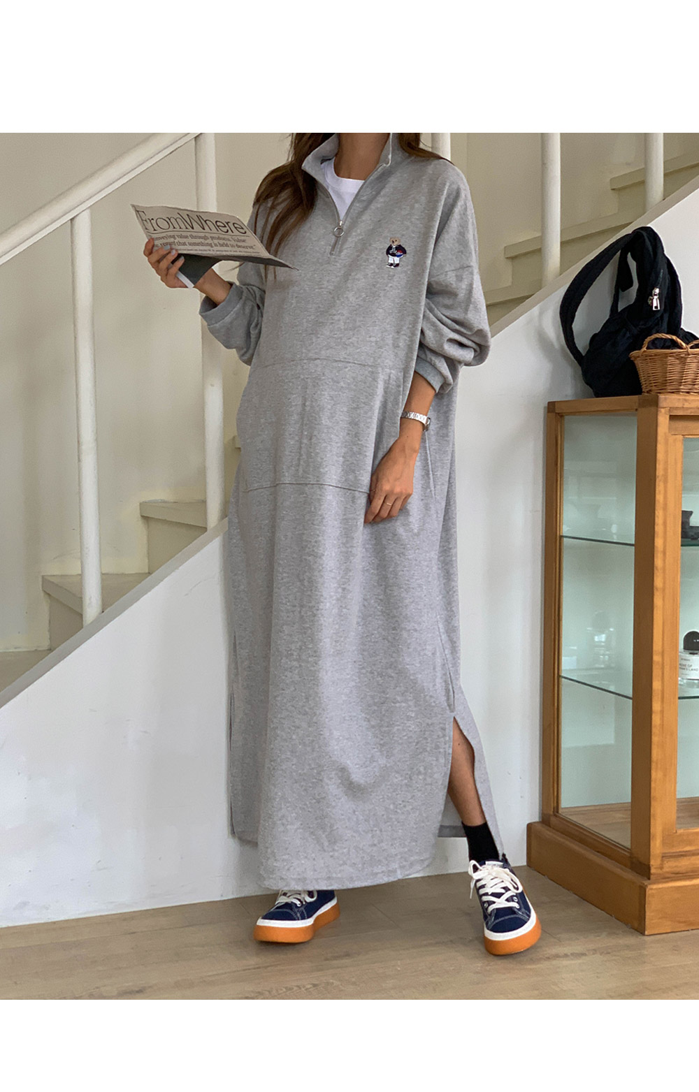 Maternity*Teddy Embroidery Collar Zip-up One Piece)