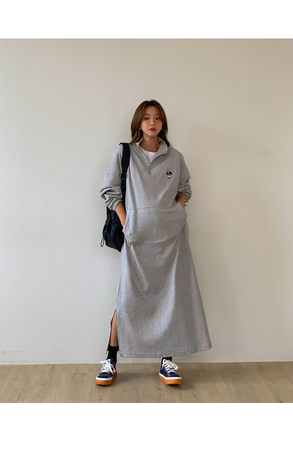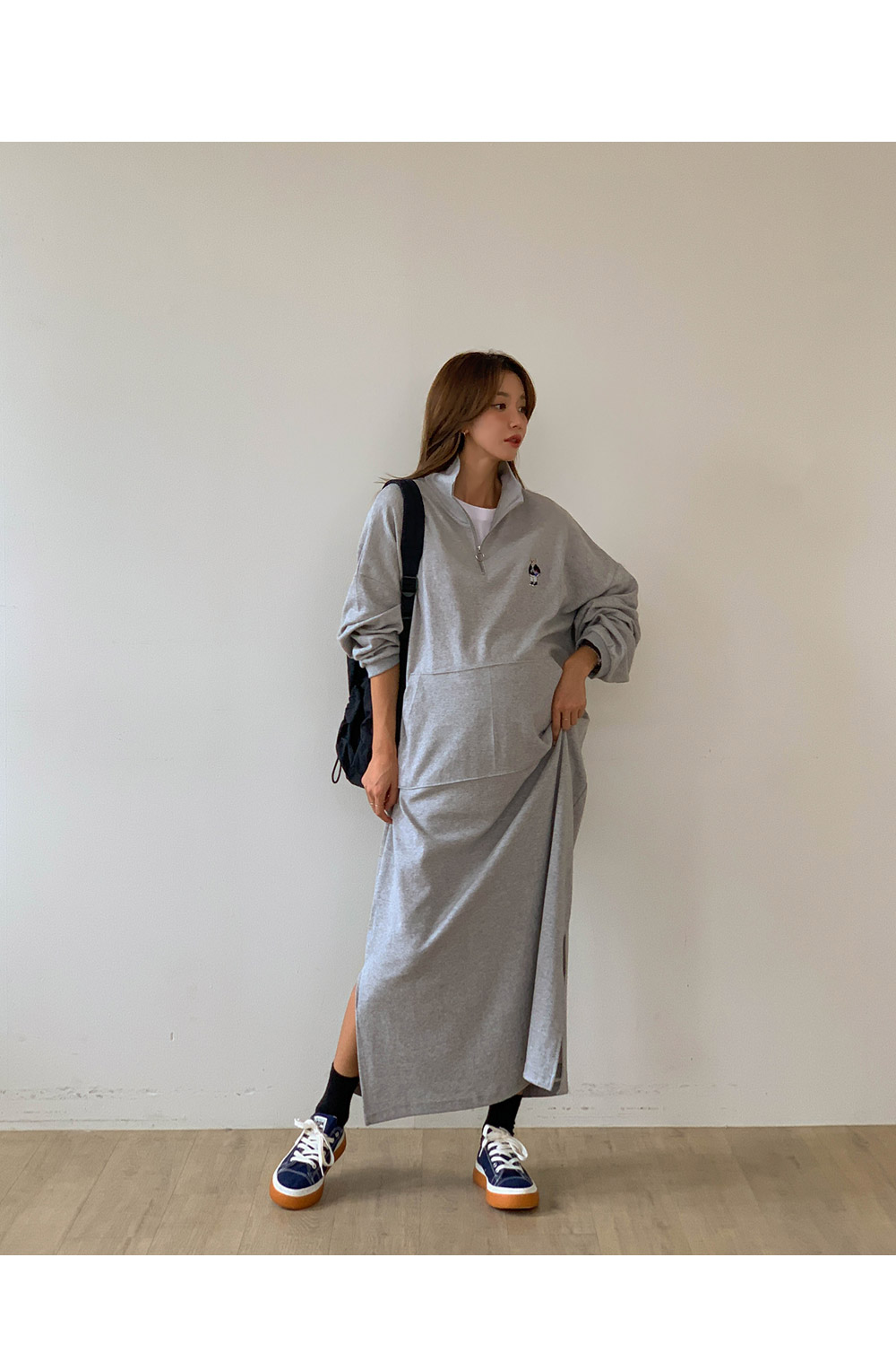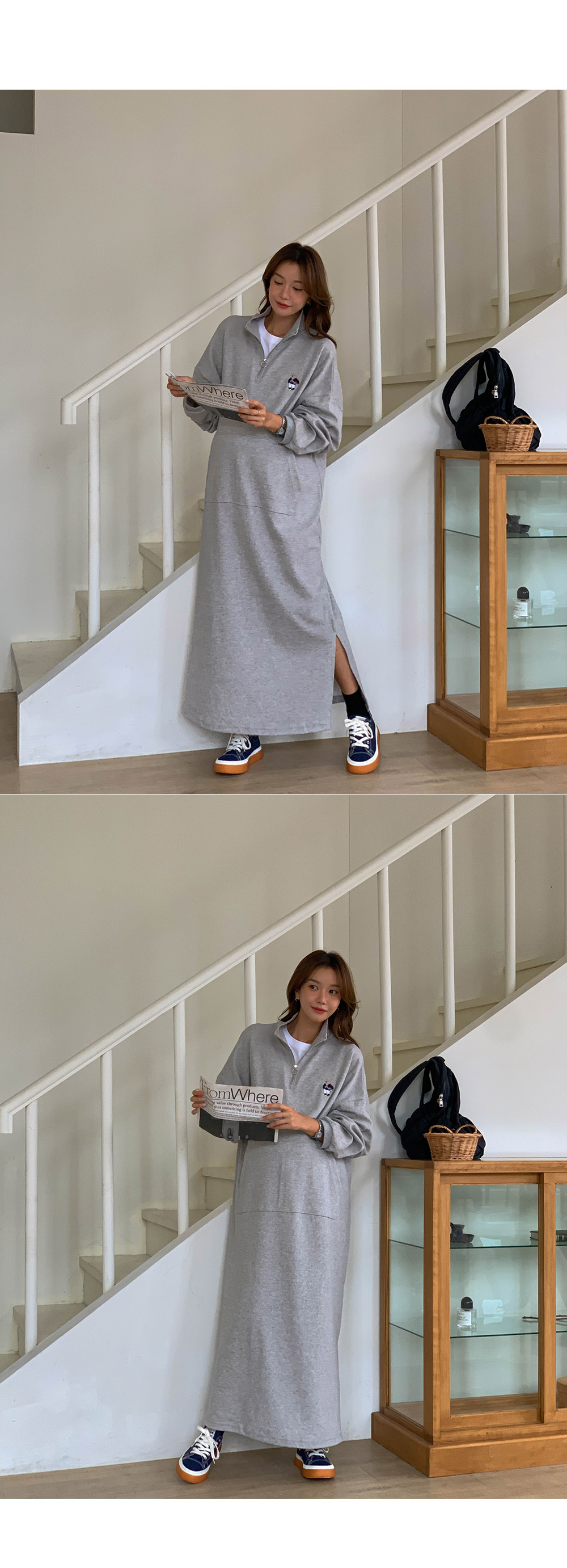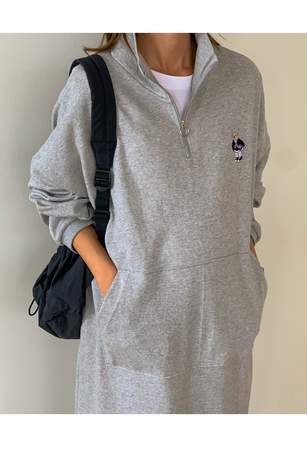 Maternity*Teddy Embroidery Collar Zip-up One Piece)