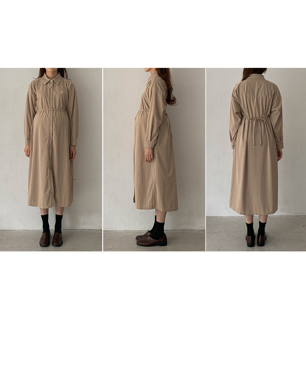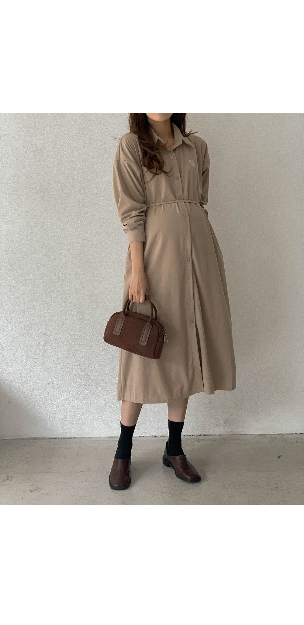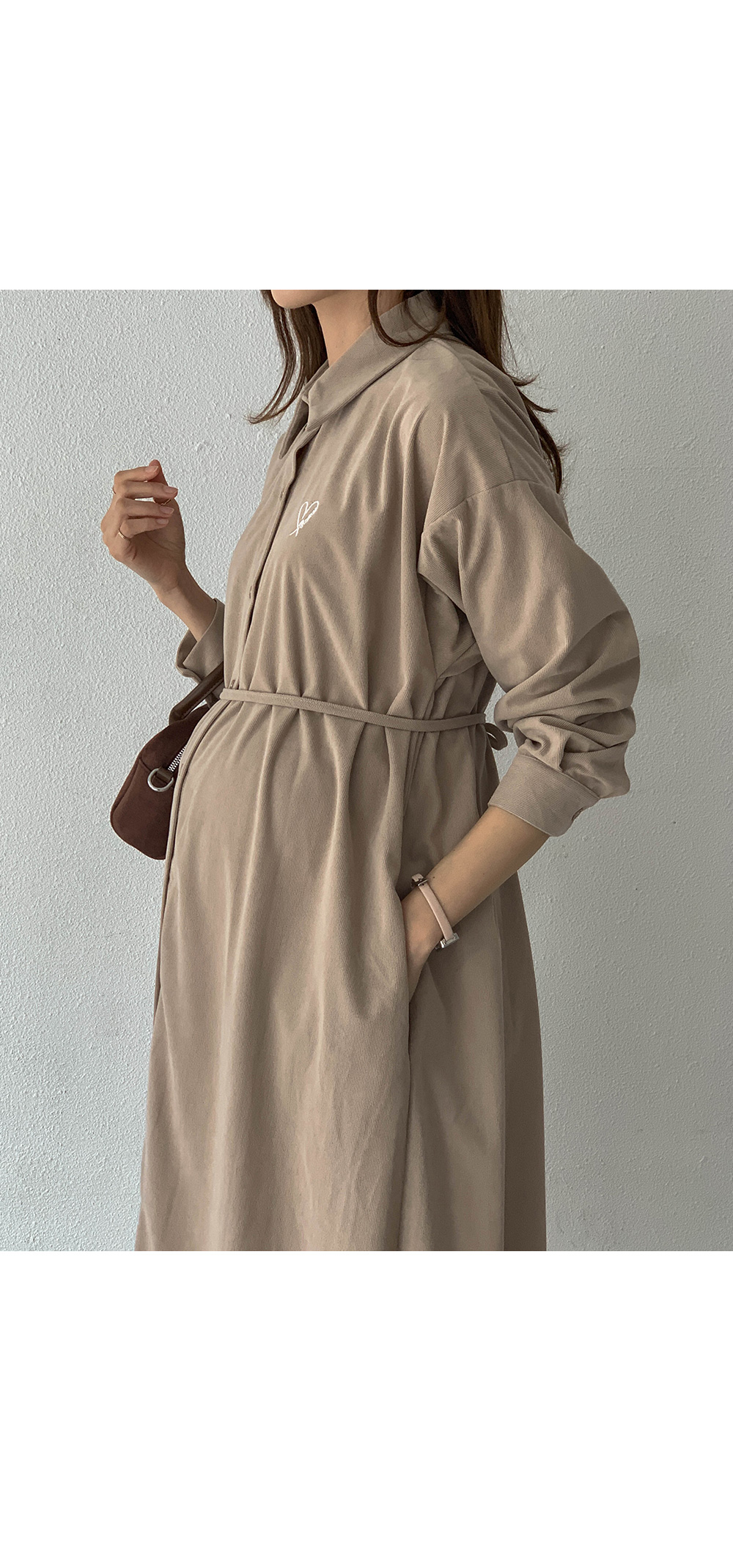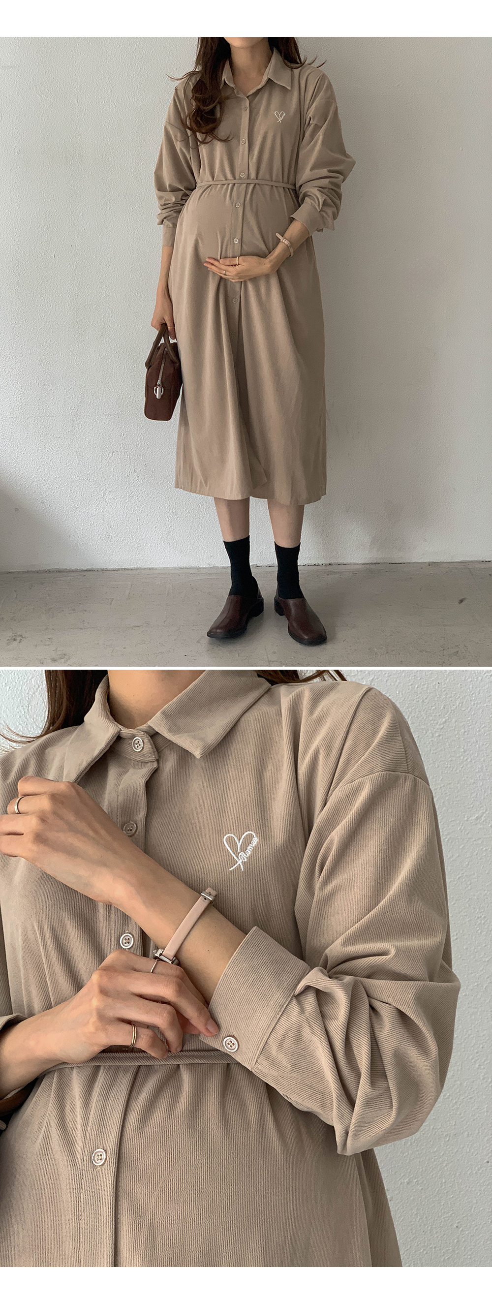 Maternity*Heart-embroidered corduroy shirt dress)