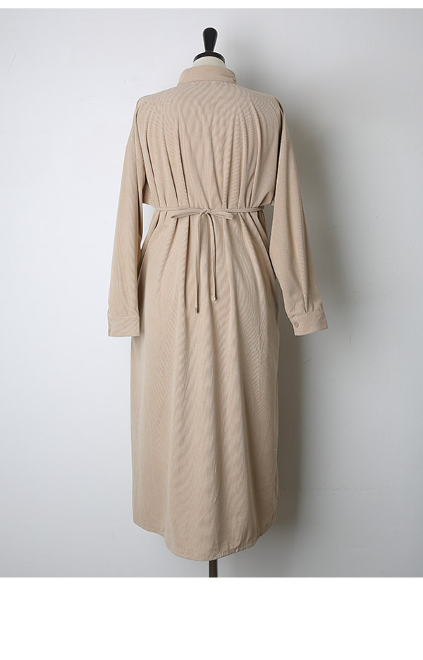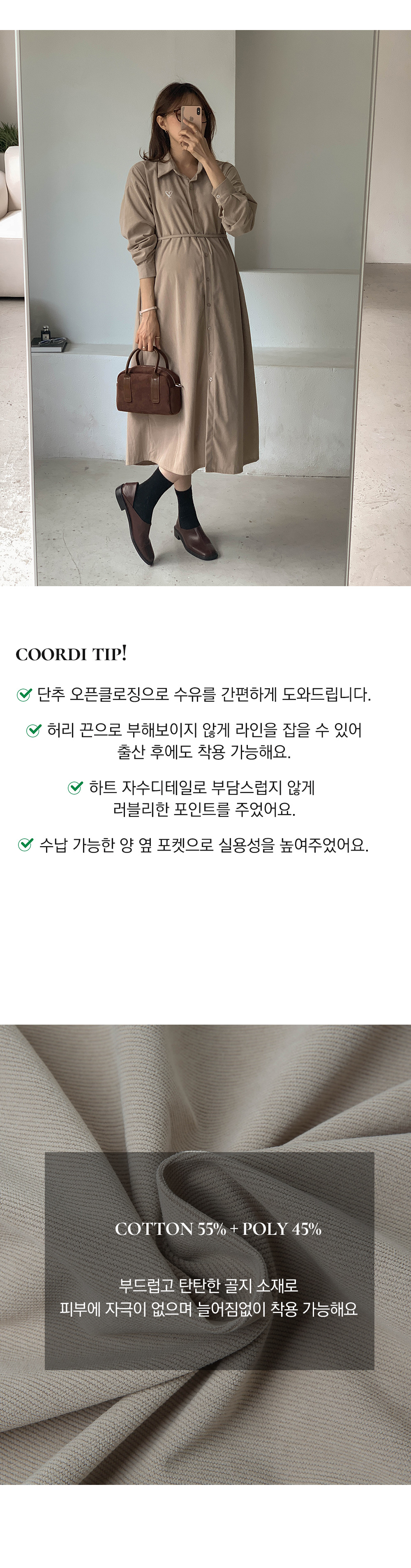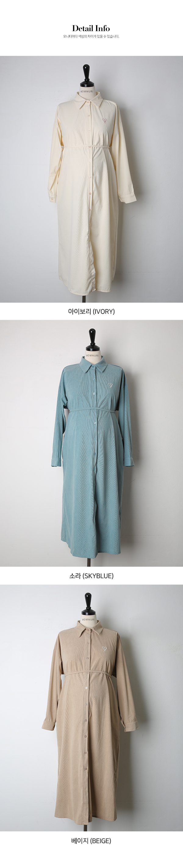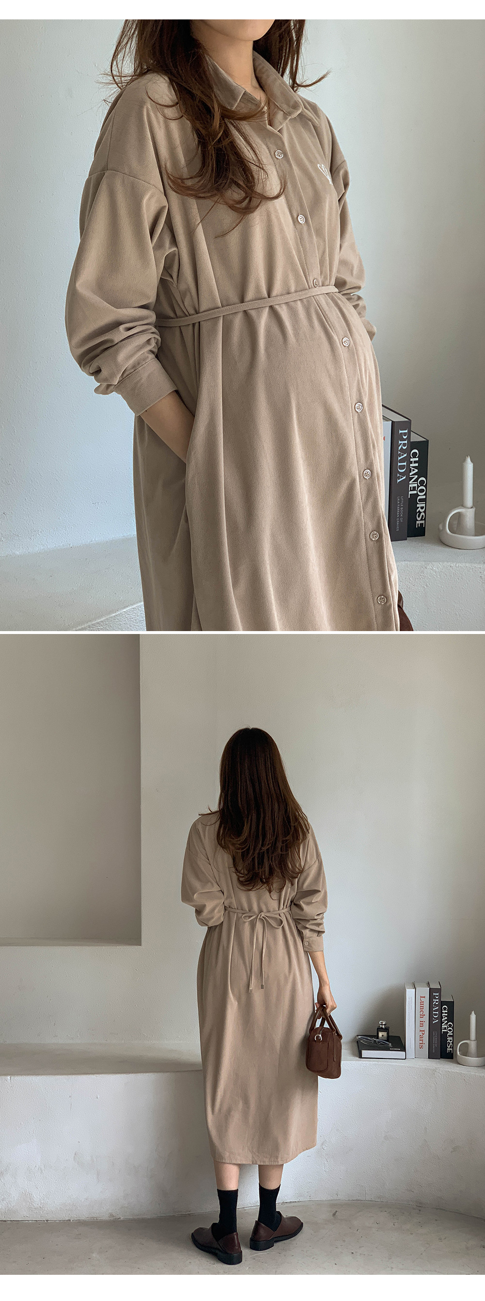 Maternity*Heart-embroidered corduroy shirt dress)