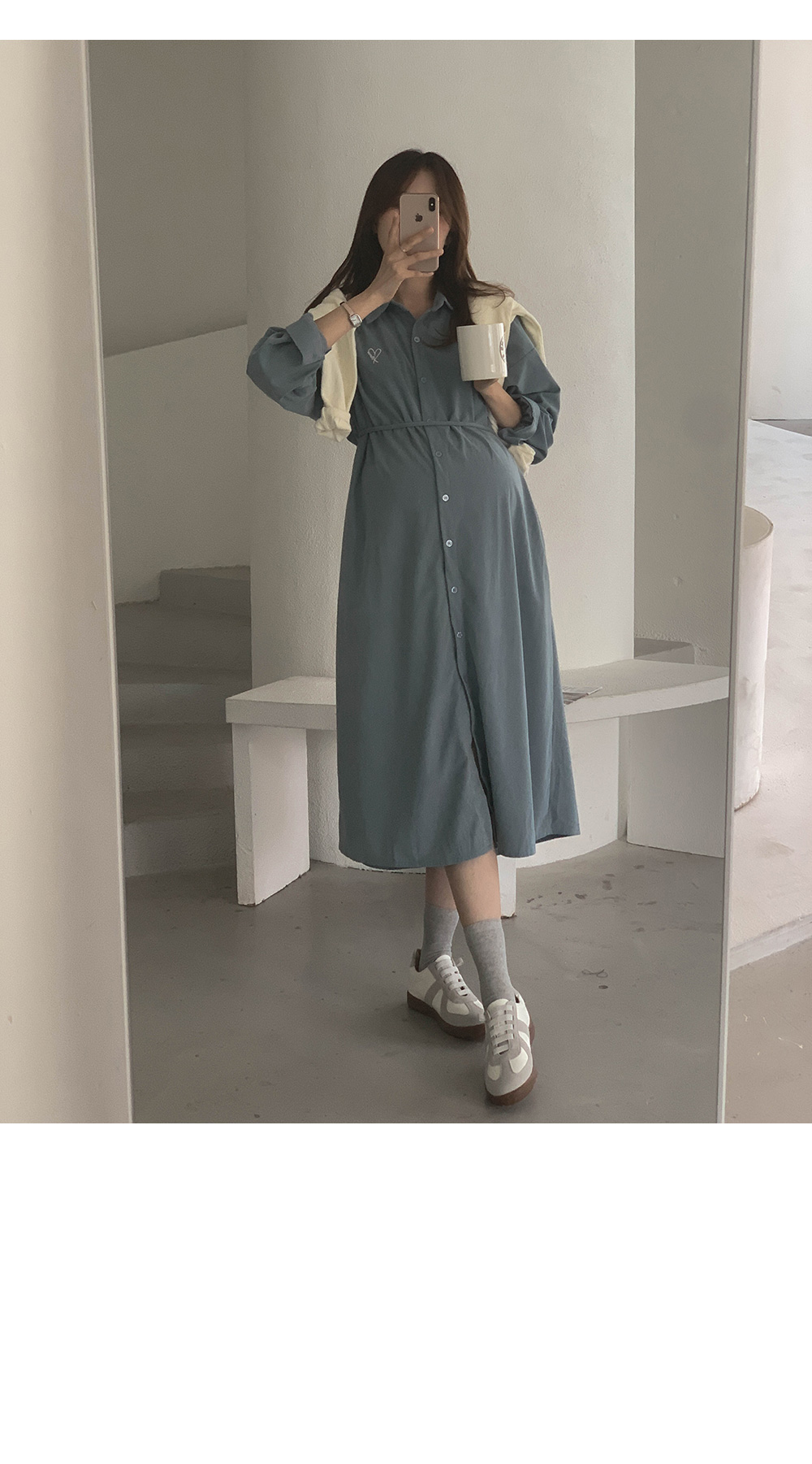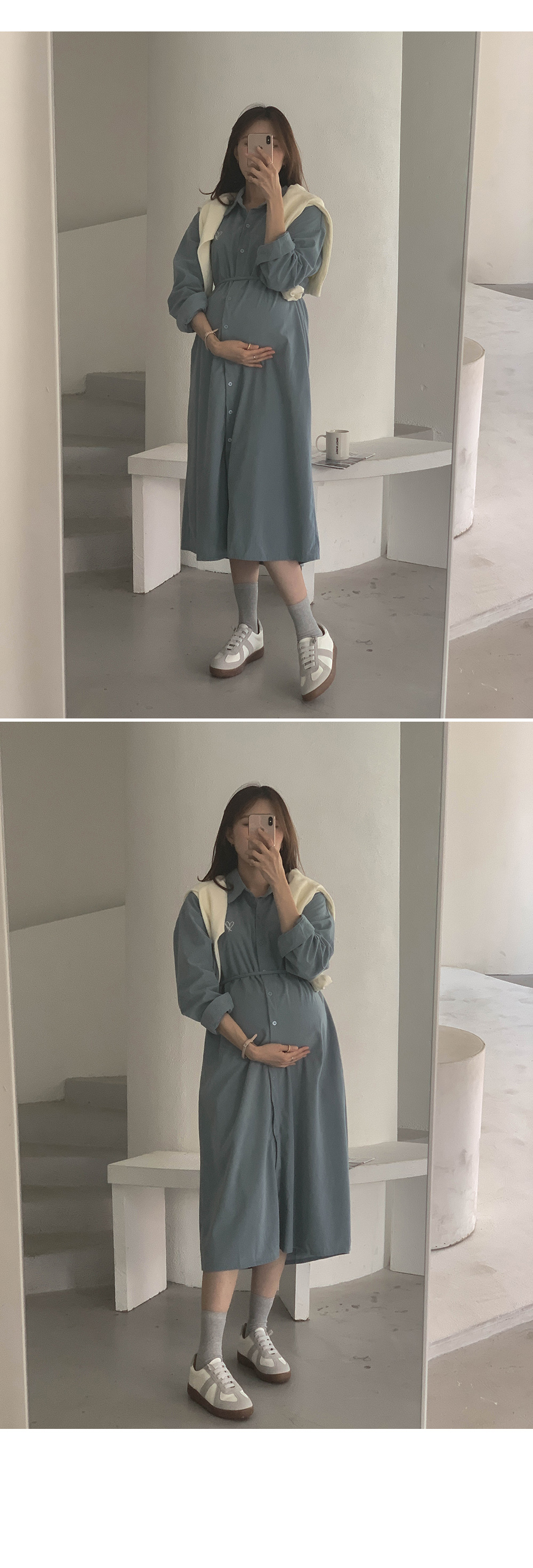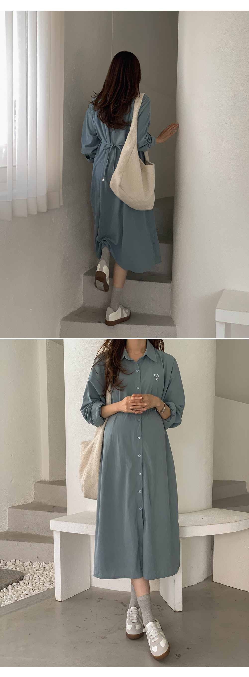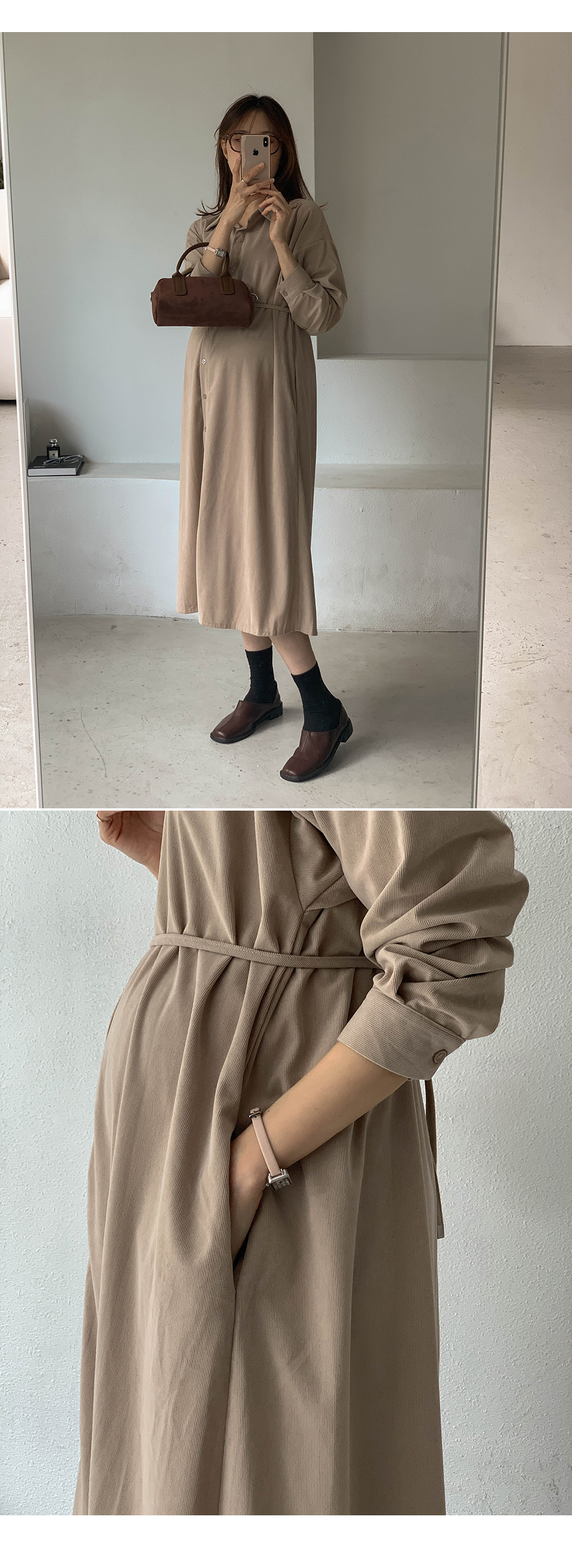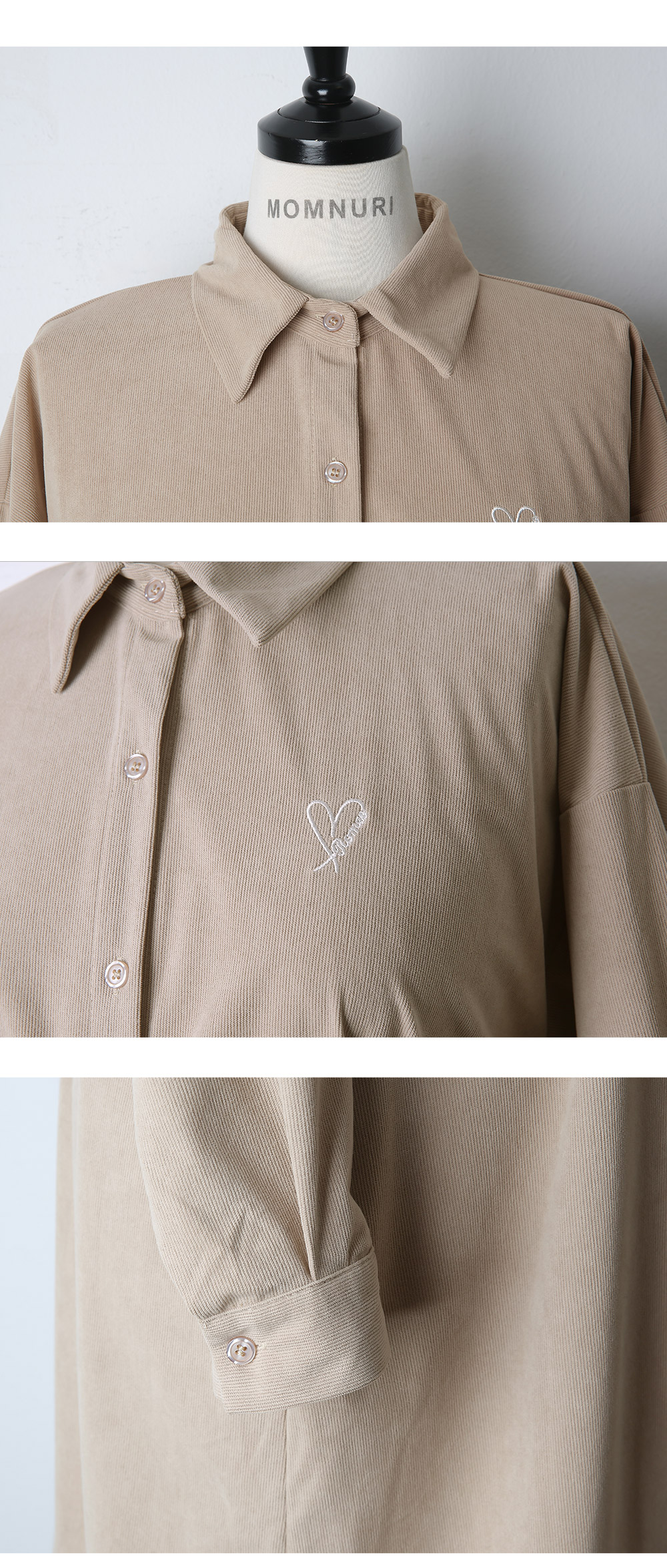 Maternity*Heart-embroidered corduroy shirt dress)
