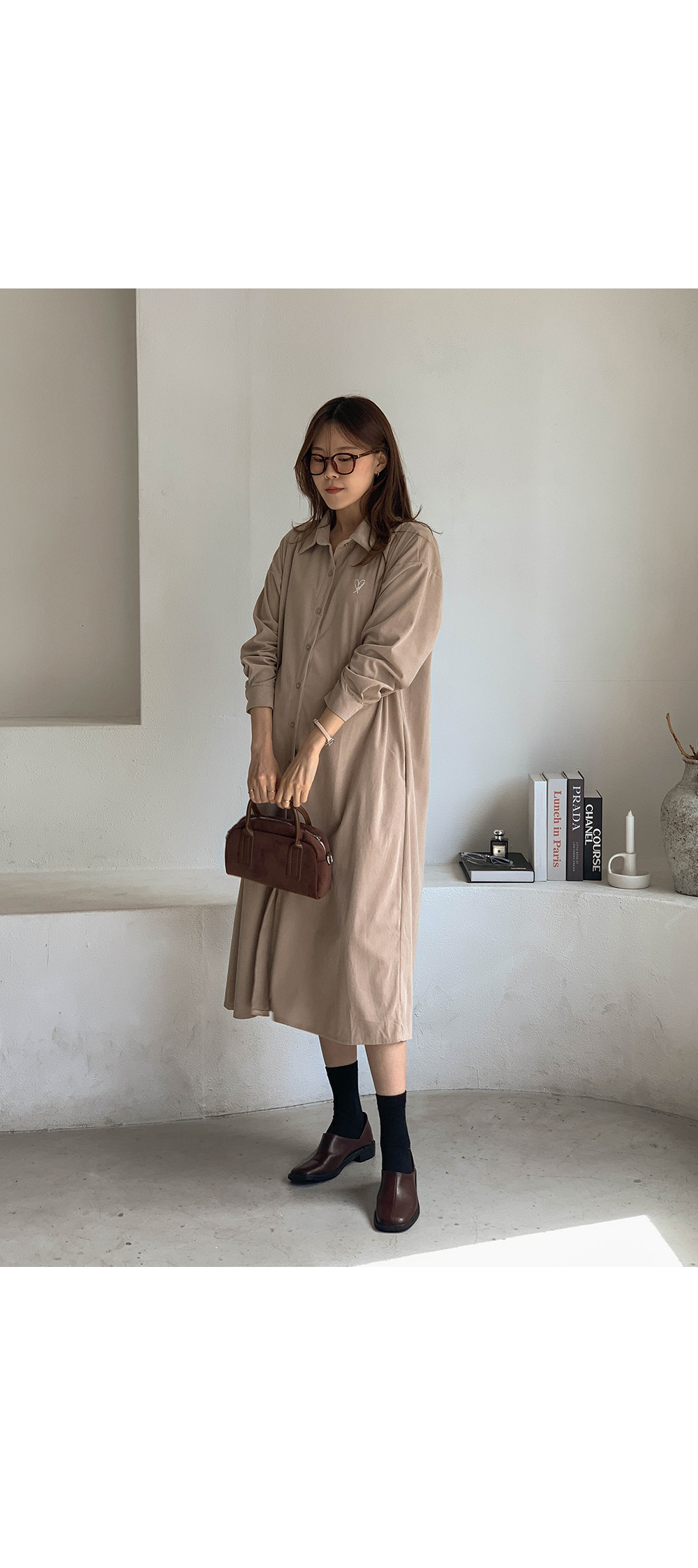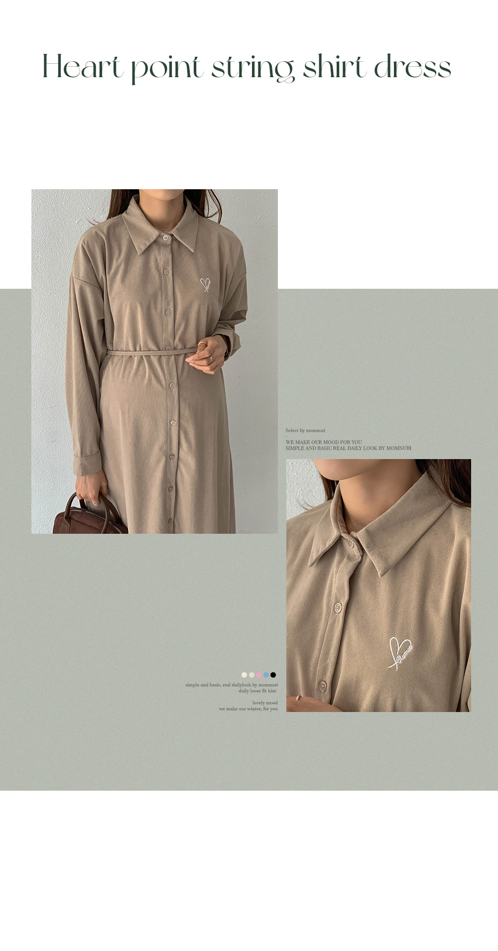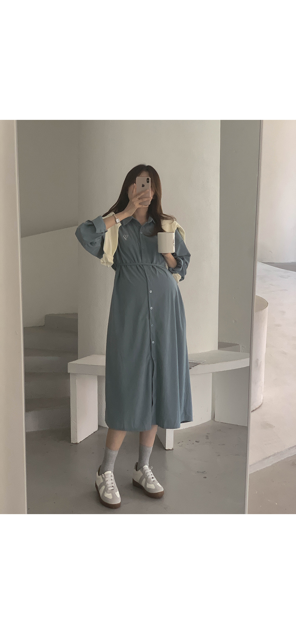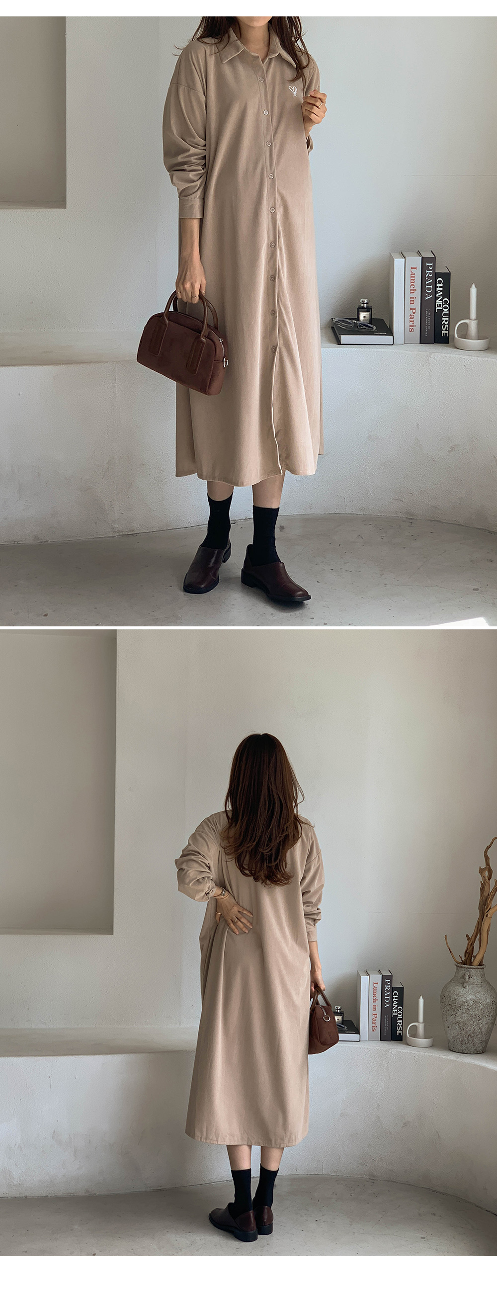 Maternity*Heart-embroidered corduroy shirt dress)