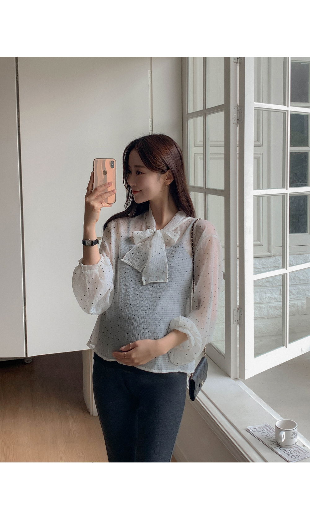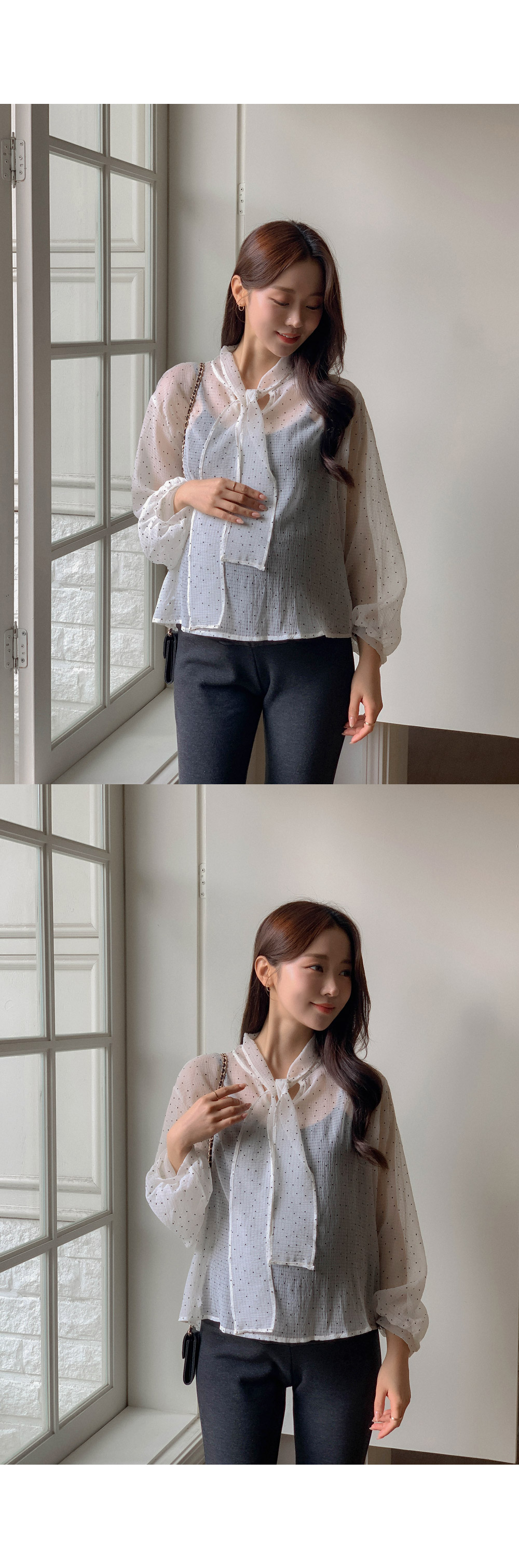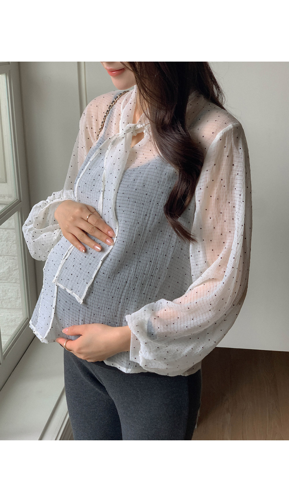 Maternity*Dot Tie Blouse)