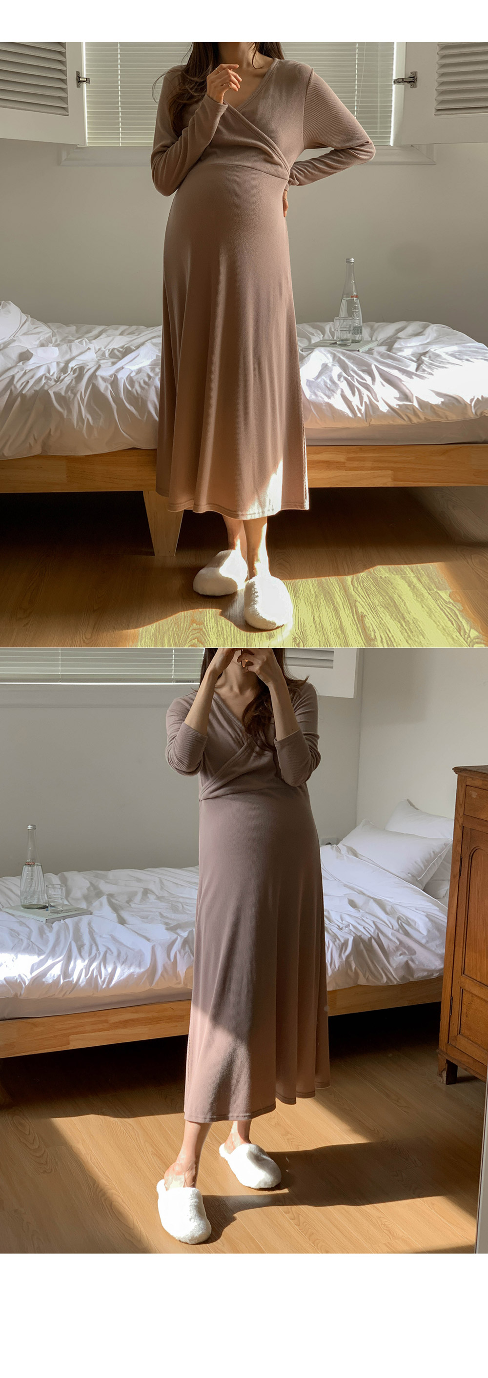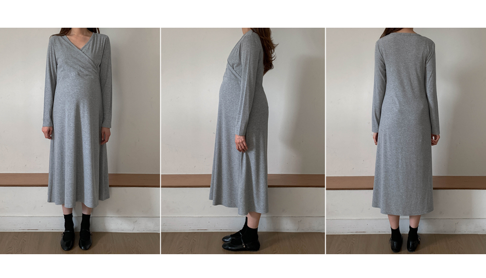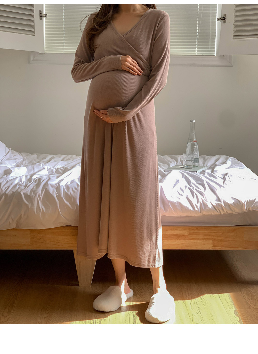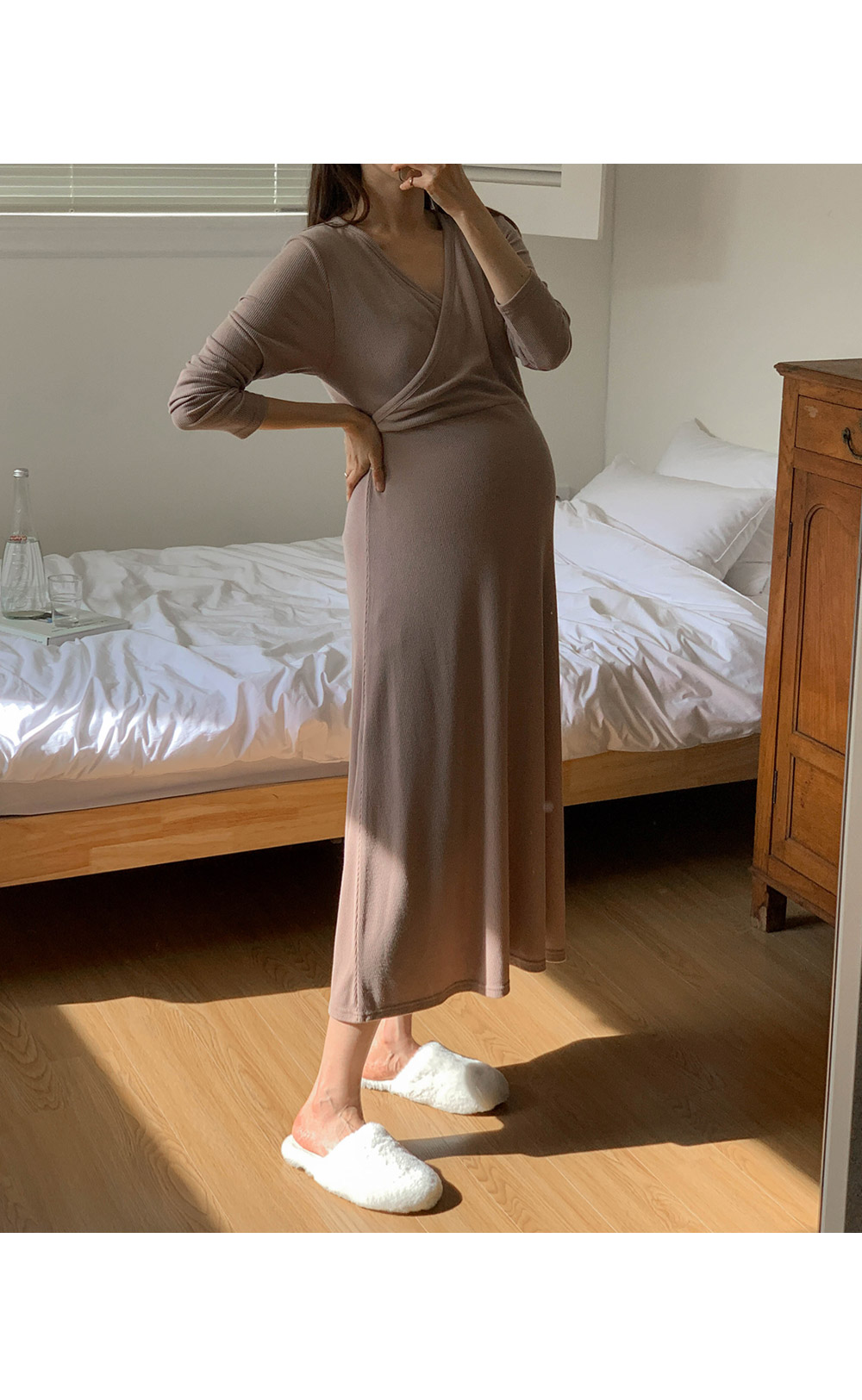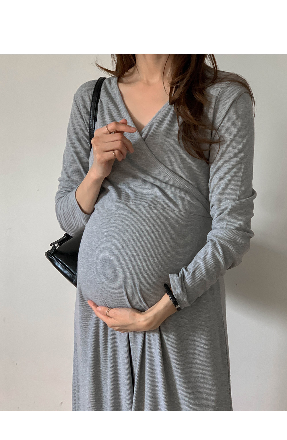 [10% discount for production opening] [LabelsD] Soft ribbed wrap nursing dress with built-in cap*Maternity) |