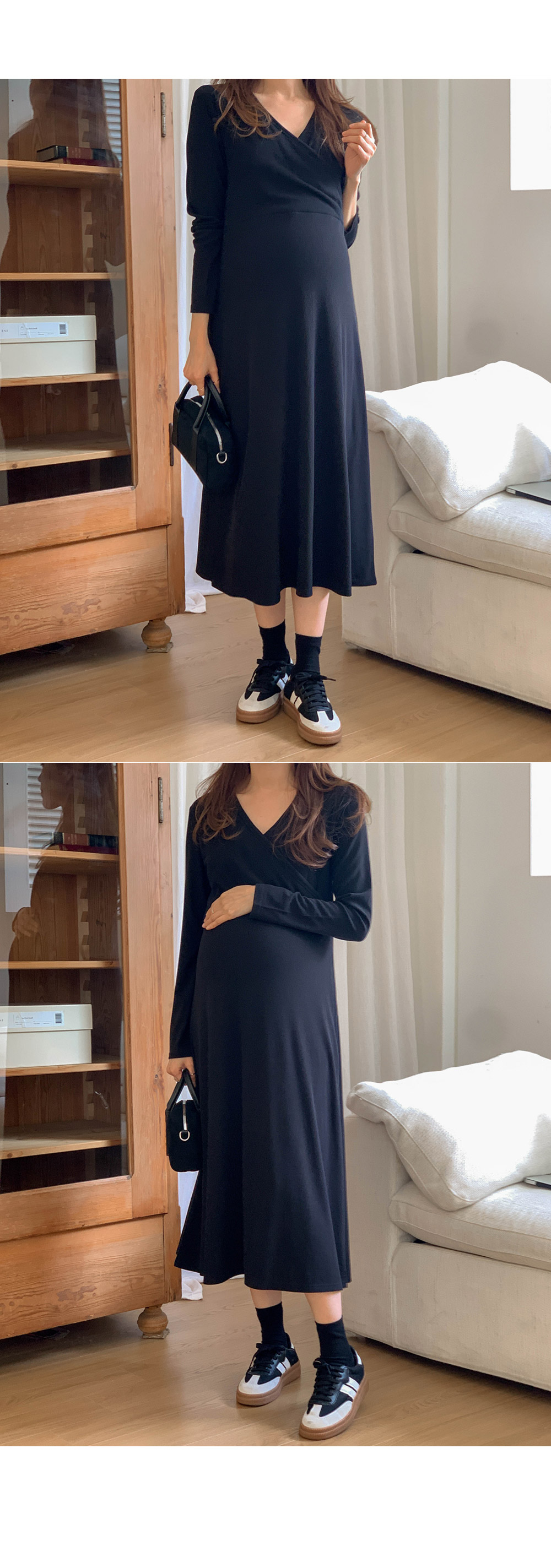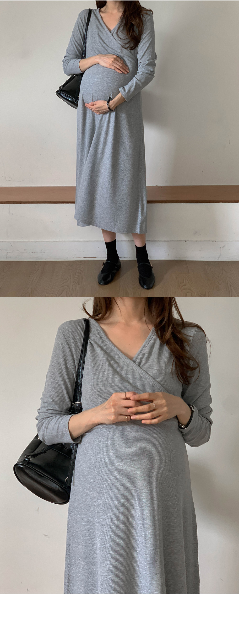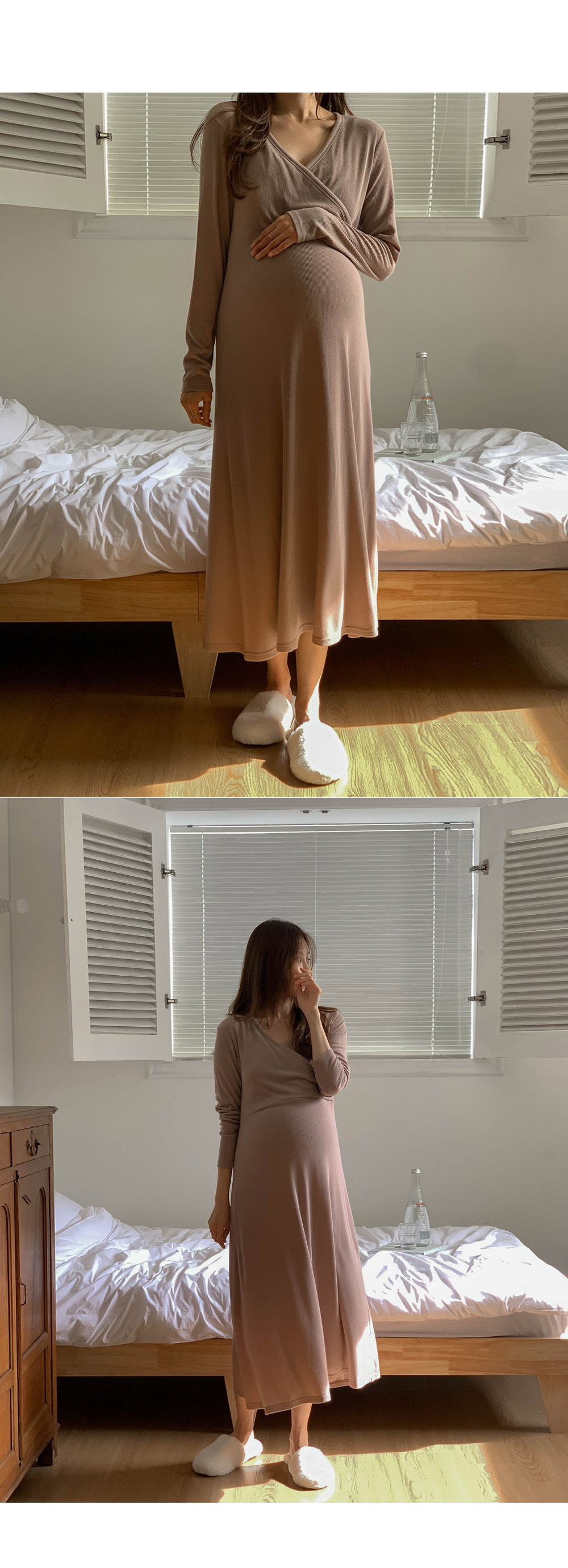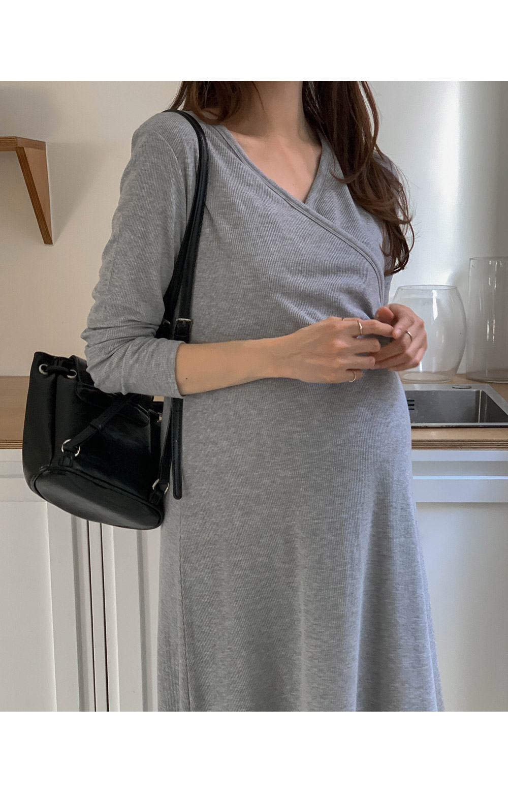 [10% discount for production opening] [LabelsD] Soft ribbed wrap nursing dress with built-in cap*Maternity) |