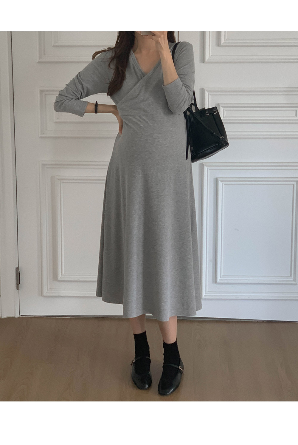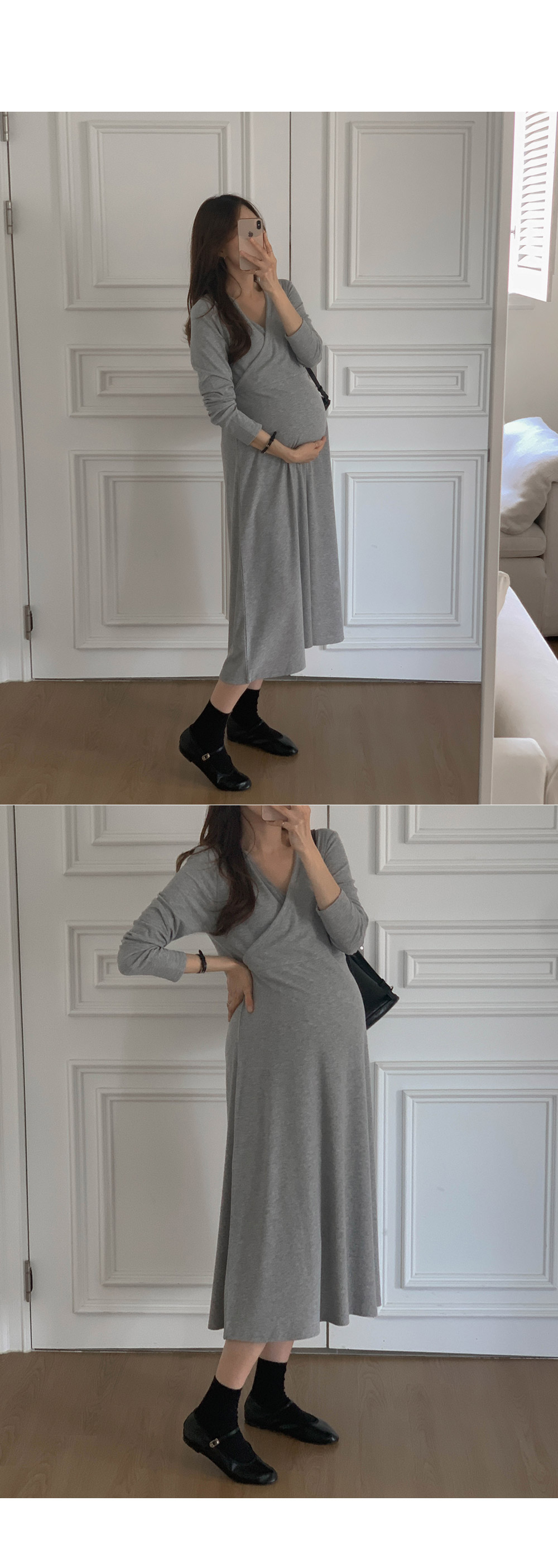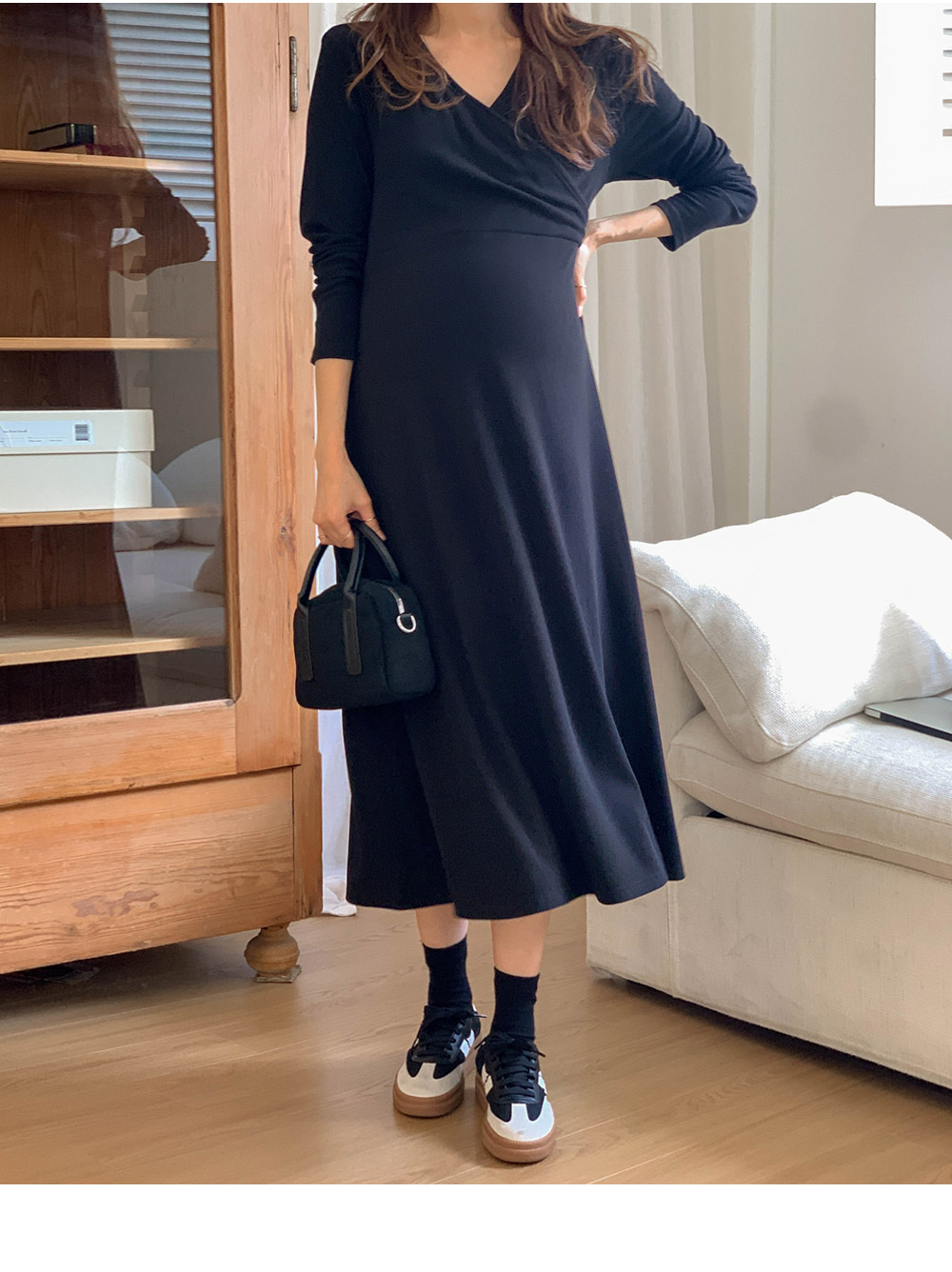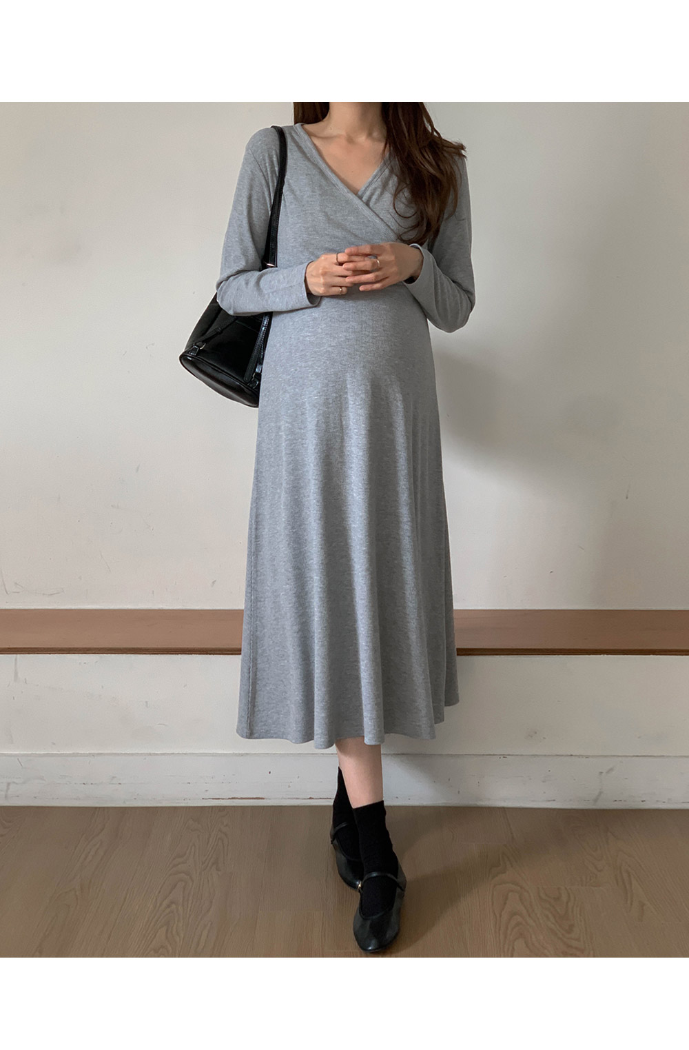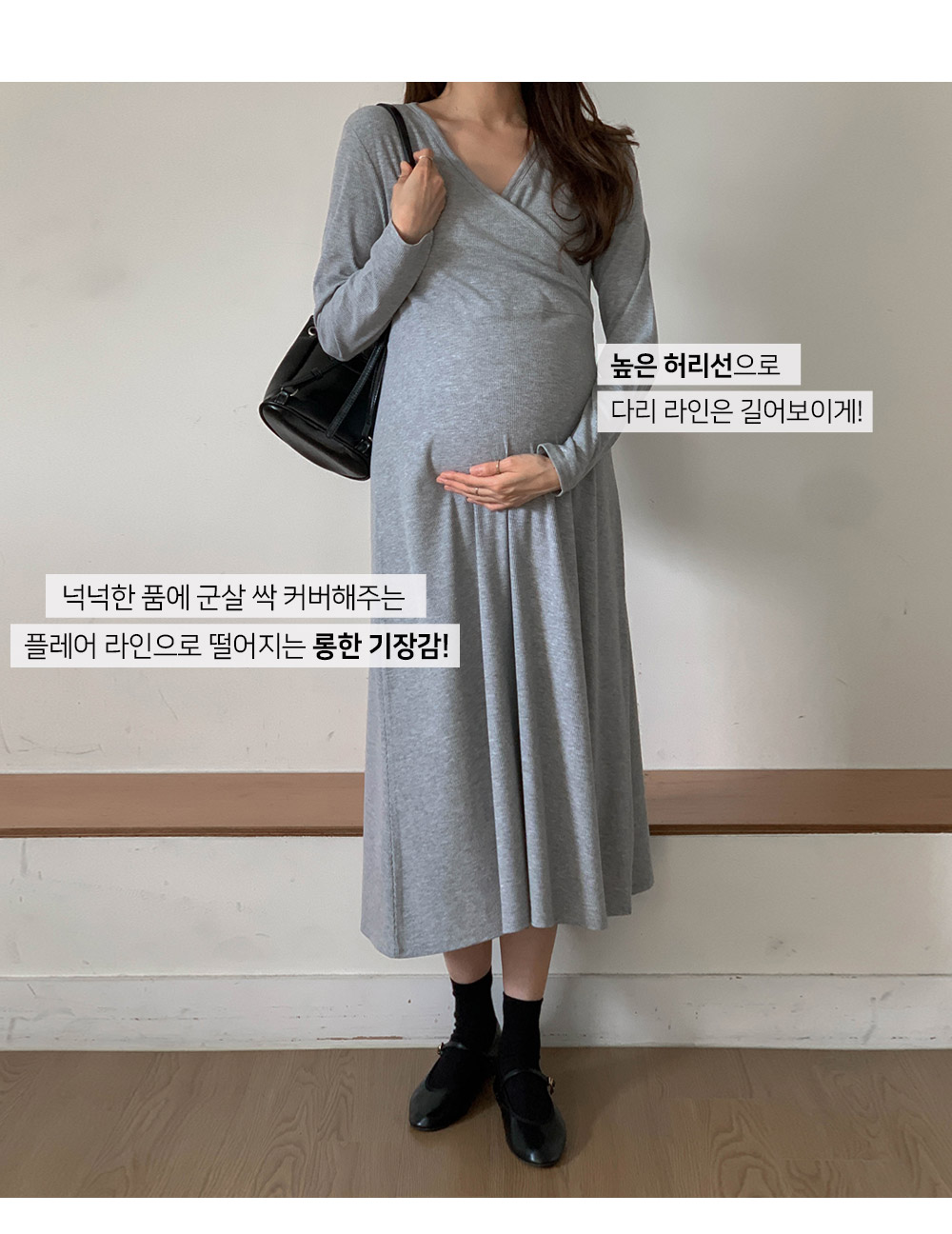 [10% discount for production opening] [LabelsD] Soft ribbed wrap nursing dress with built-in cap*Maternity) |