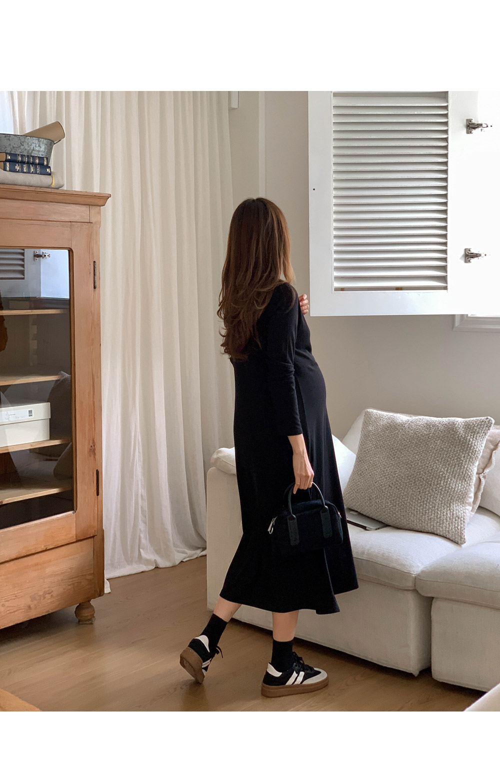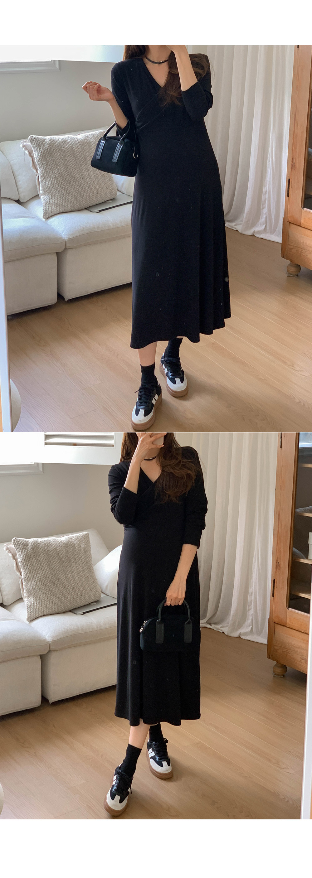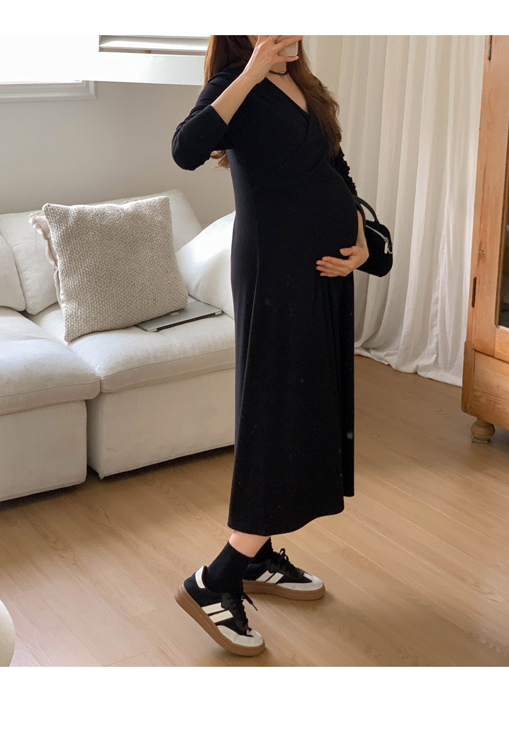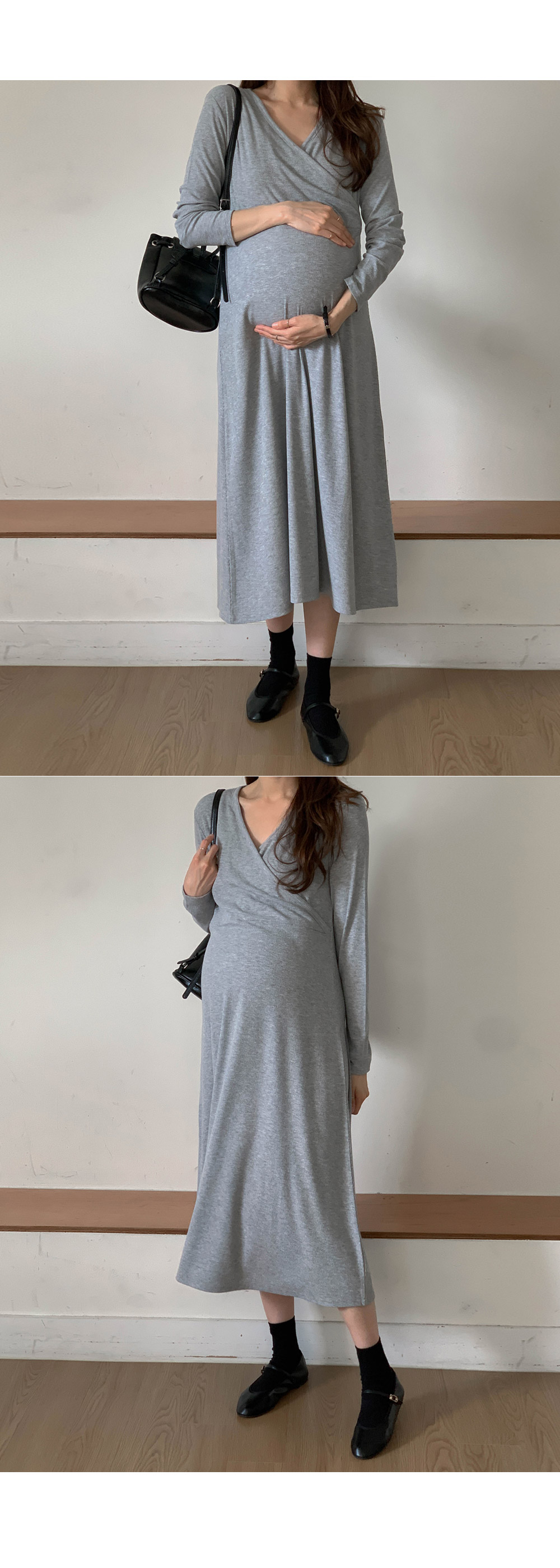 [10% discount for production opening] [LabelsD] Soft ribbed wrap nursing dress with built-in cap*Maternity) |