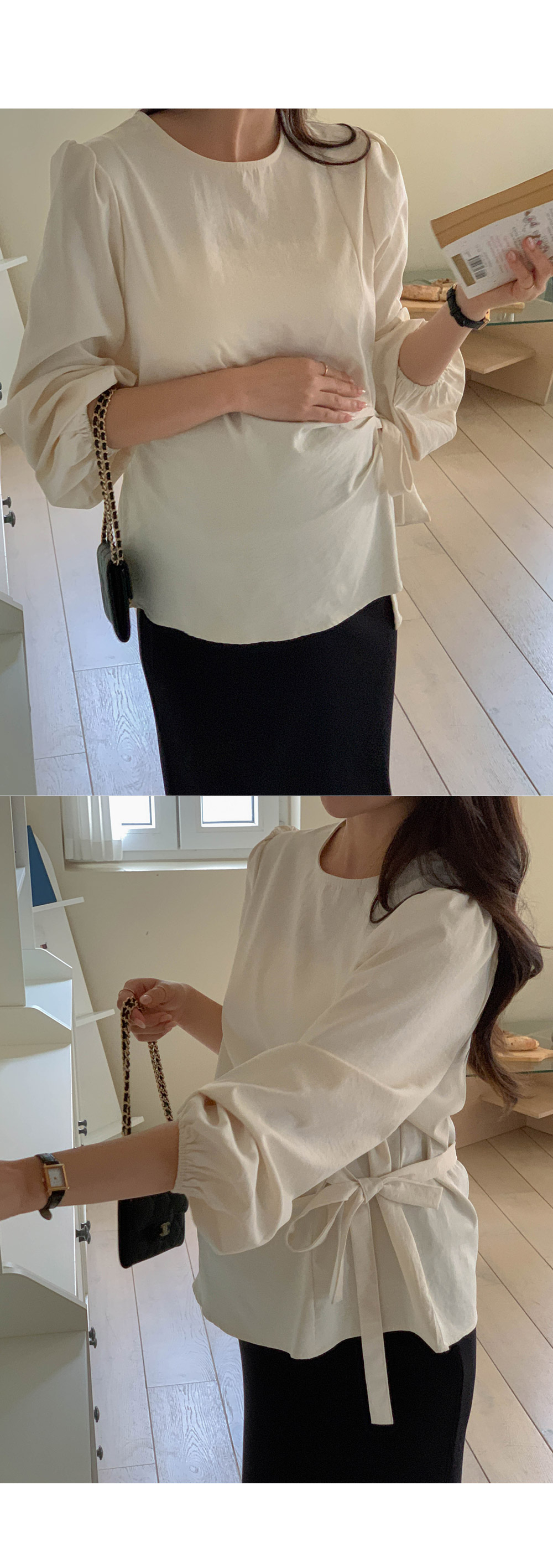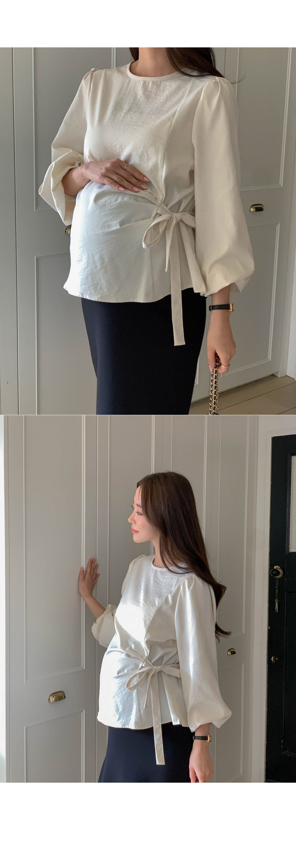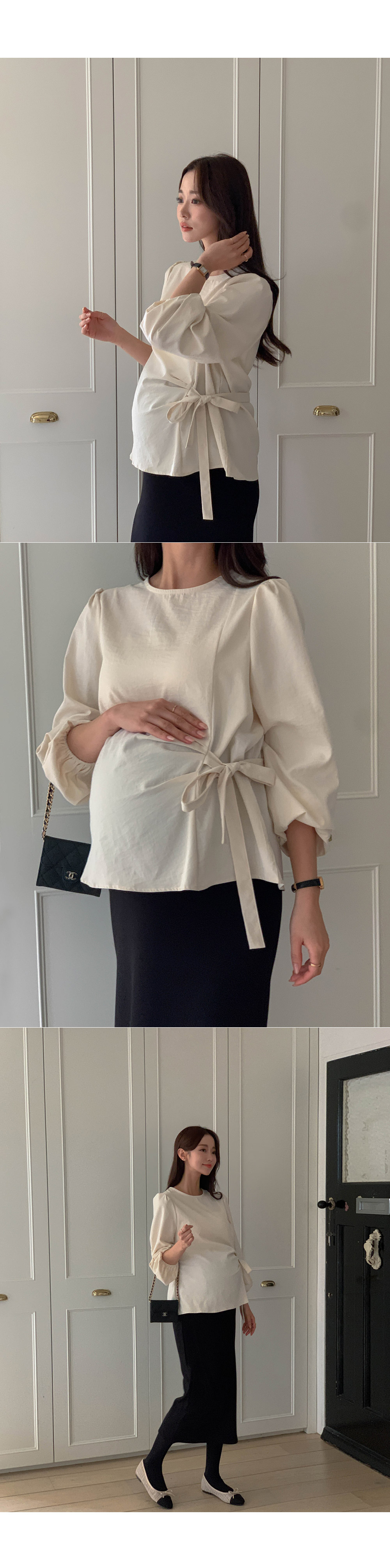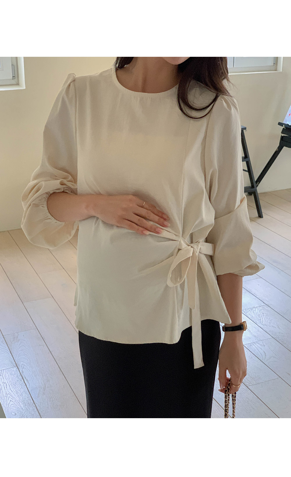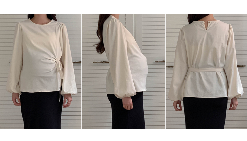 Maternity*Side shirring ribbon blouse)