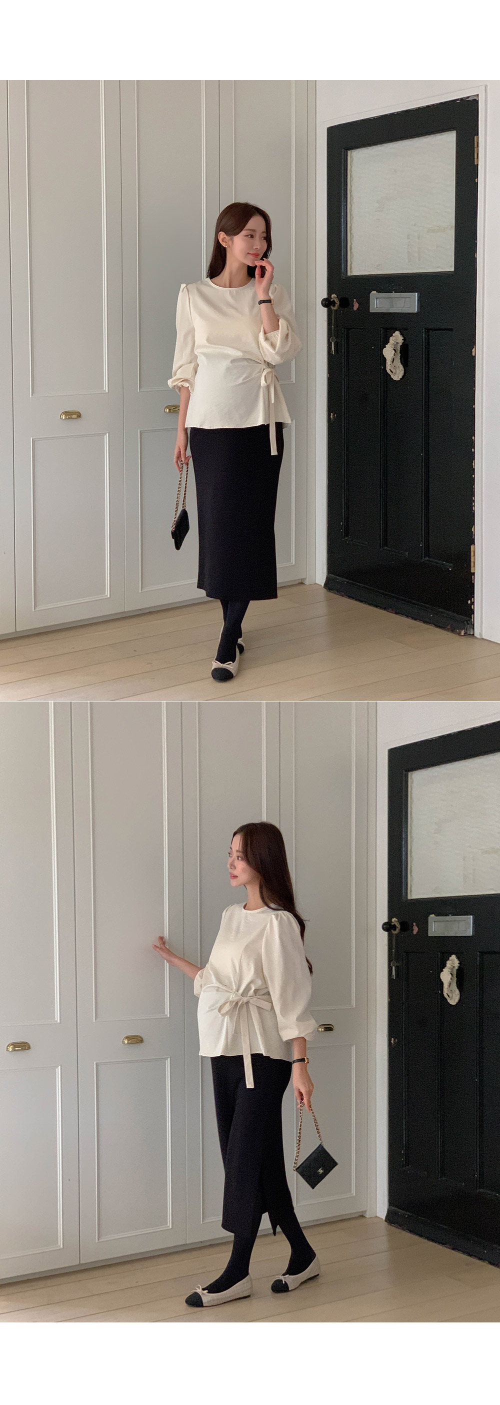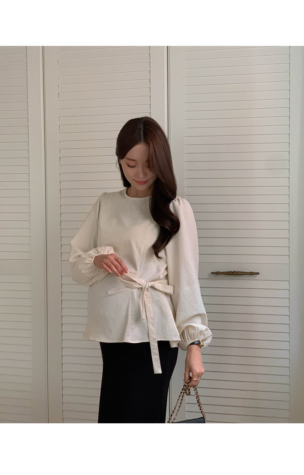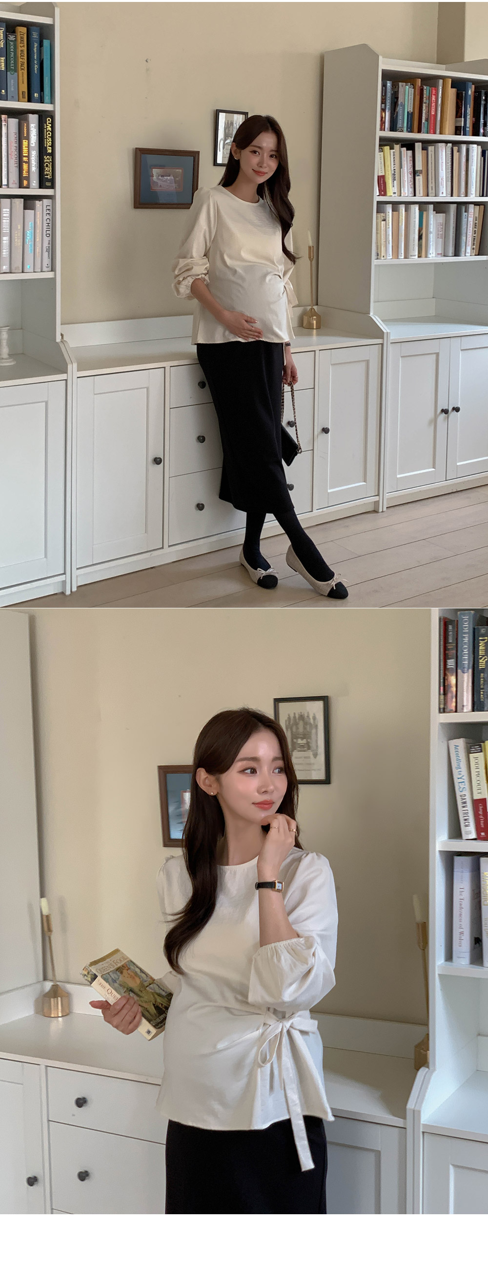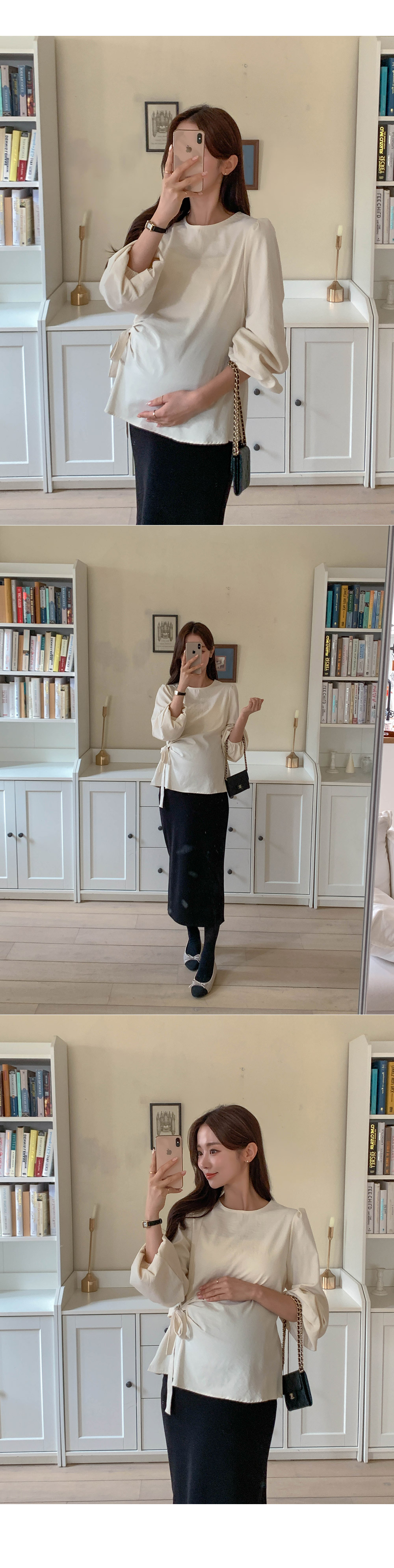 Maternity*Side shirring ribbon blouse)