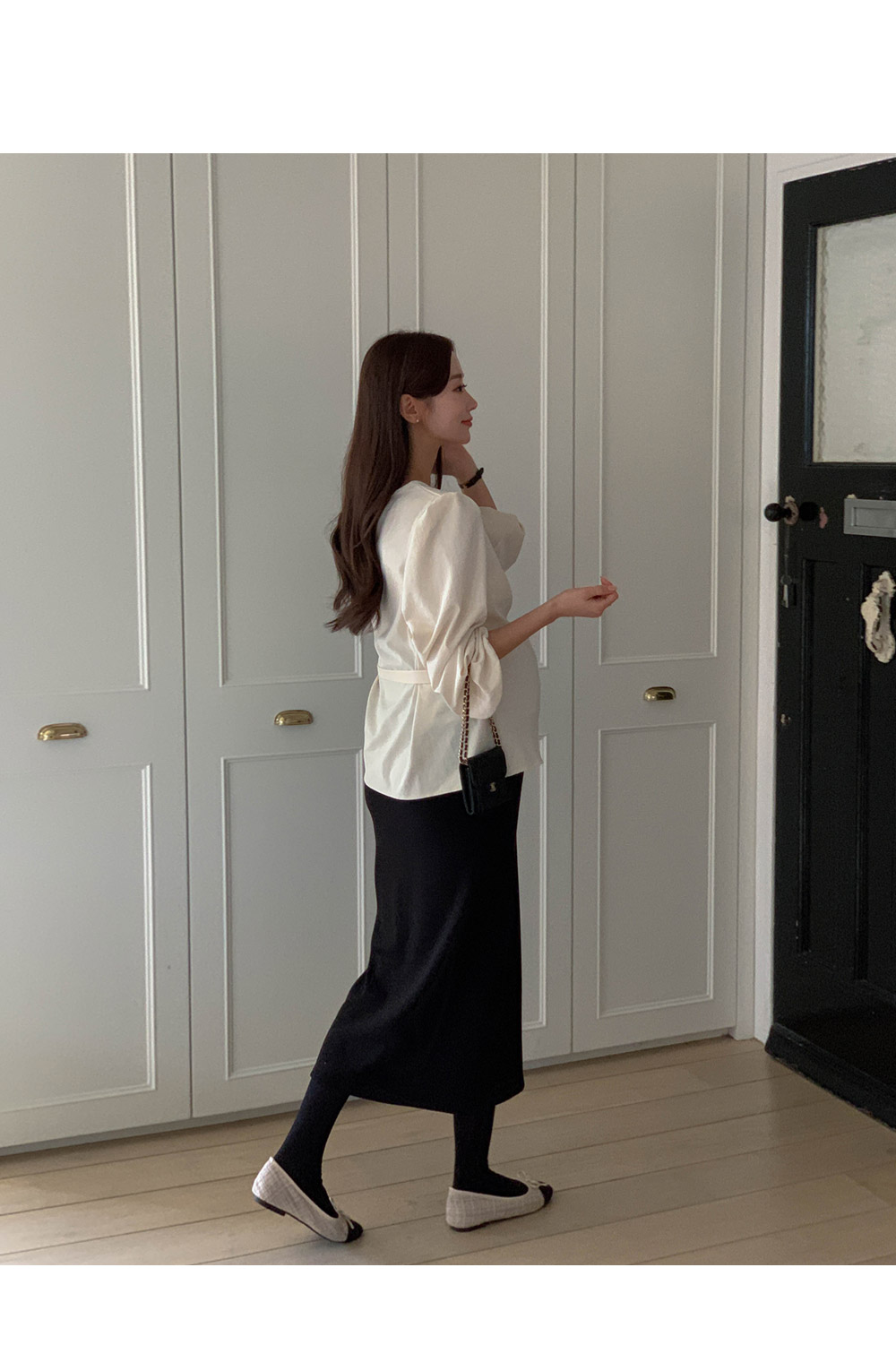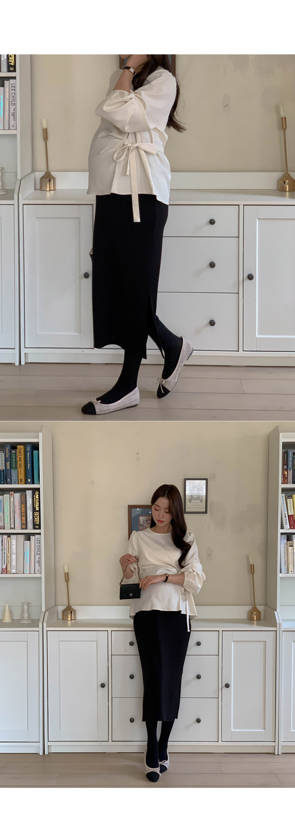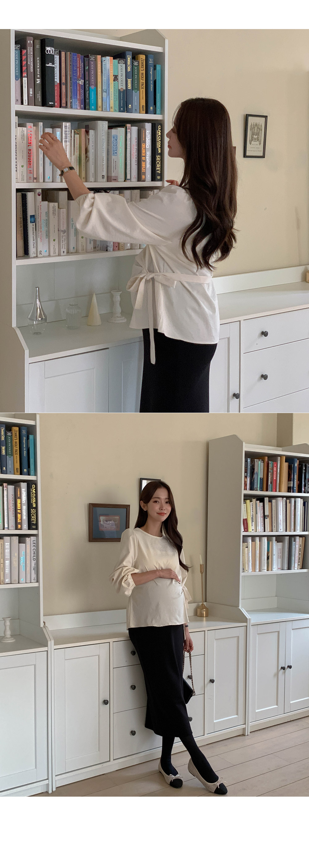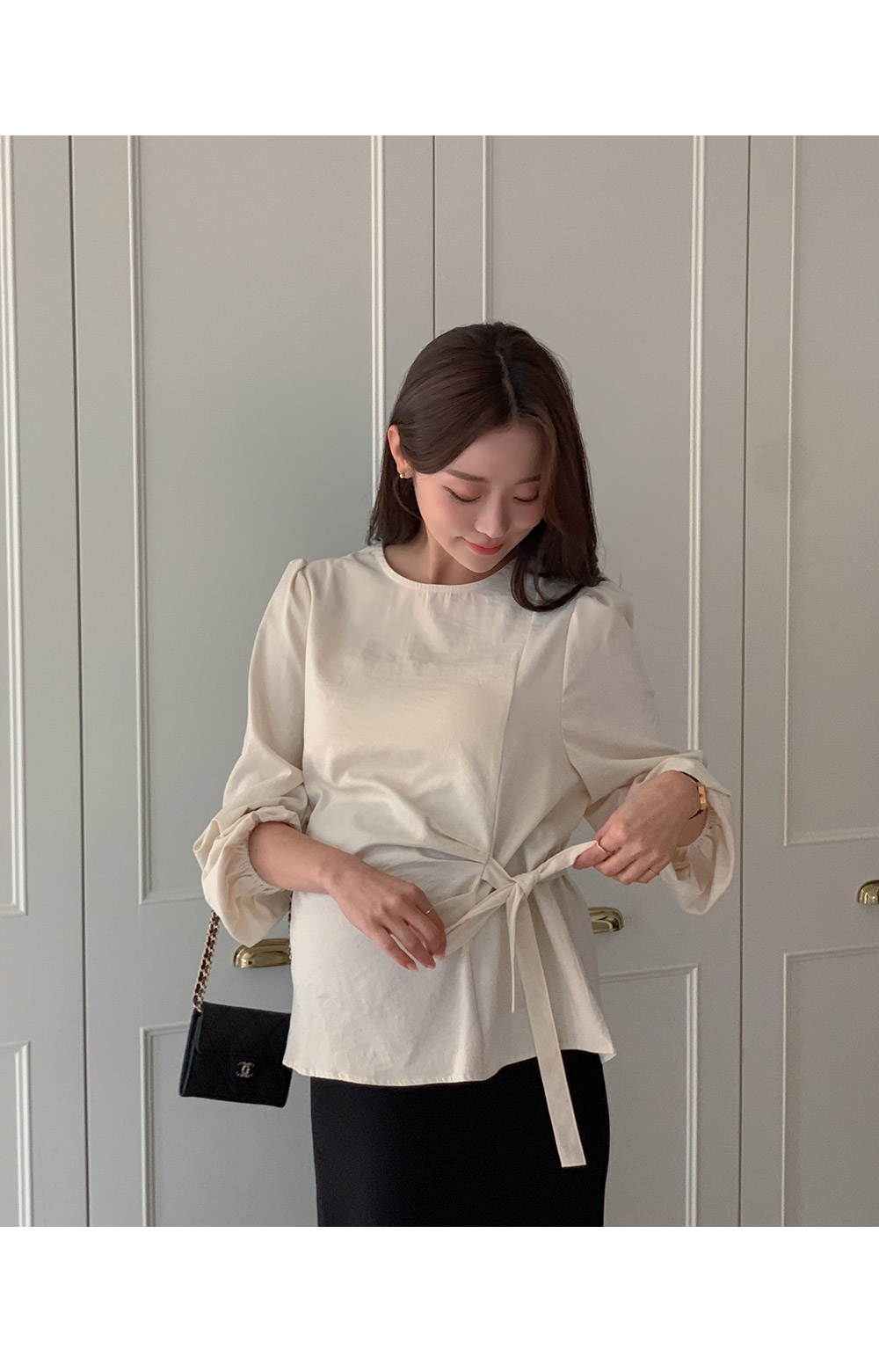 Maternity*Side shirring ribbon blouse)