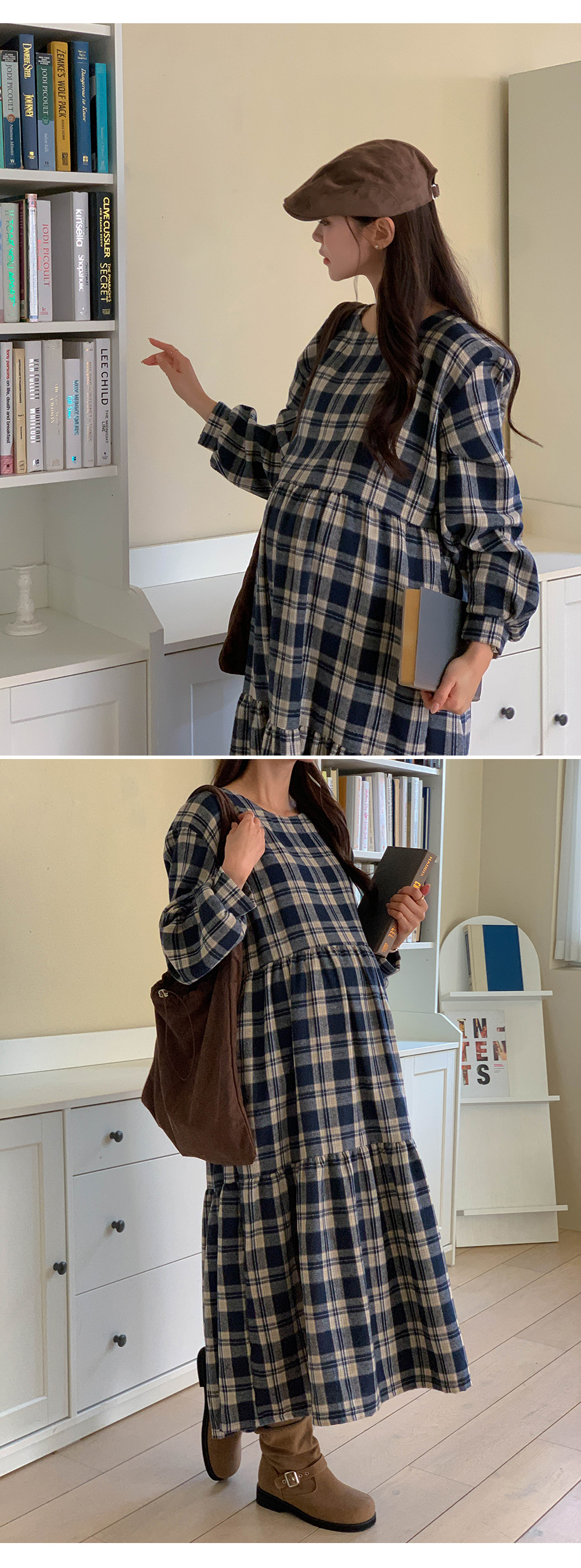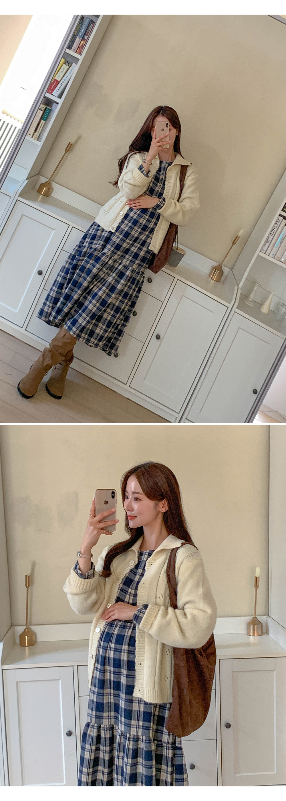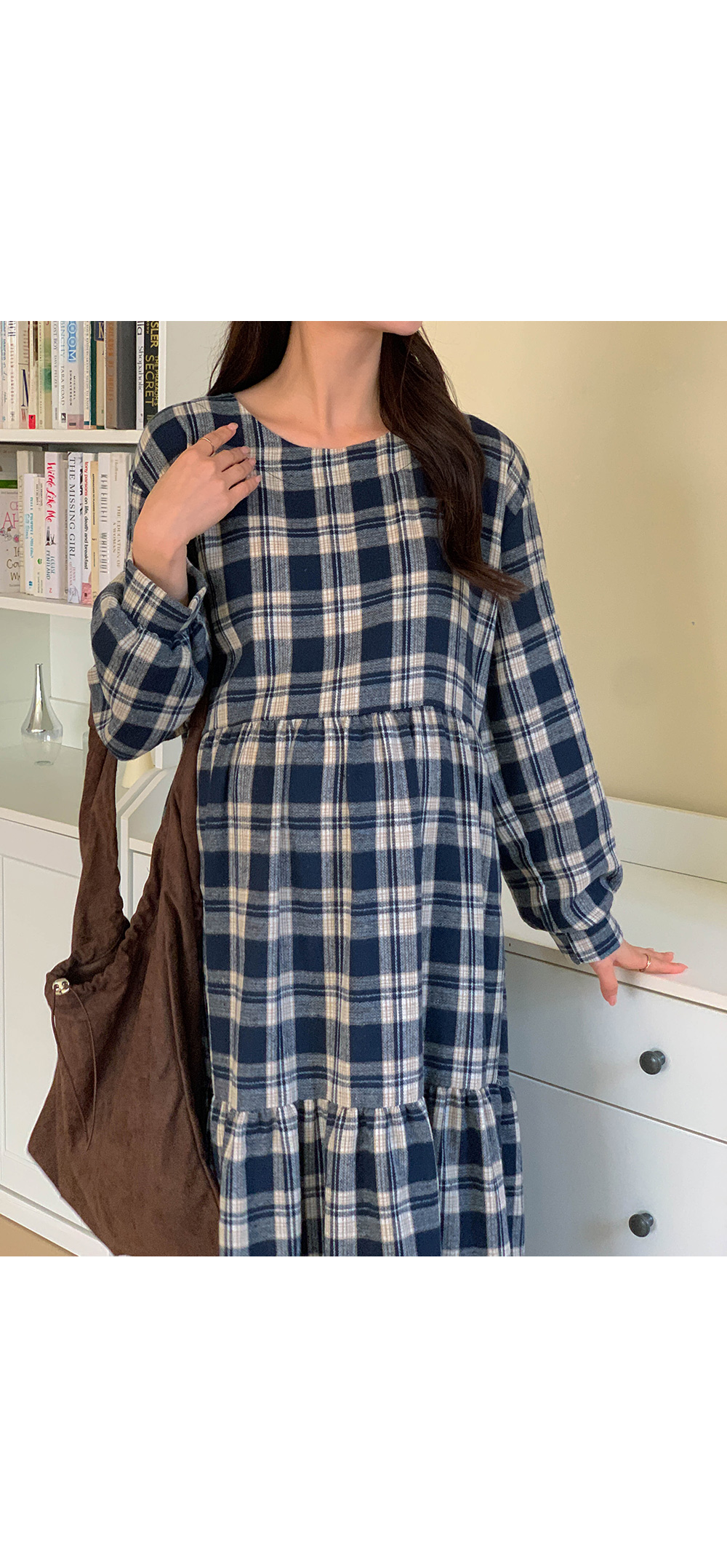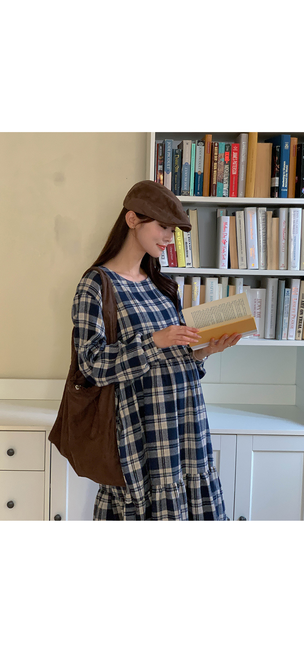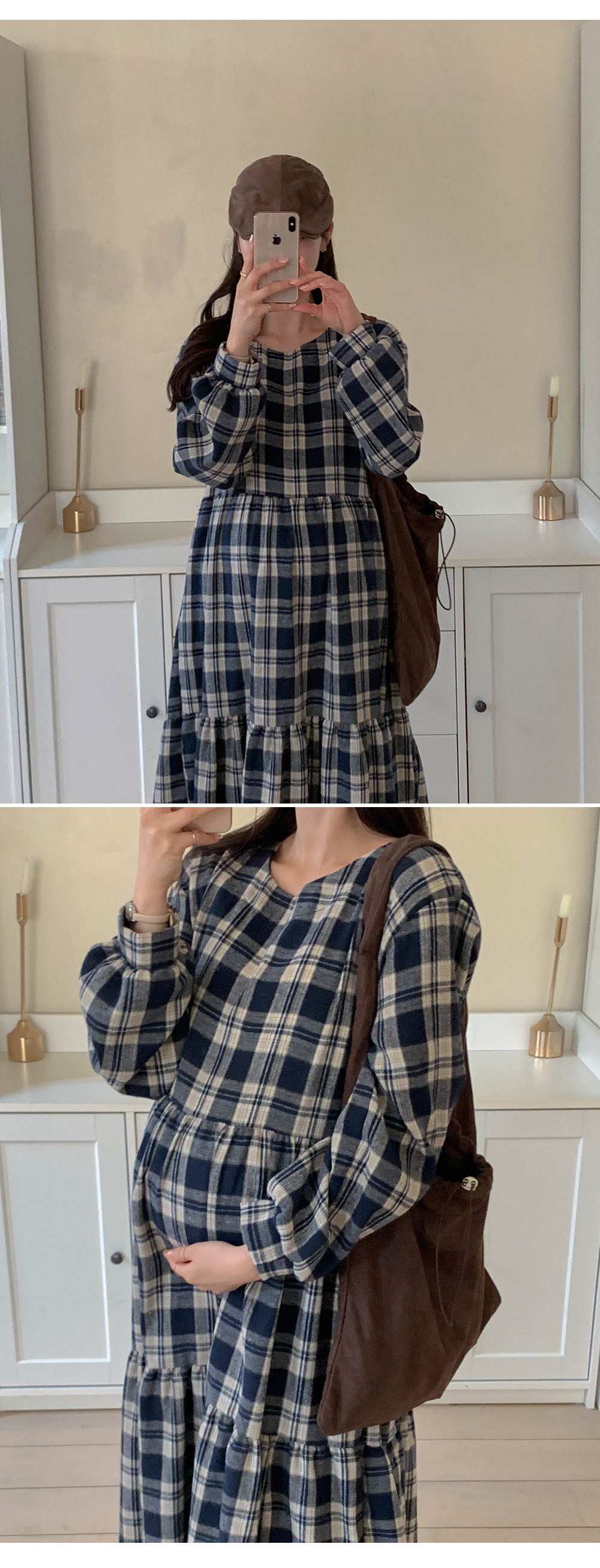 Maternity*Melting Check Cancan One Piece (Fleece Peach))