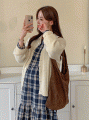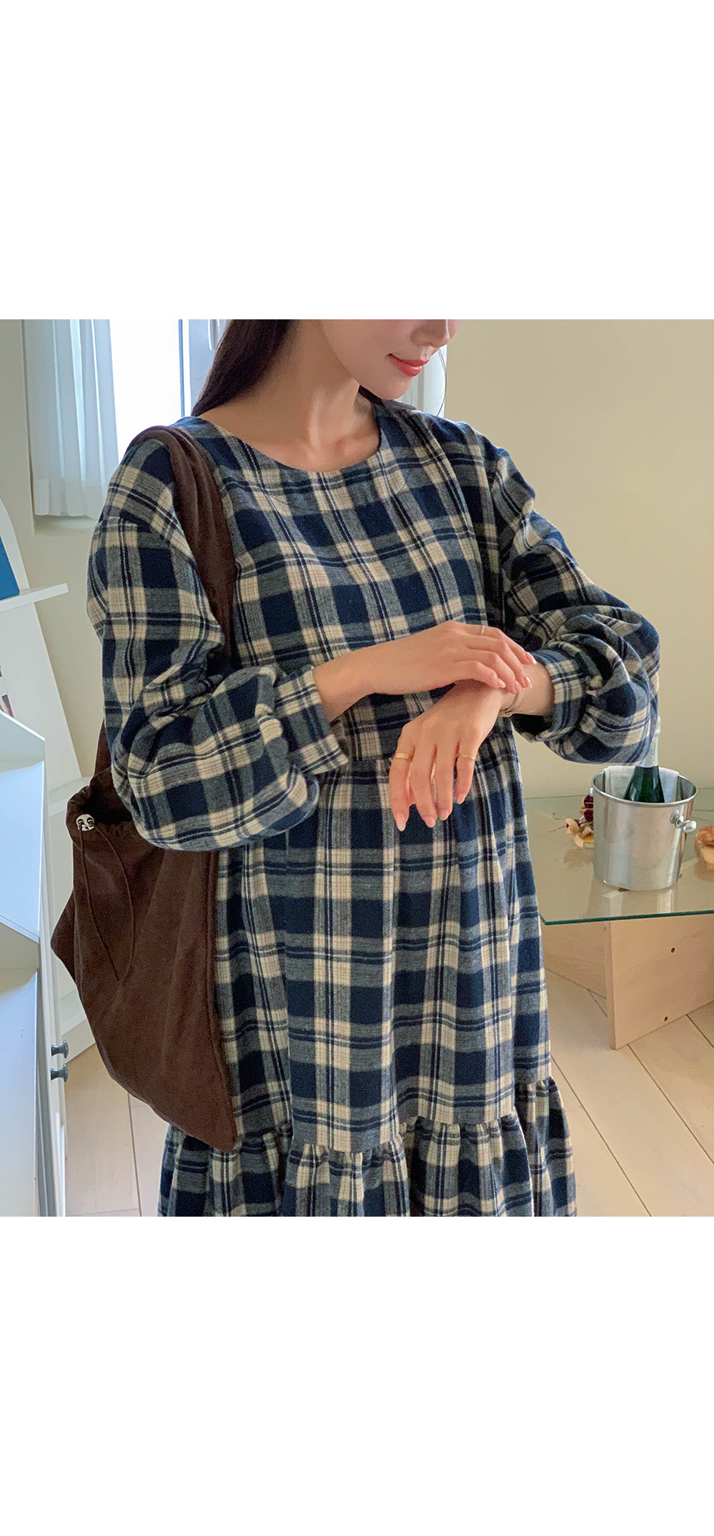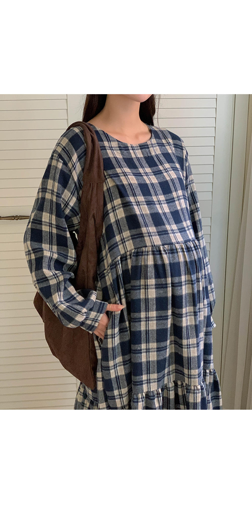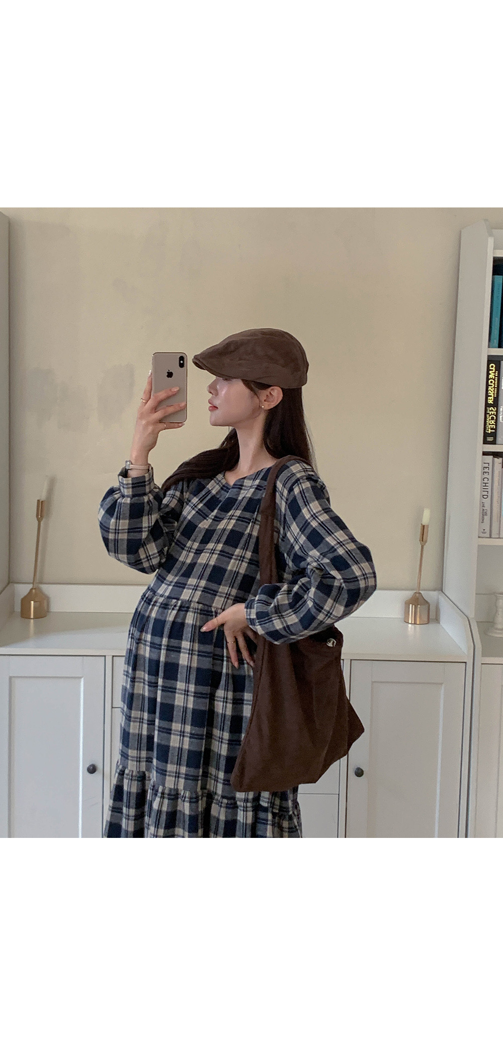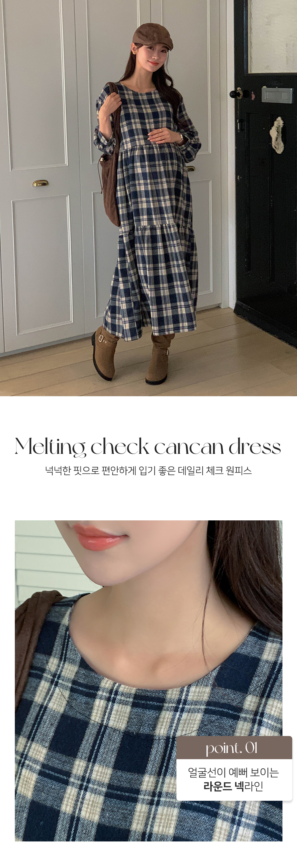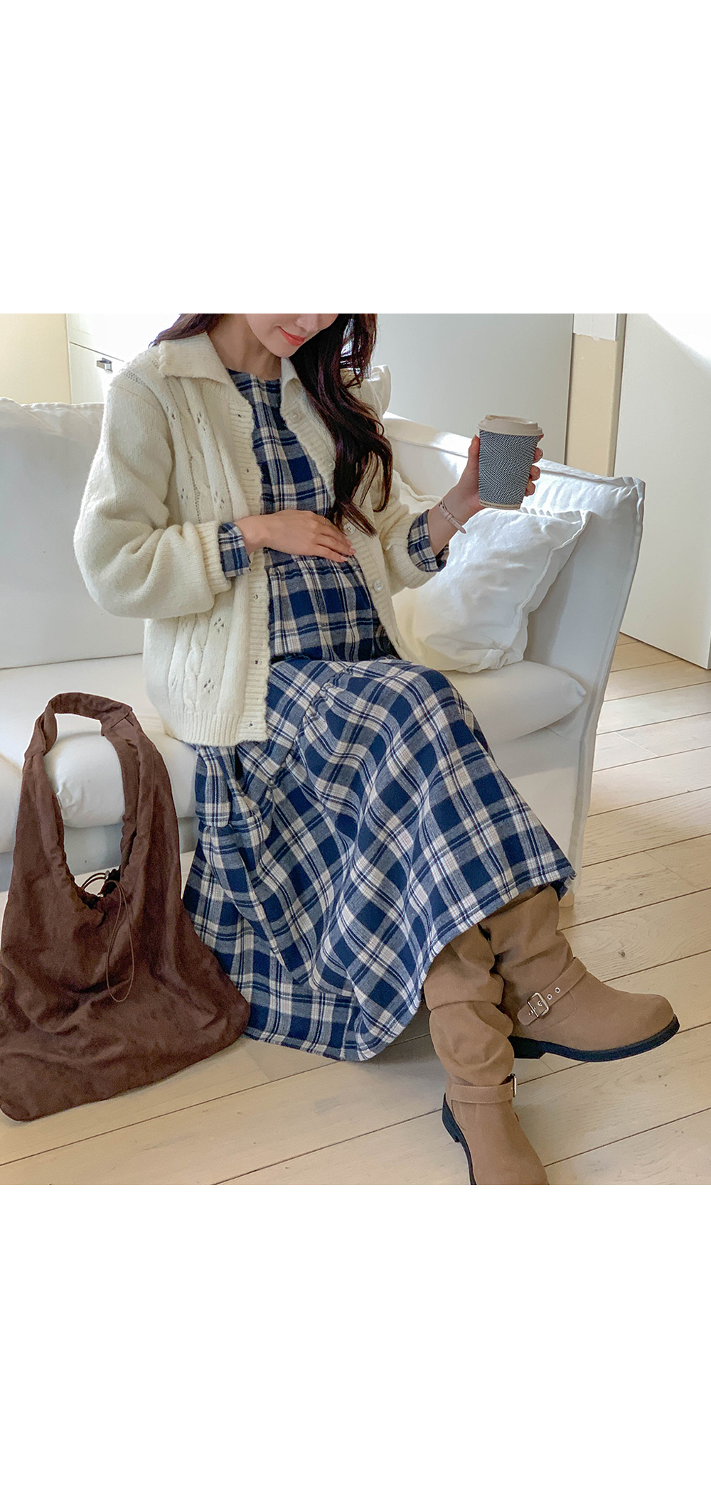 Maternity*Melting Check Cancan One Piece (Fleece Peach))