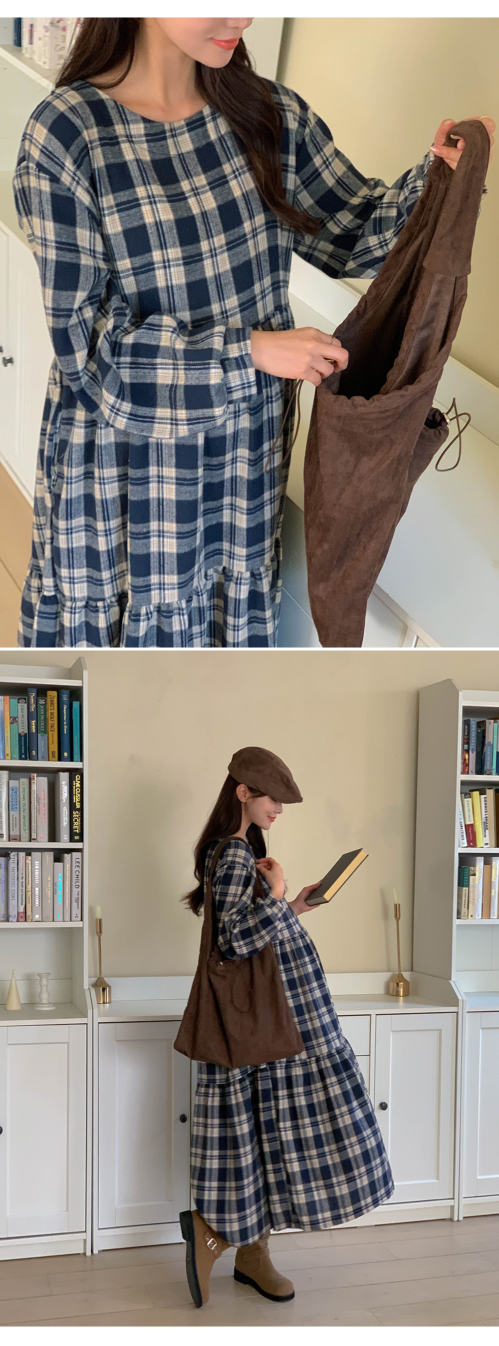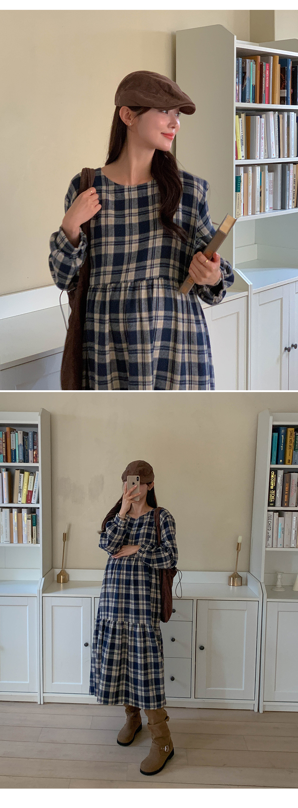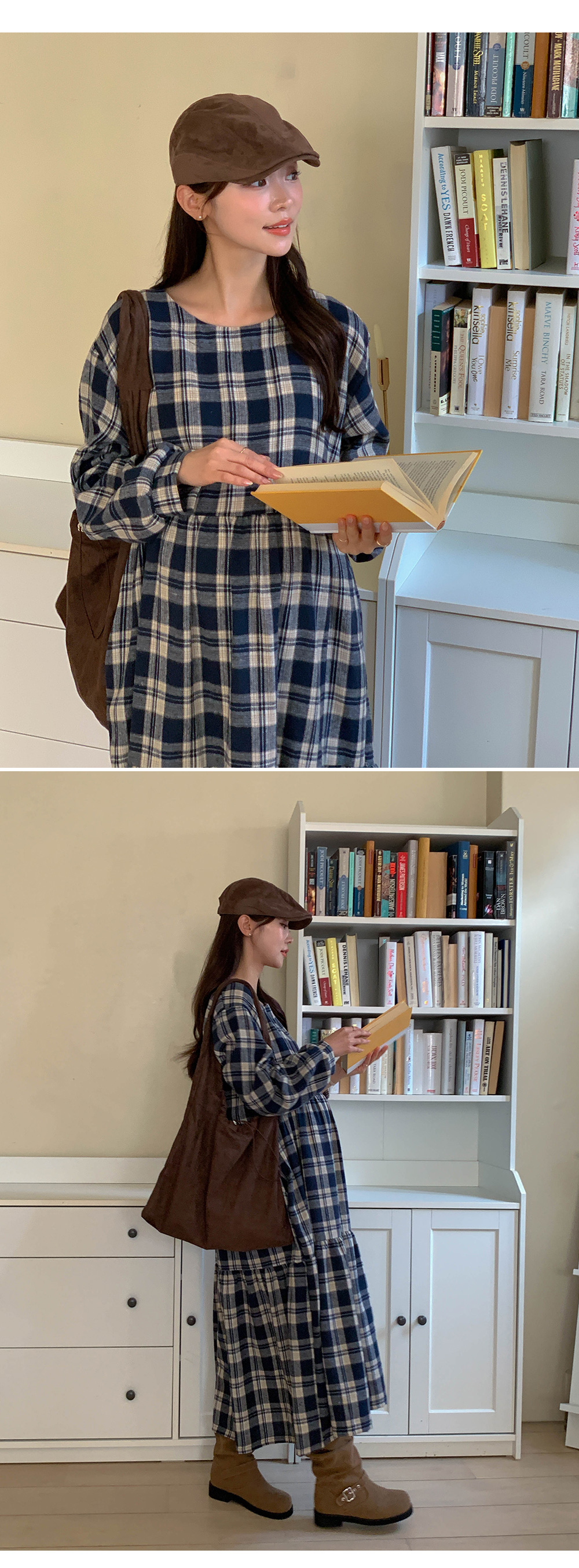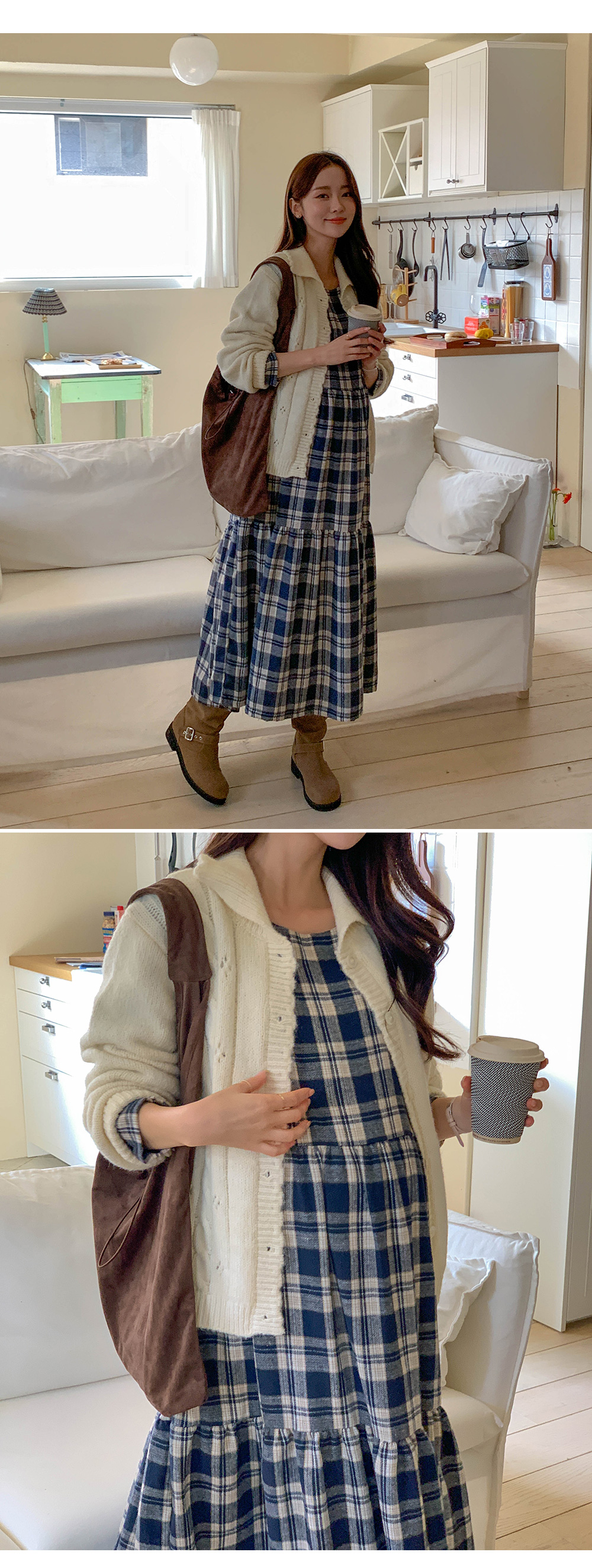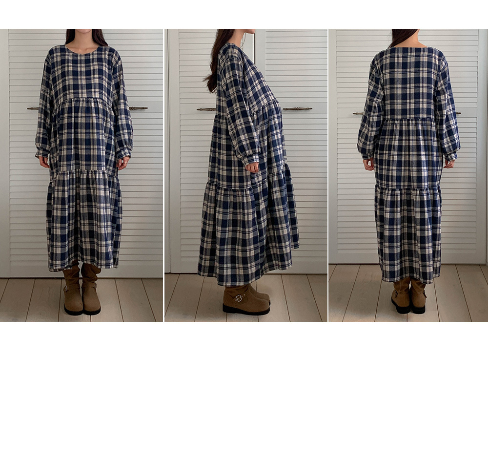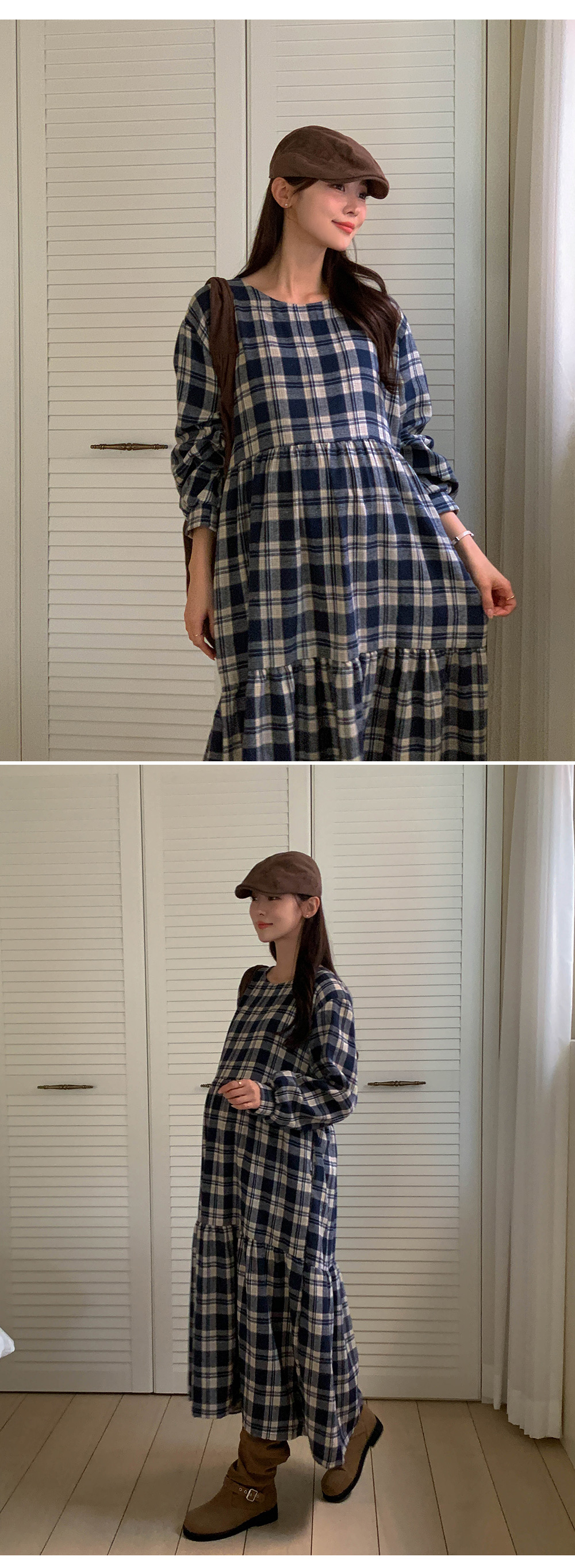 Maternity*Melting Check Cancan One Piece (Fleece Peach))