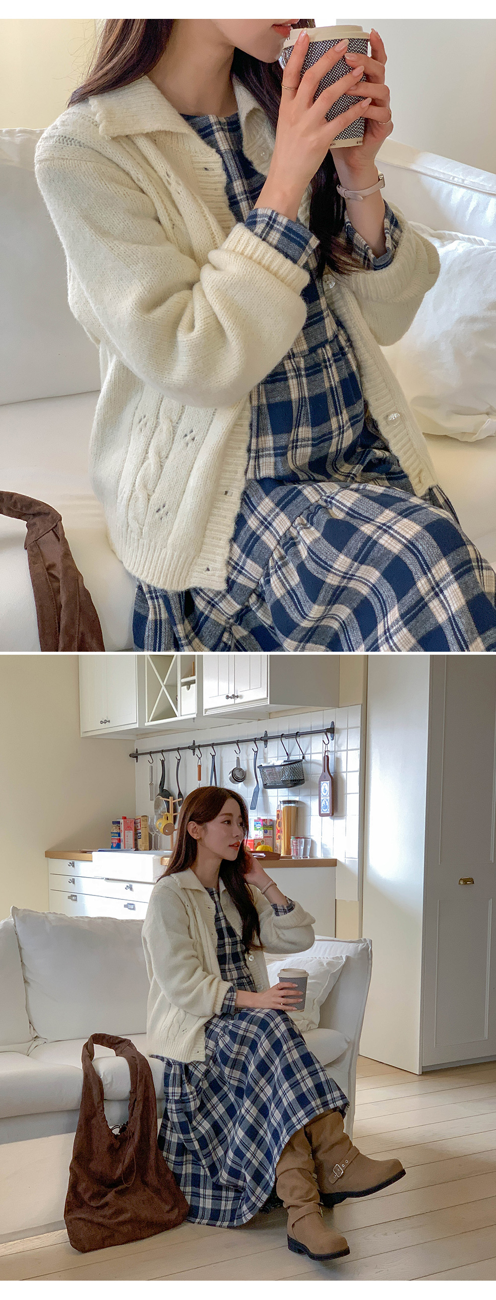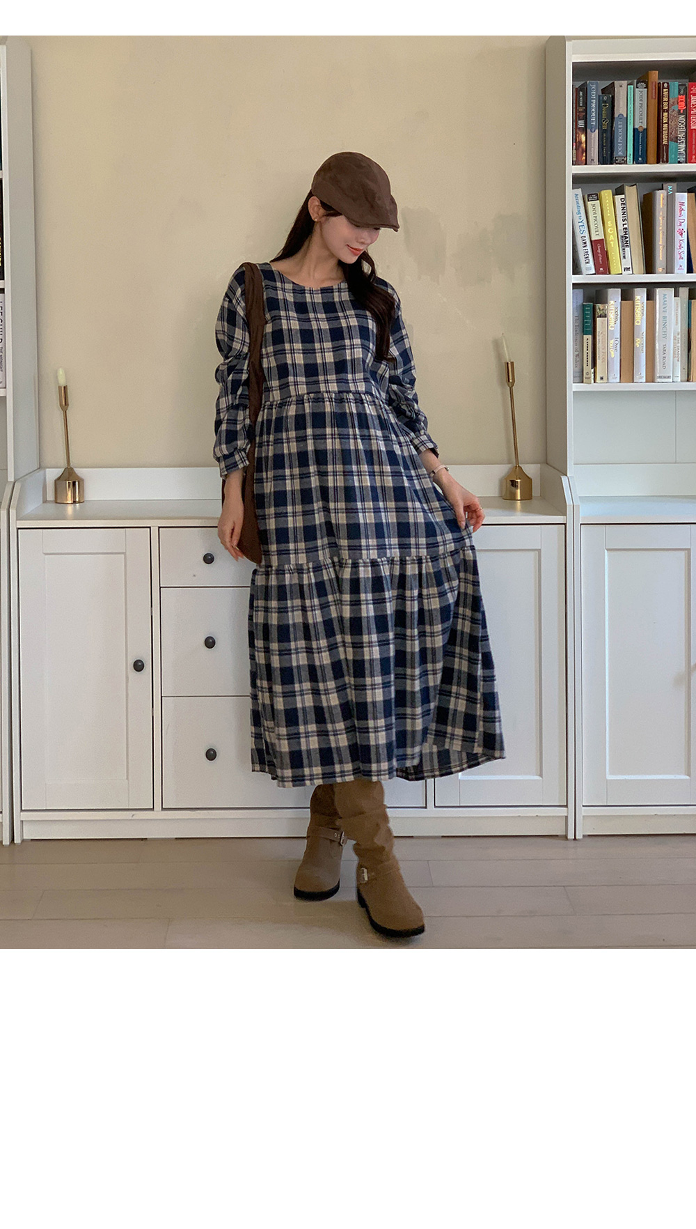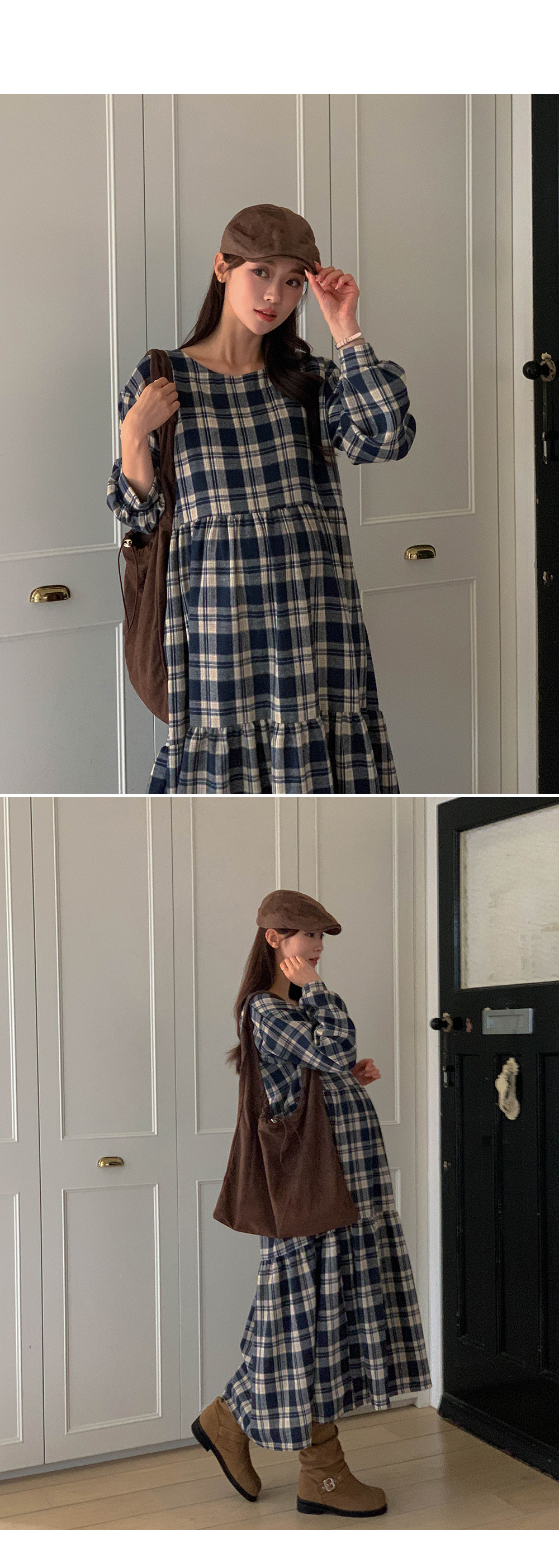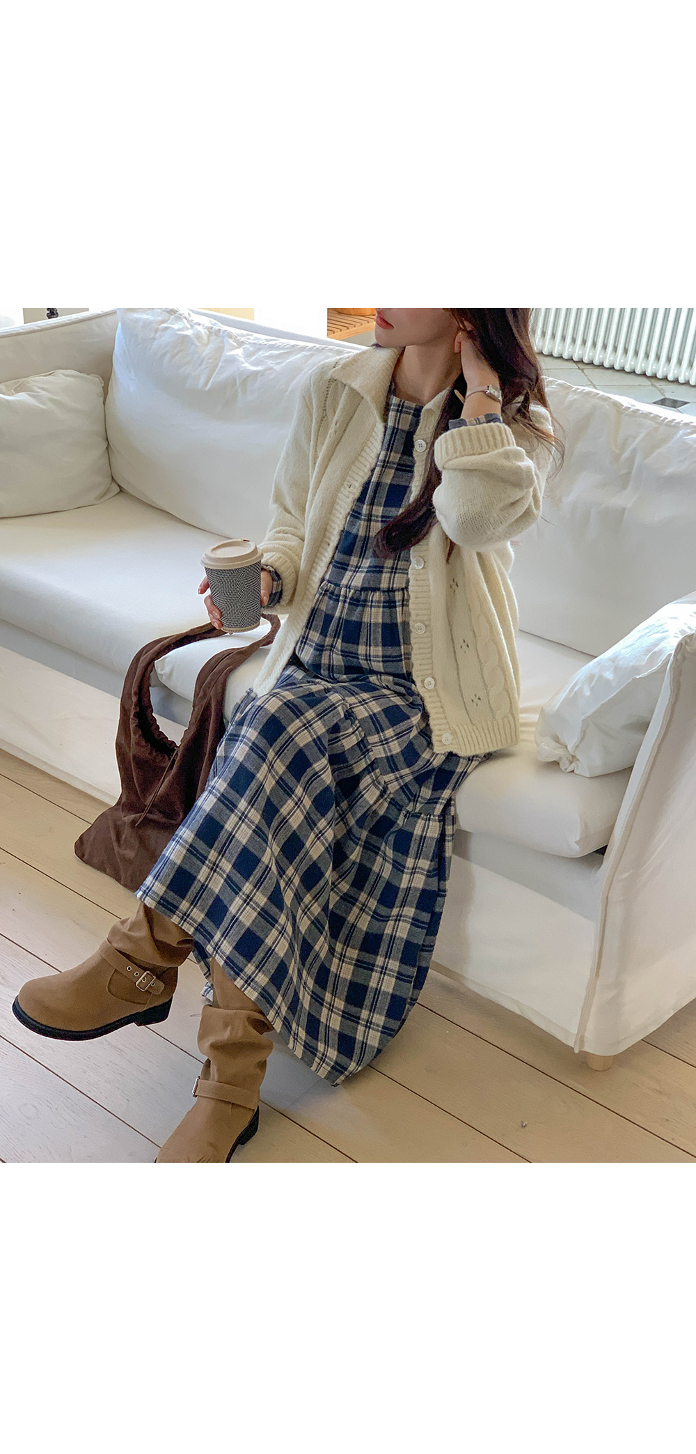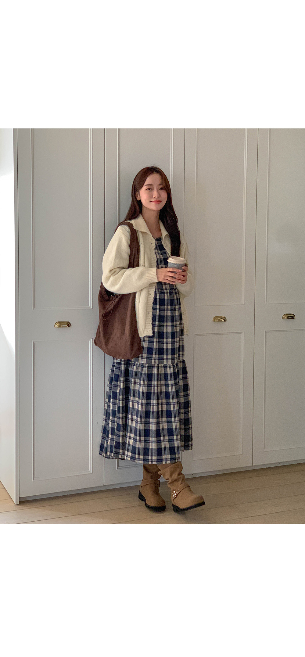 Maternity*Melting Check Cancan One Piece (Fleece Peach))