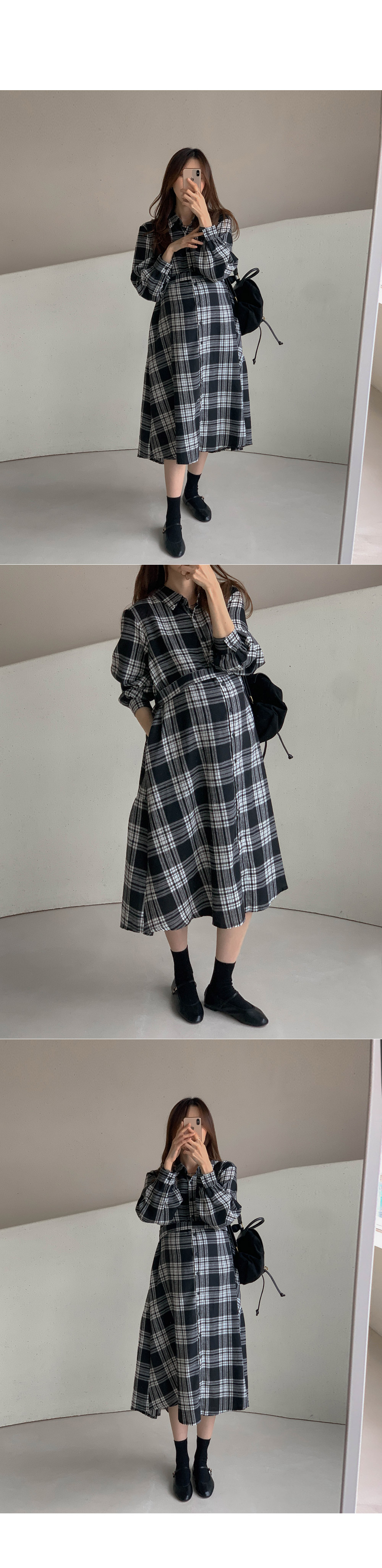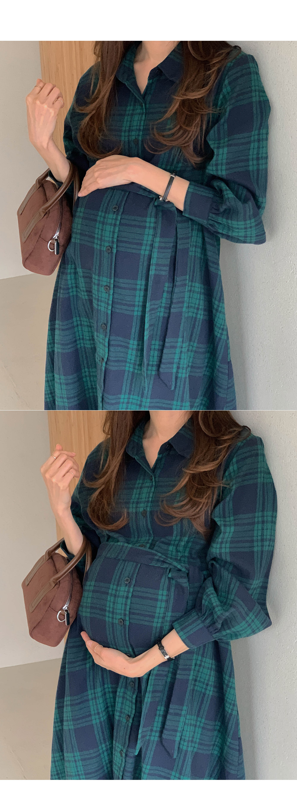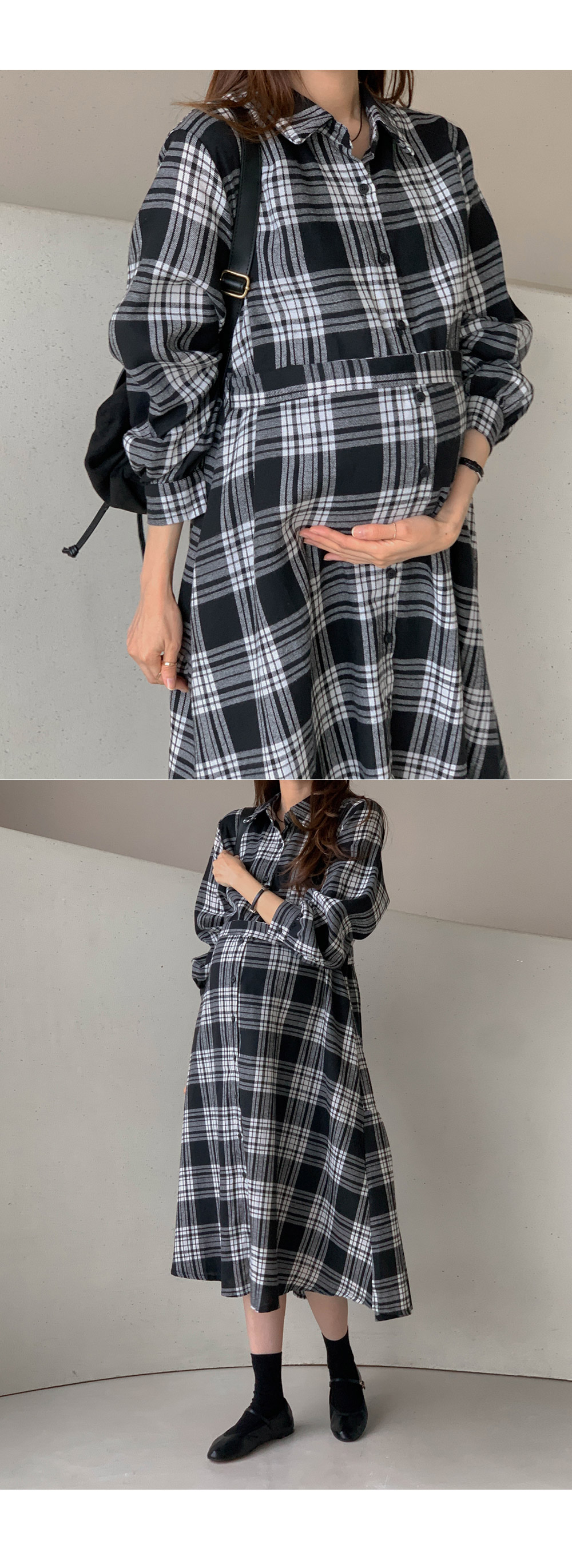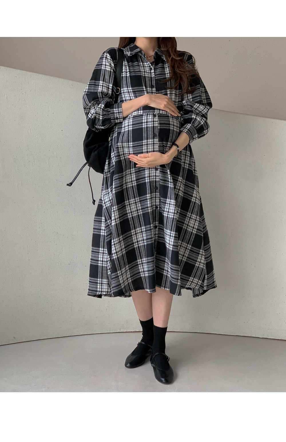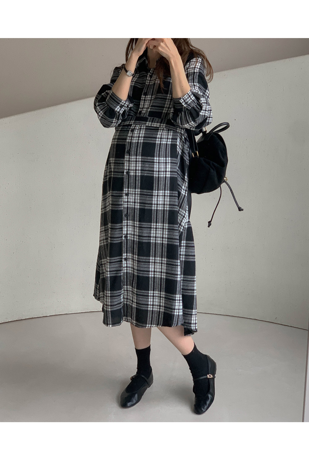 Maternity*Moren Check Shirt Dress (Fleece Peach))