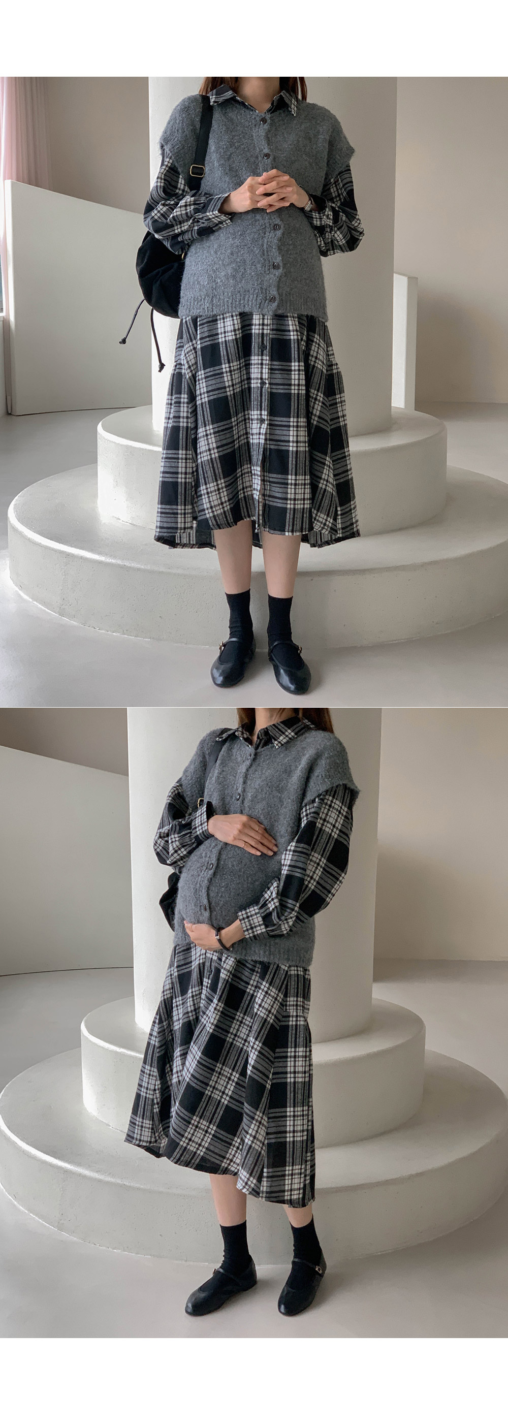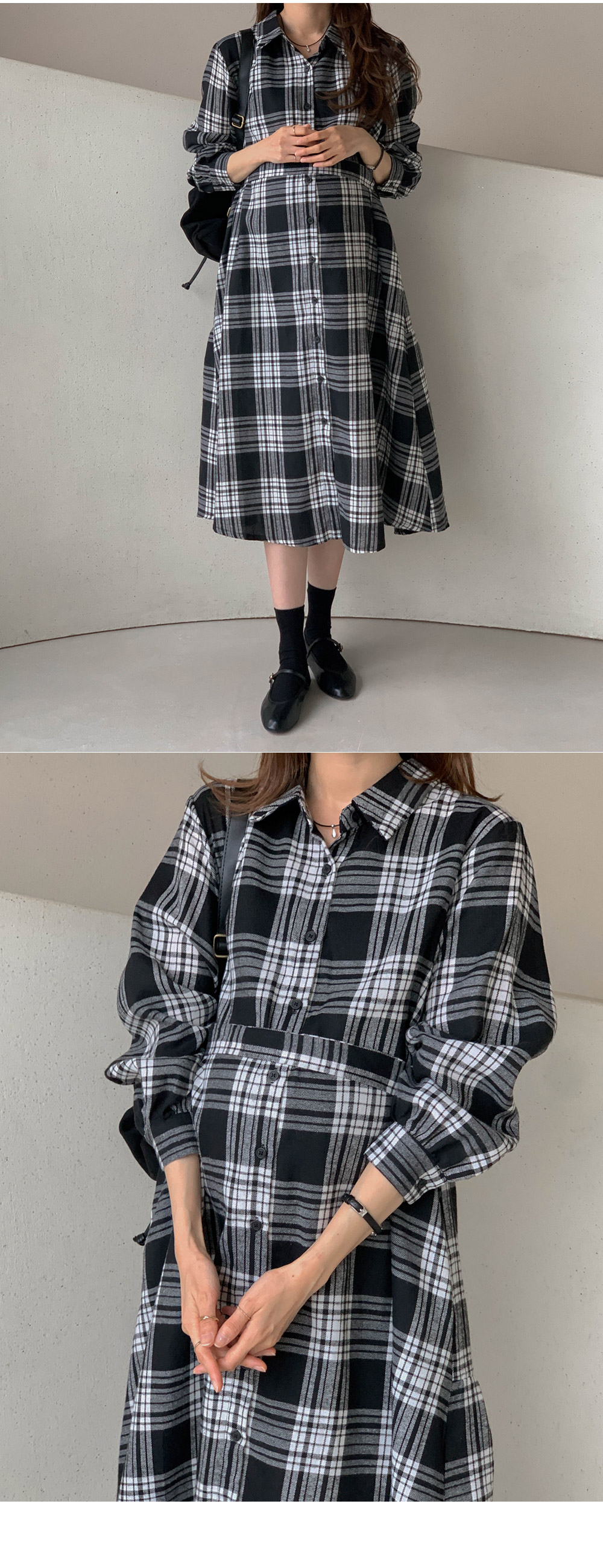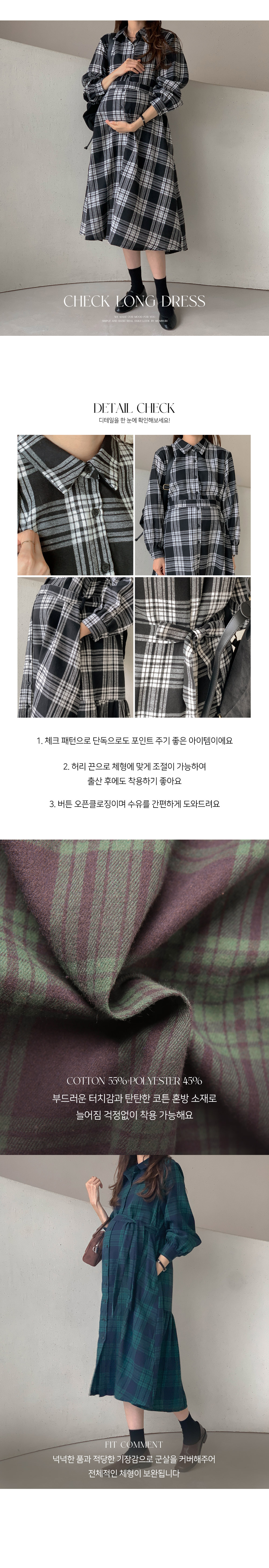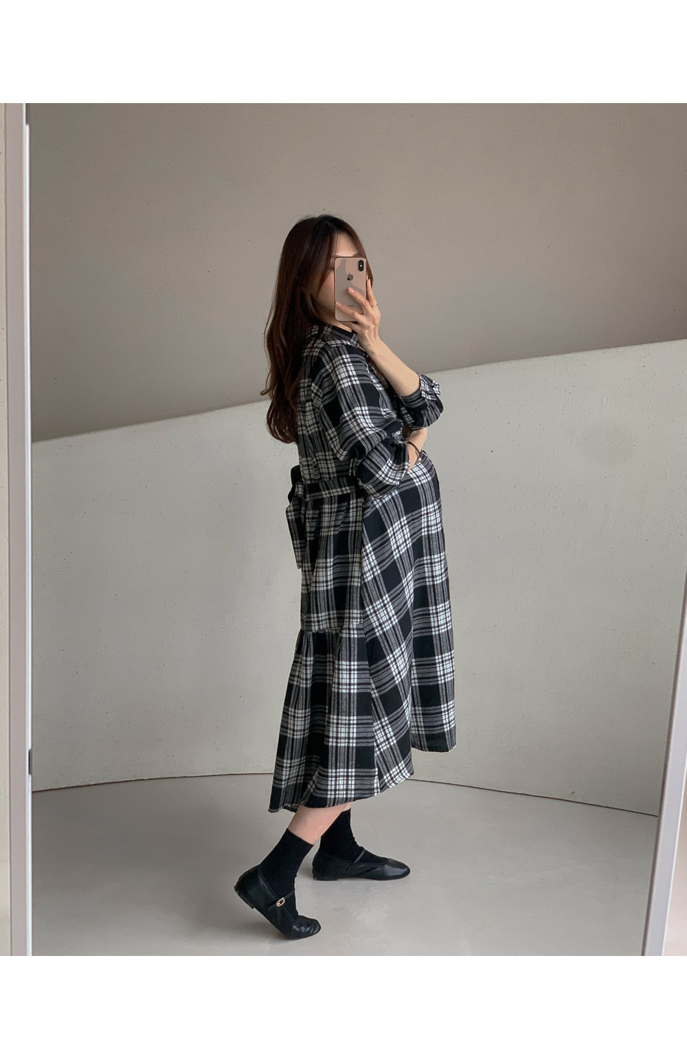 Maternity*Moren Check Shirt Dress (Fleece Peach))