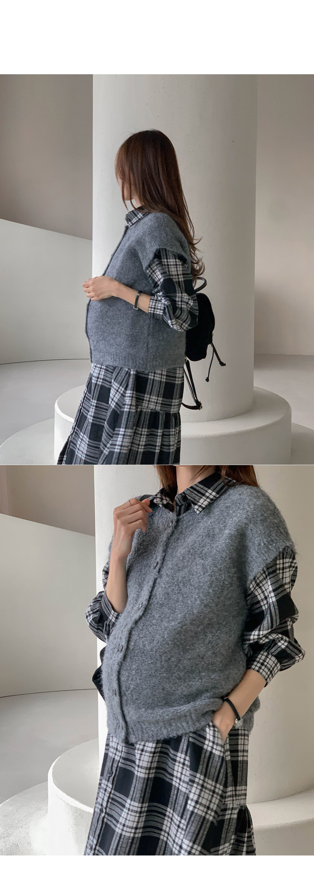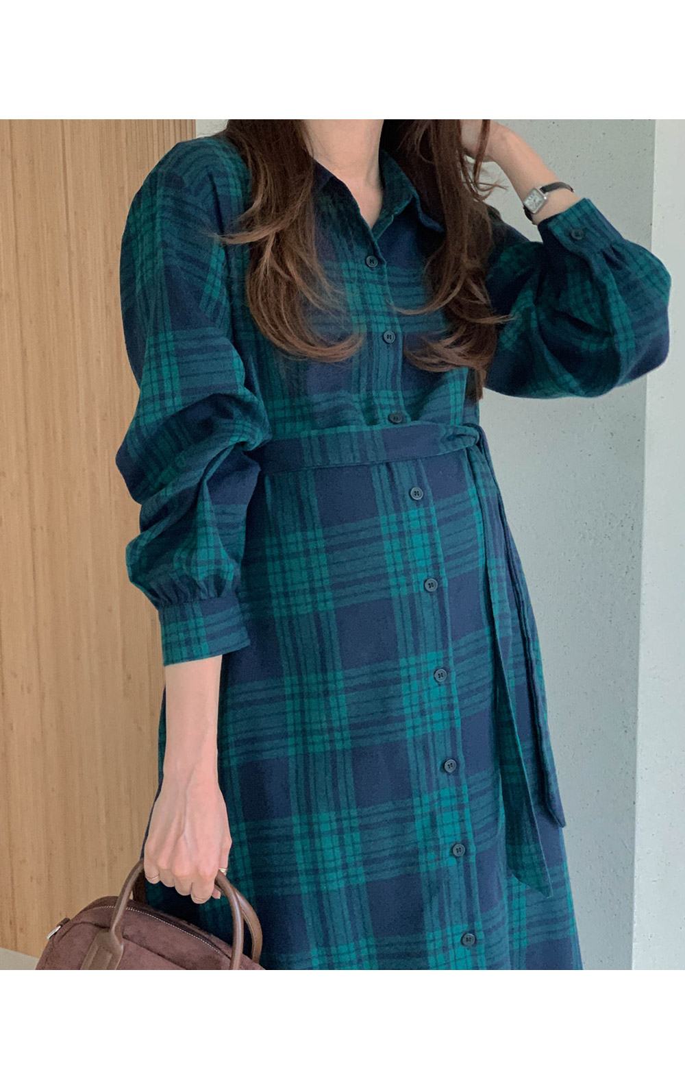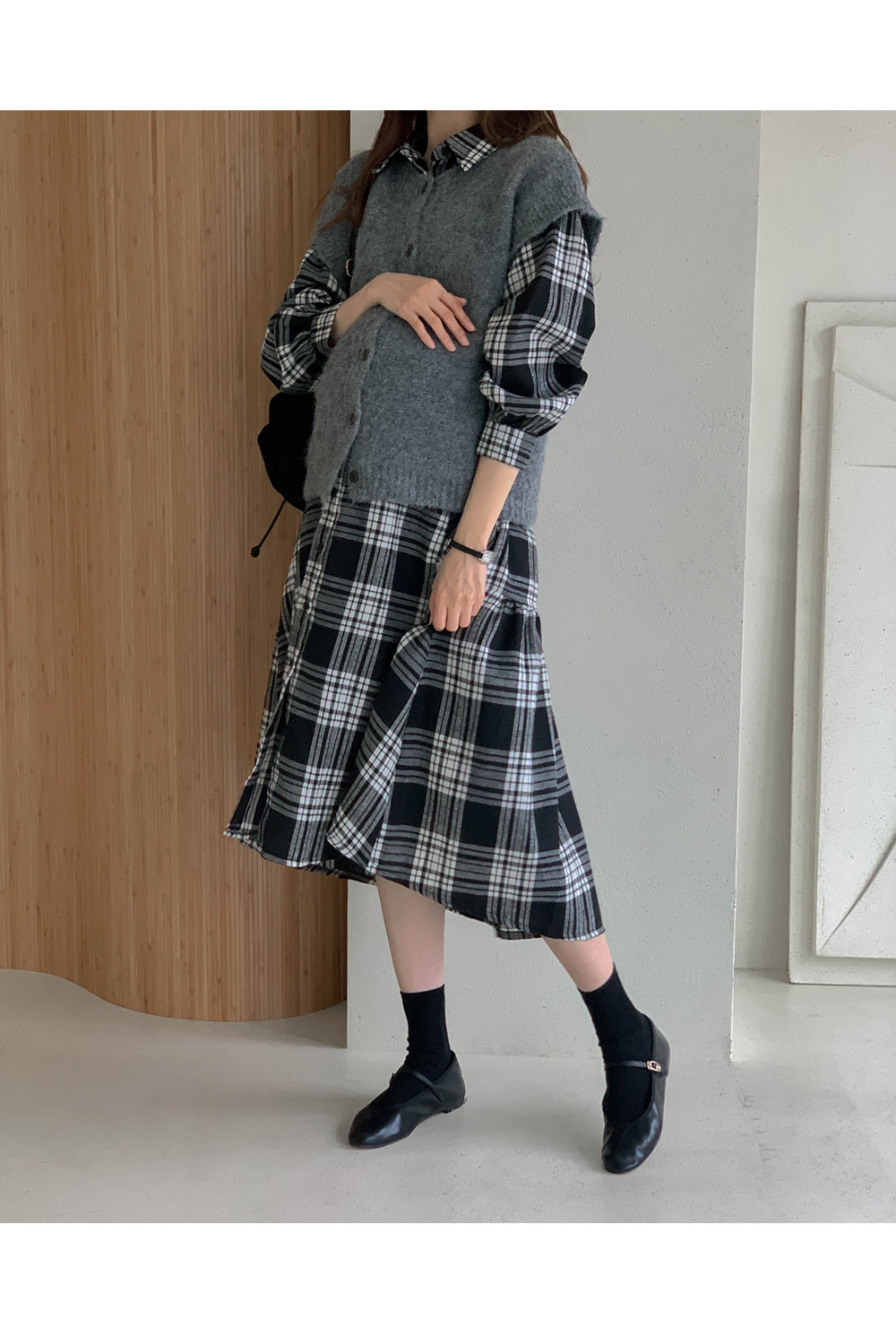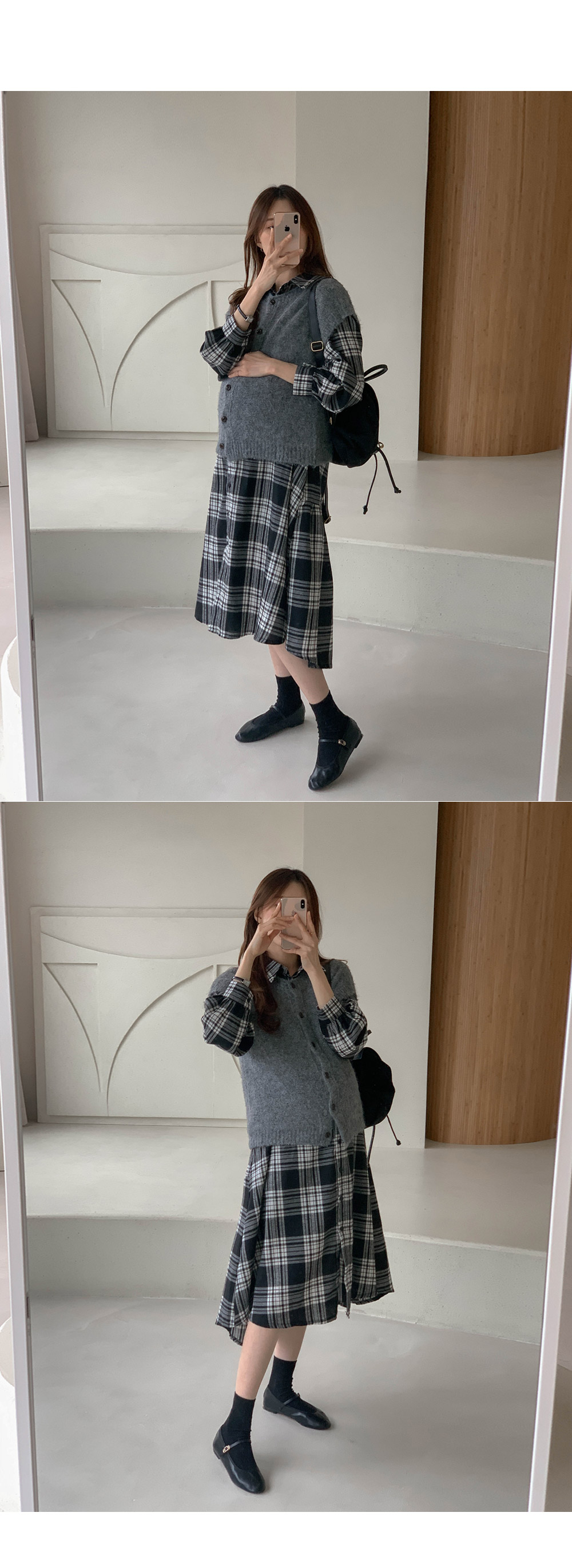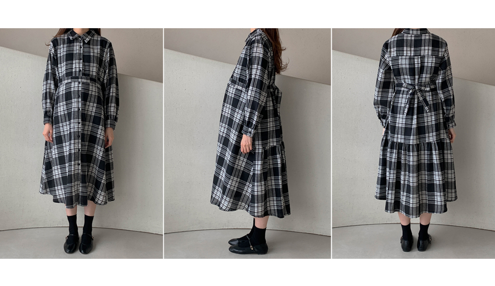 Maternity*Moren Check Shirt Dress (Fleece Peach))