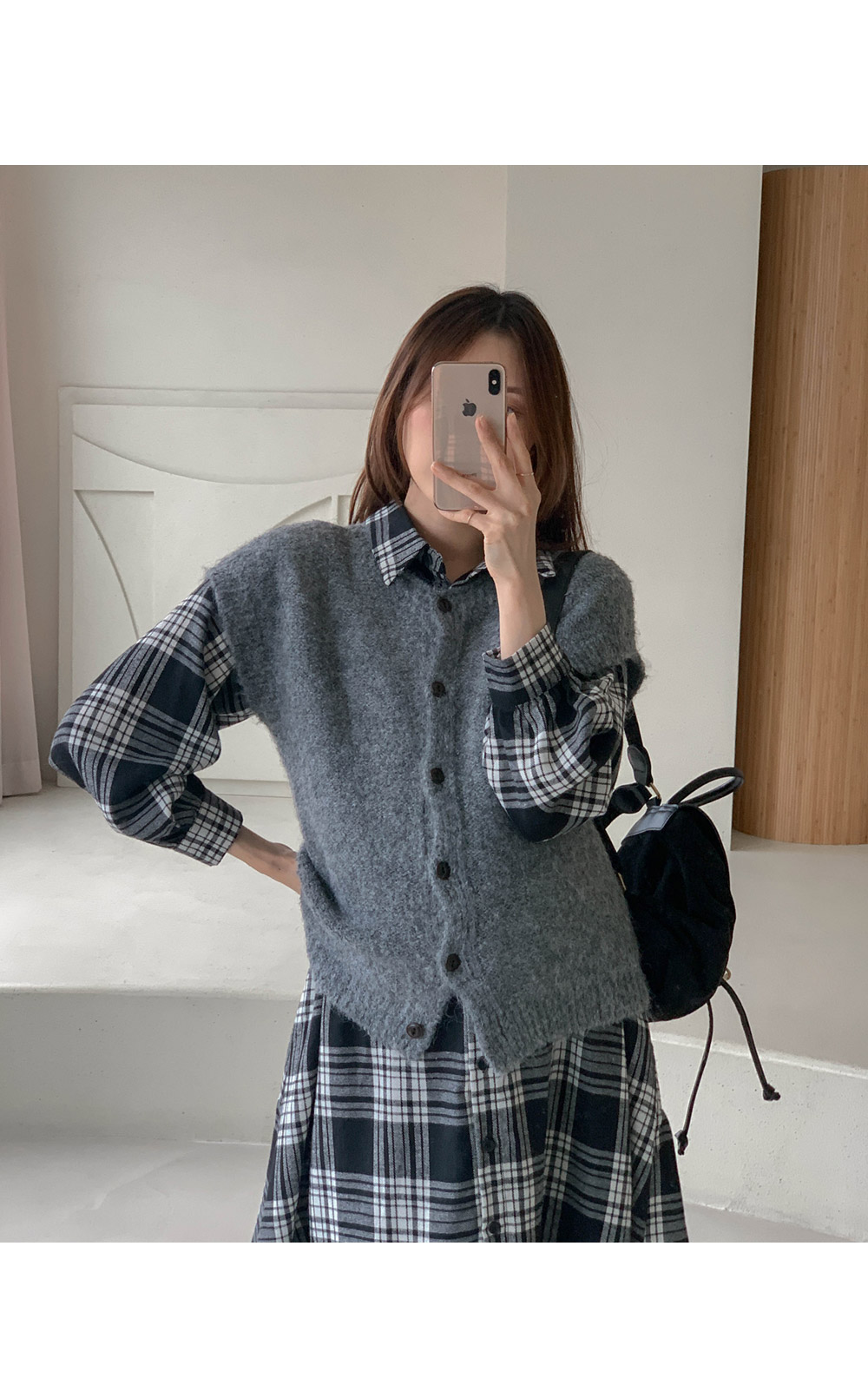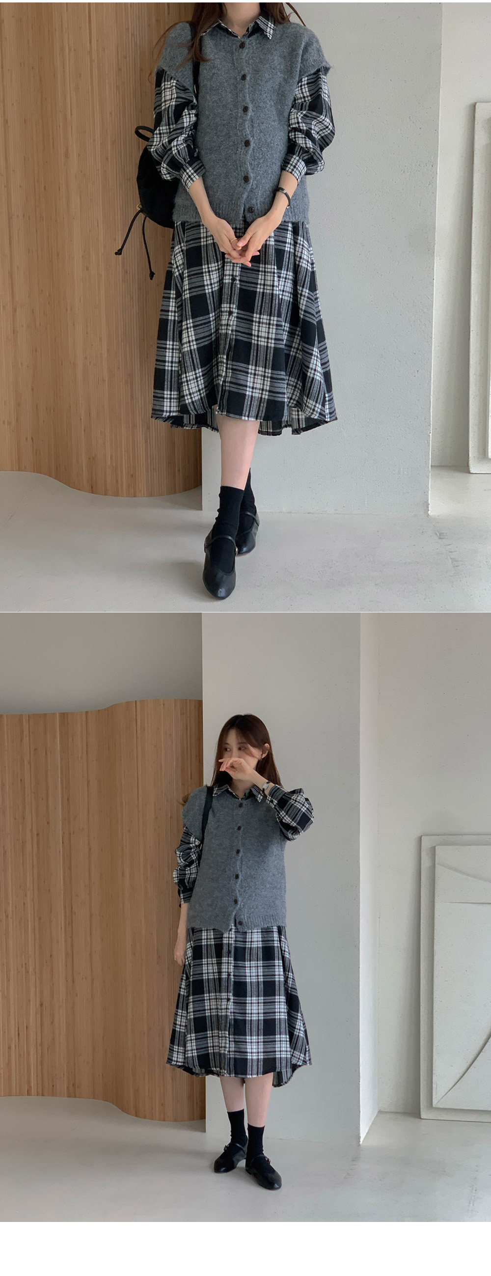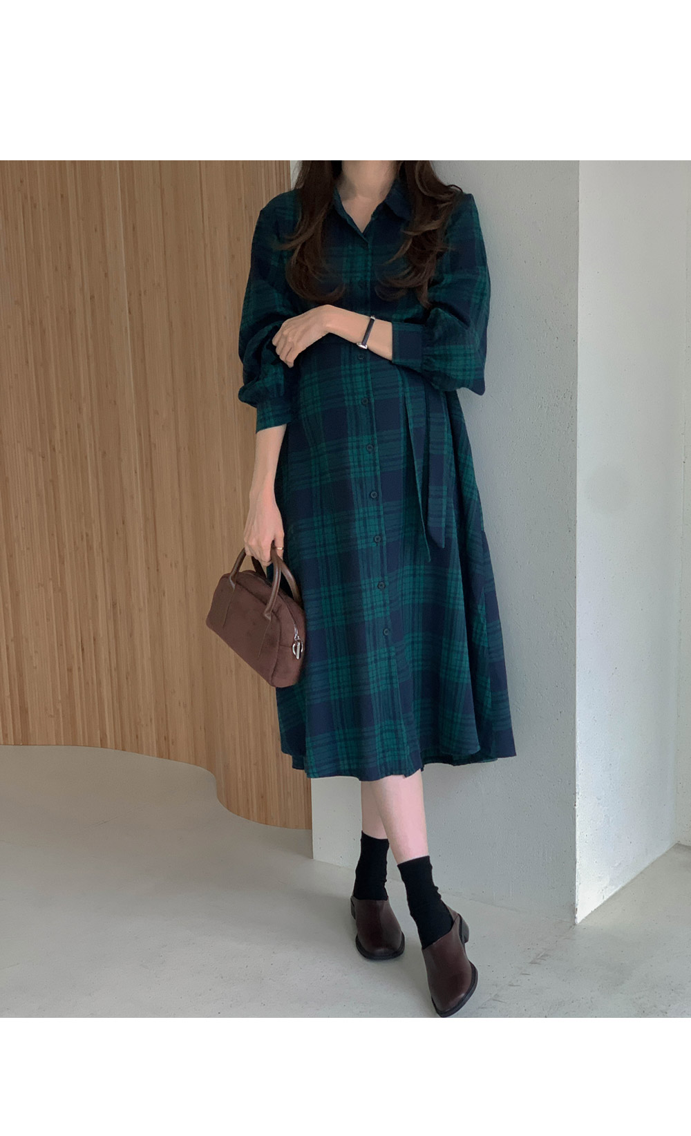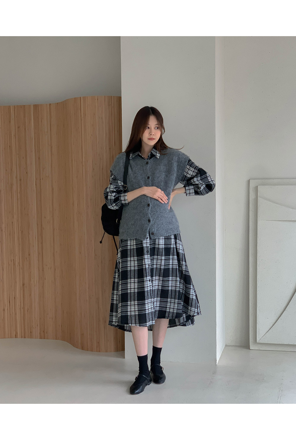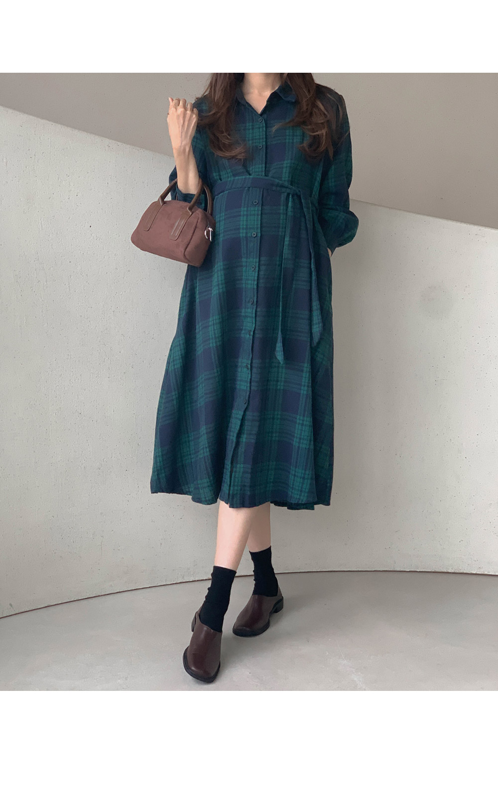 Maternity*Moren Check Shirt Dress (Fleece Peach))