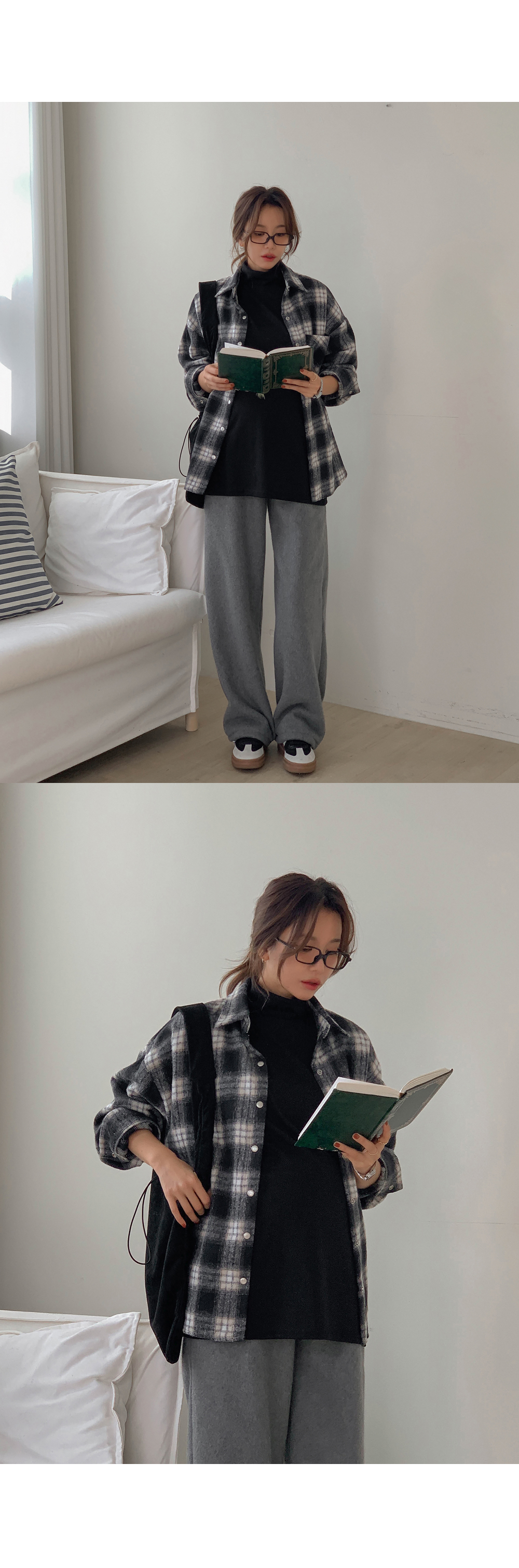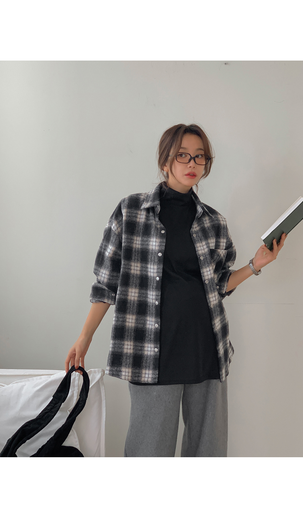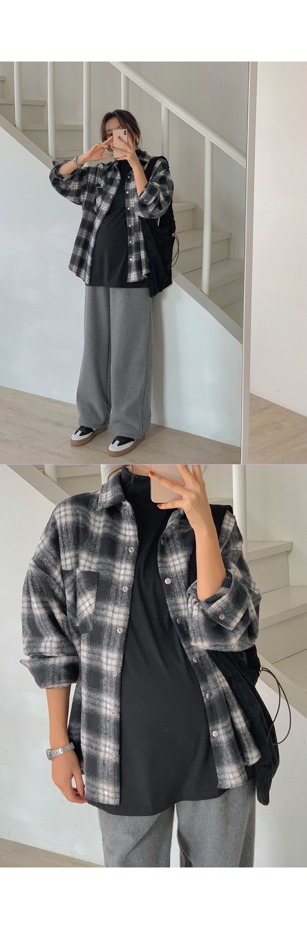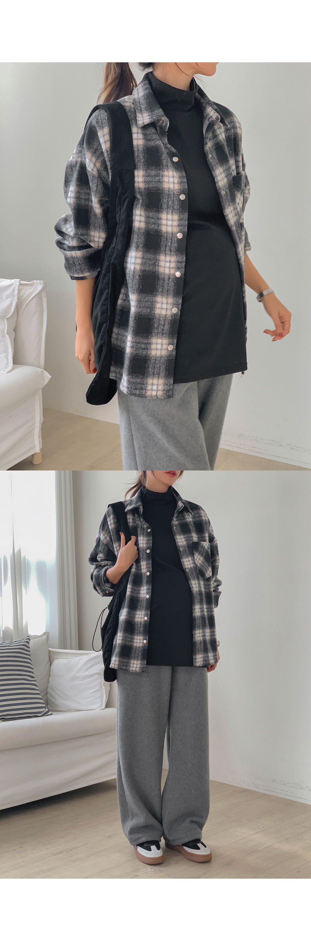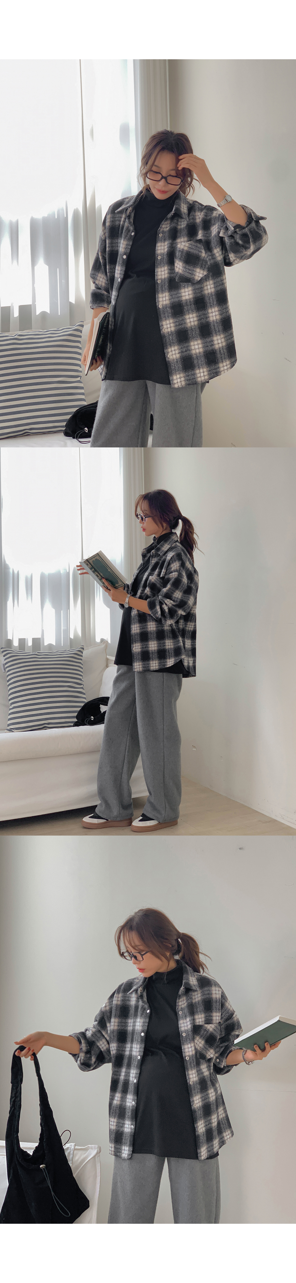 Maternity*Cotton check outer fleece thick shirt