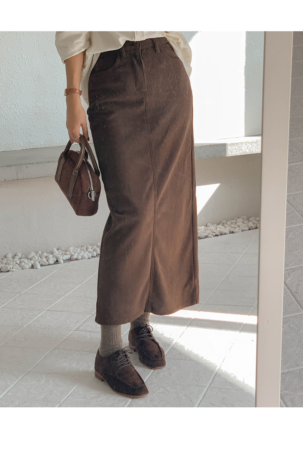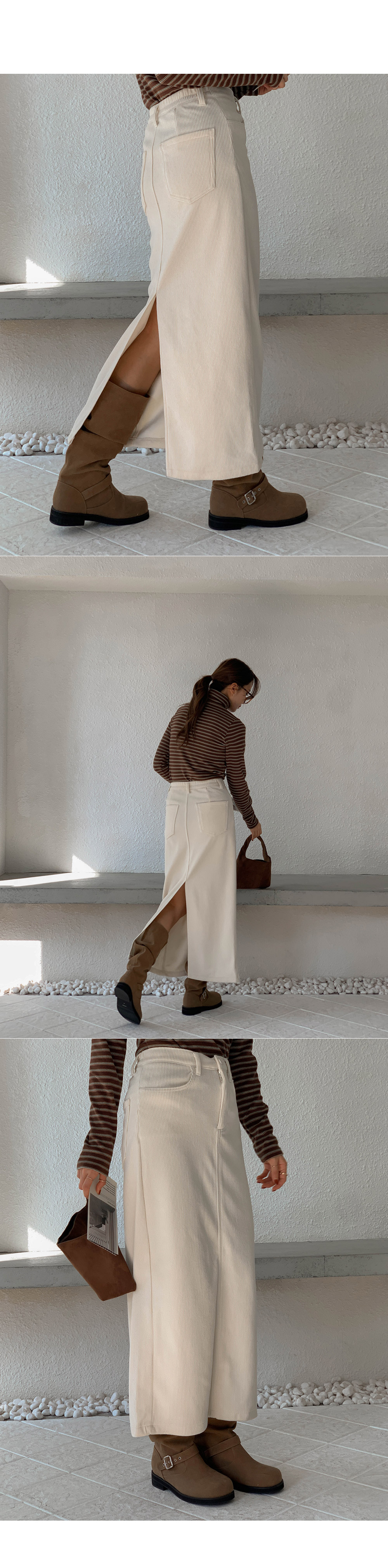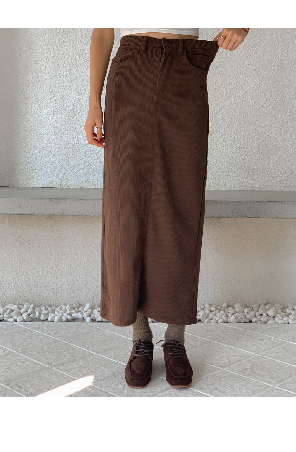 Corduroy mink-lined rong skirt)