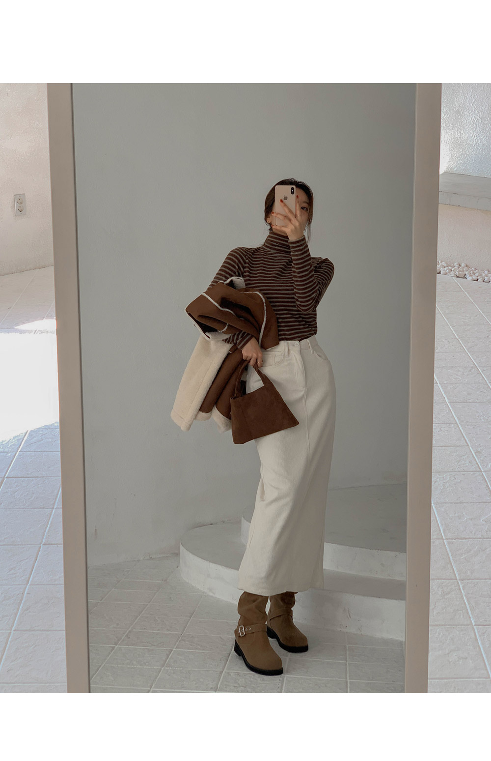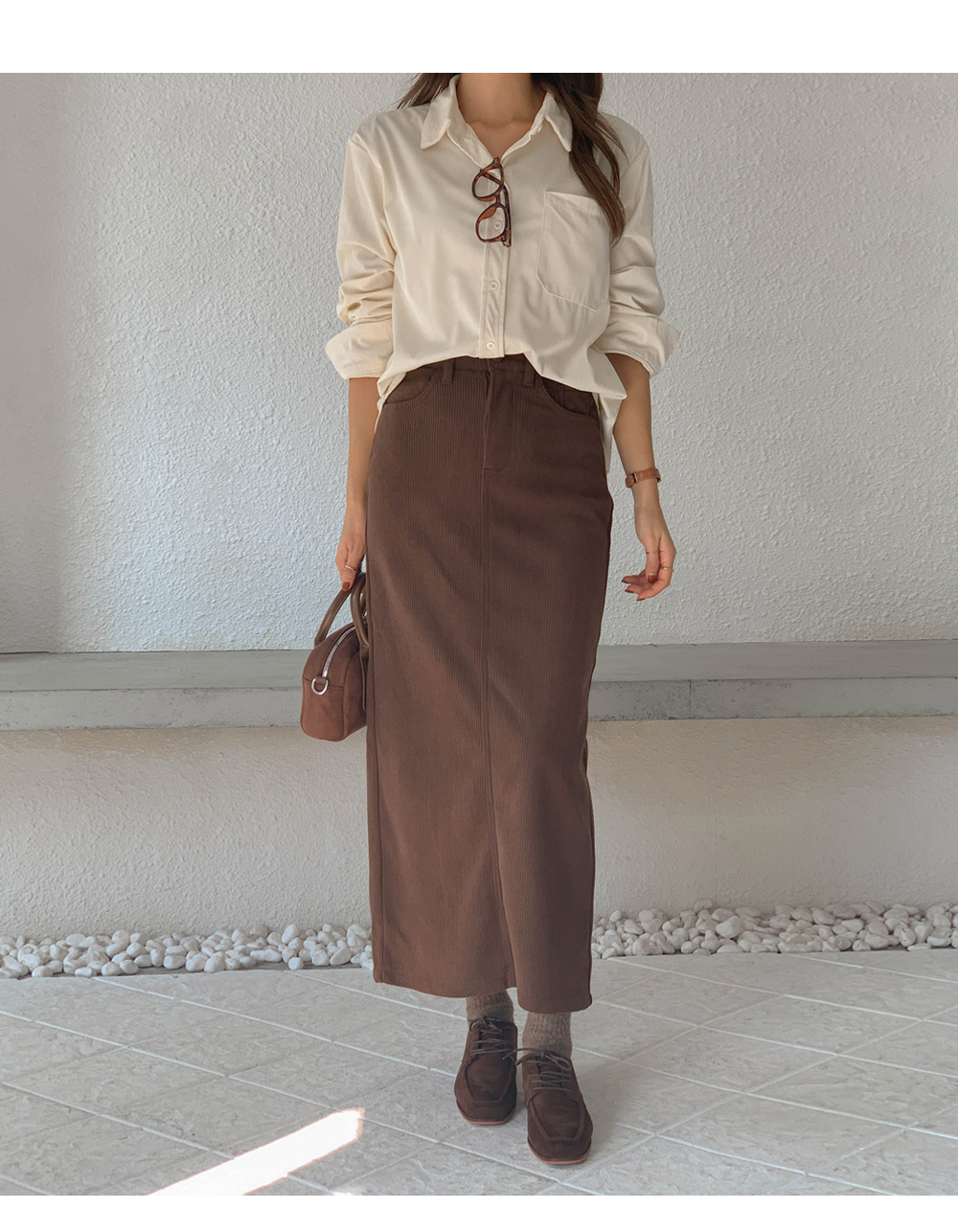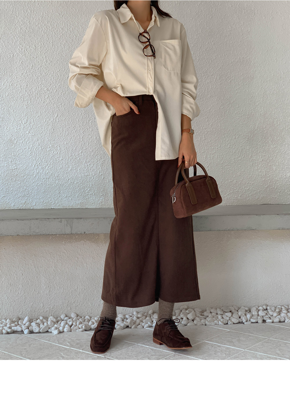 Corduroy mink-lined rong skirt)