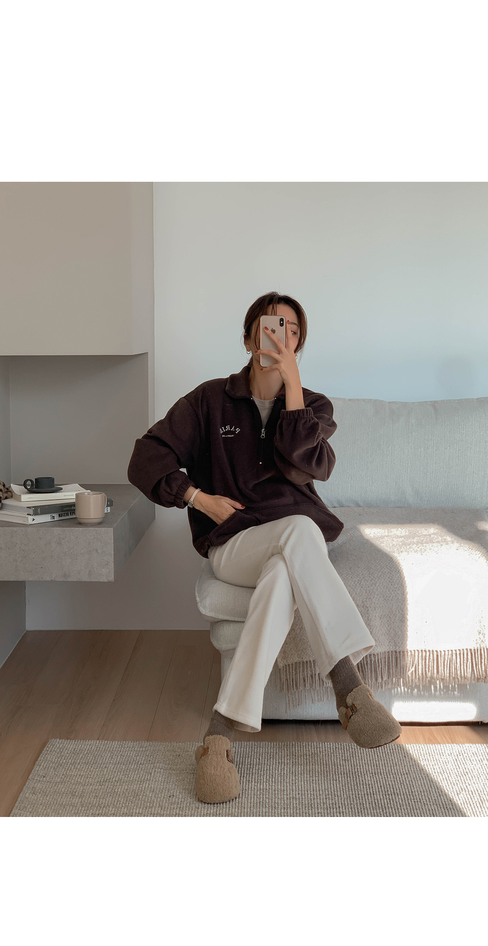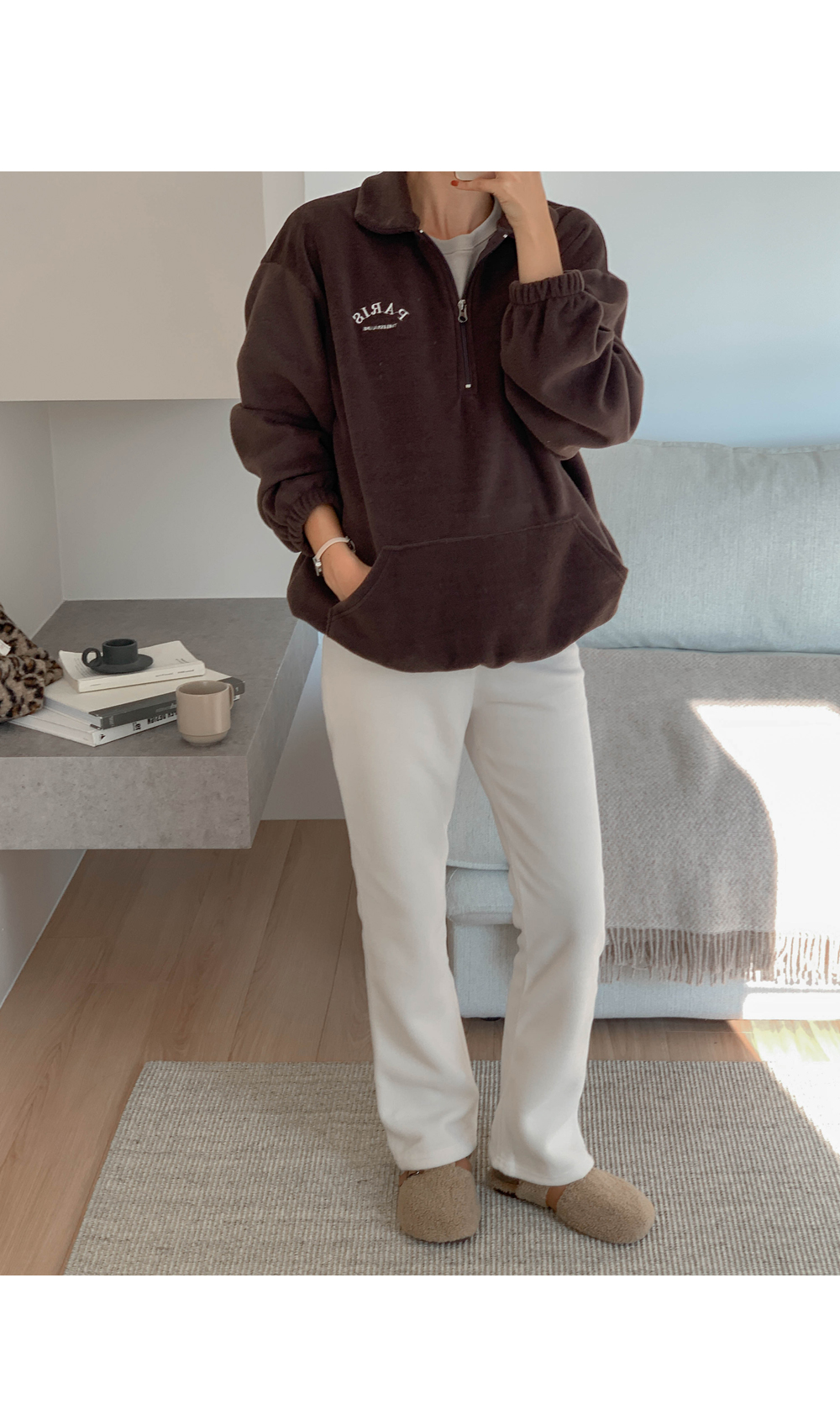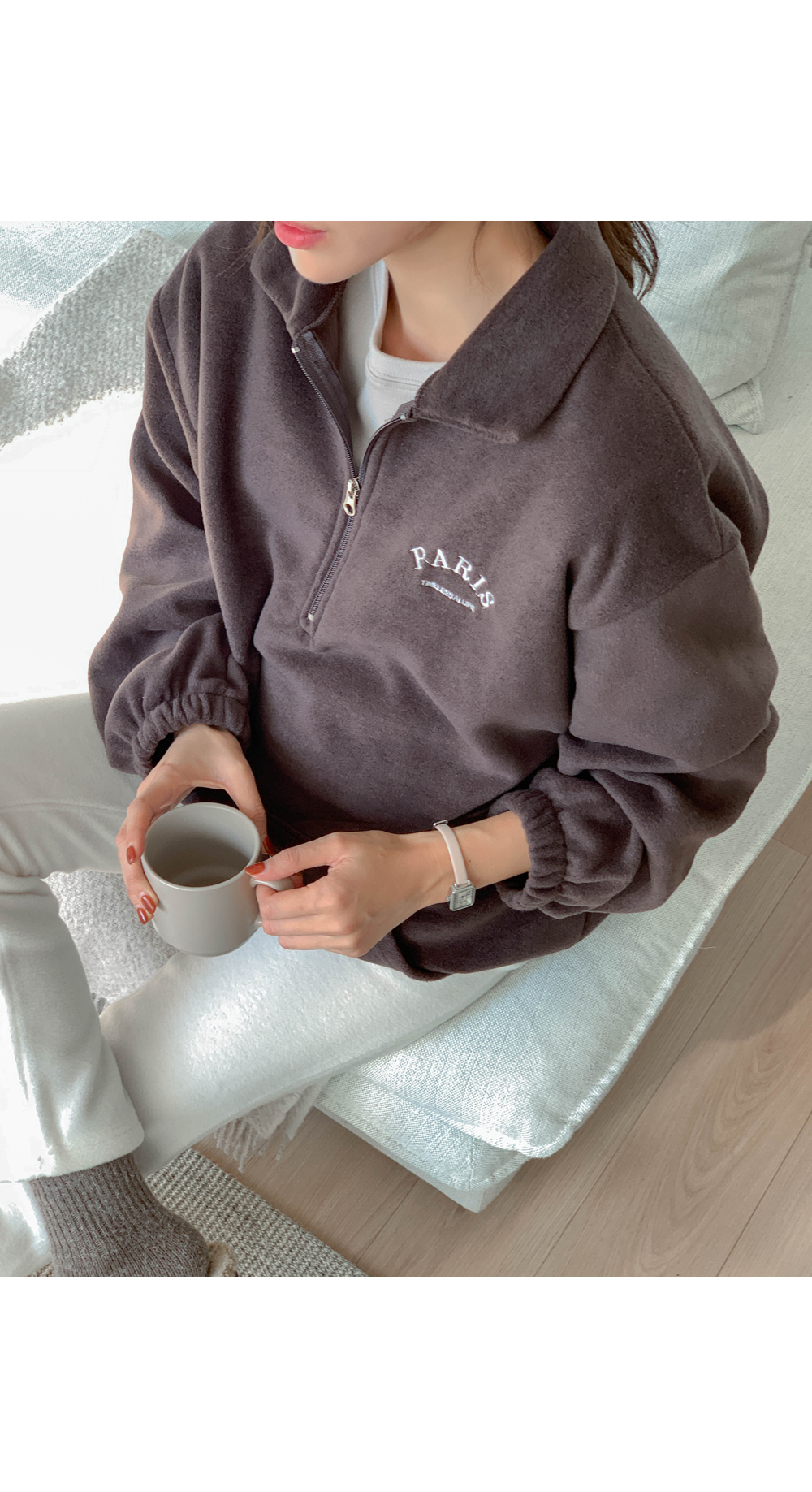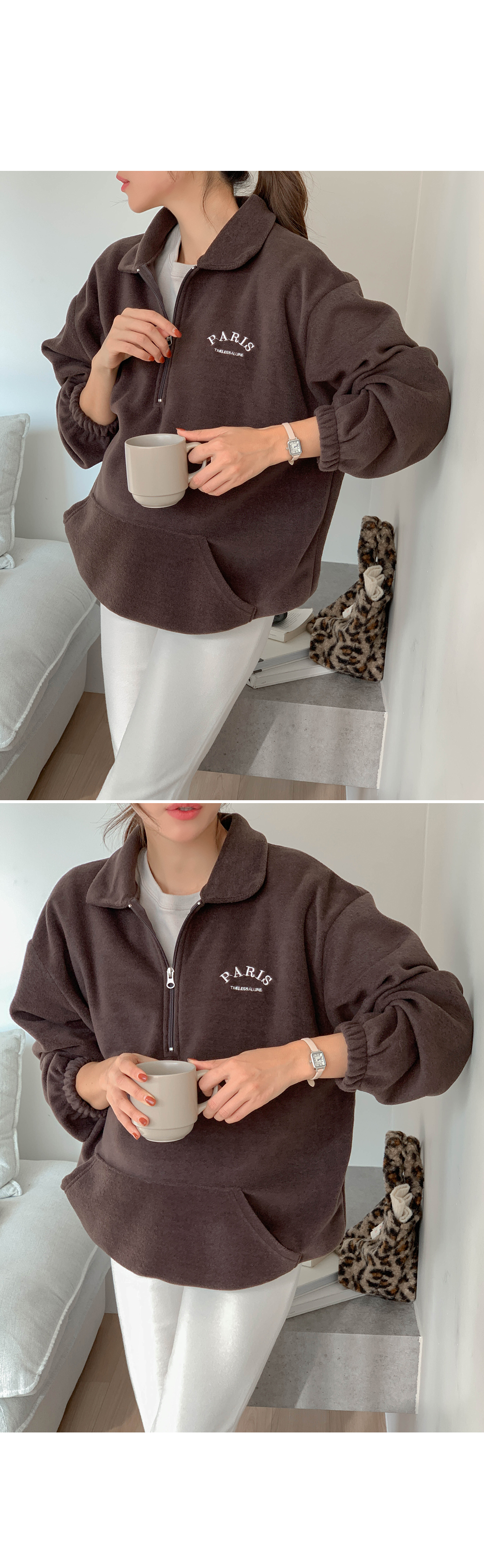 Maternity*Shuel embroidery fleece half-zip-up)