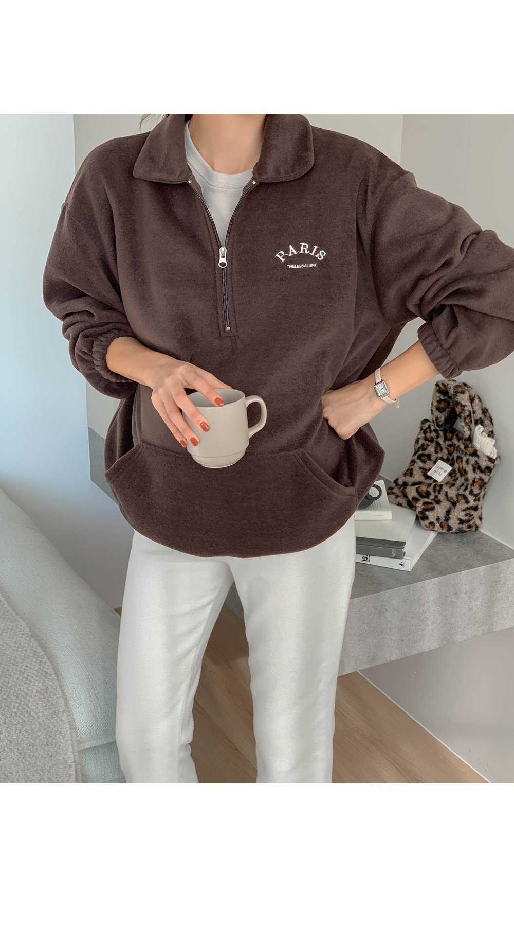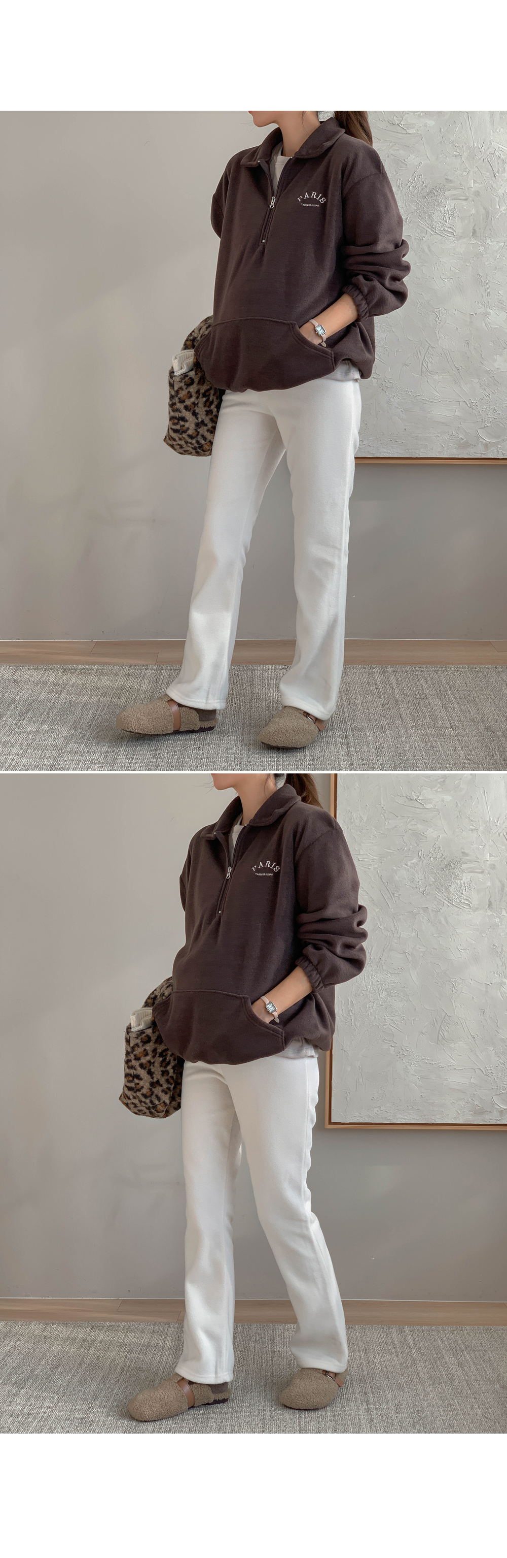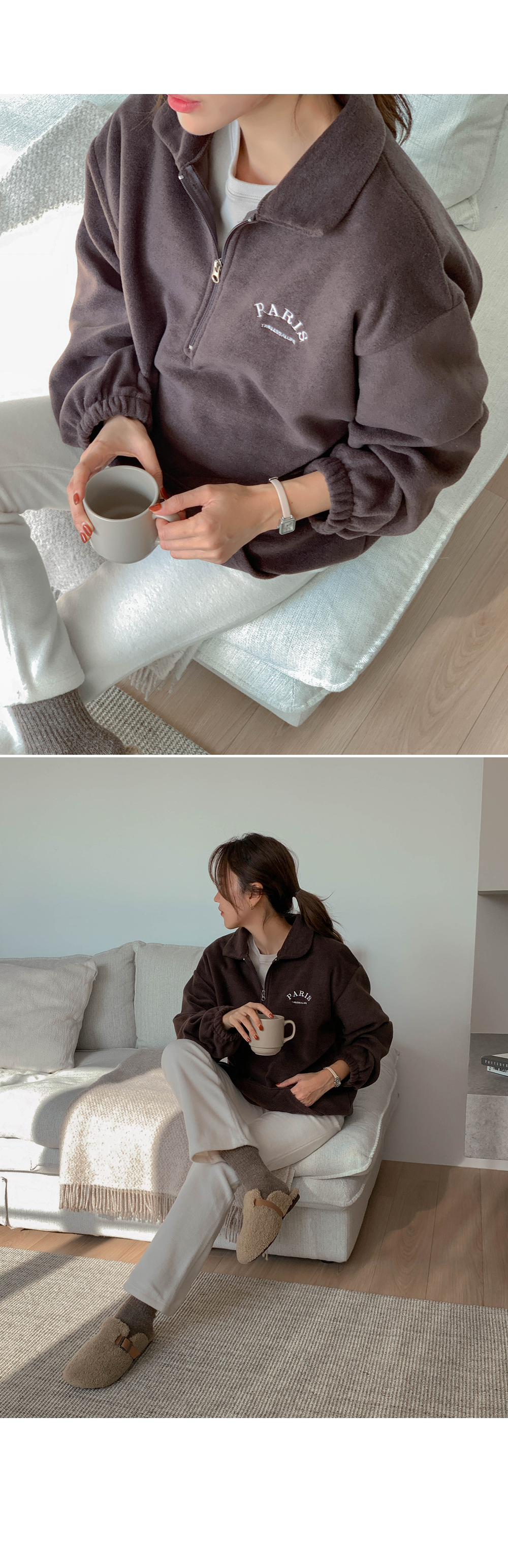Maternity*Shuel embroidery fleece half-zip-up
