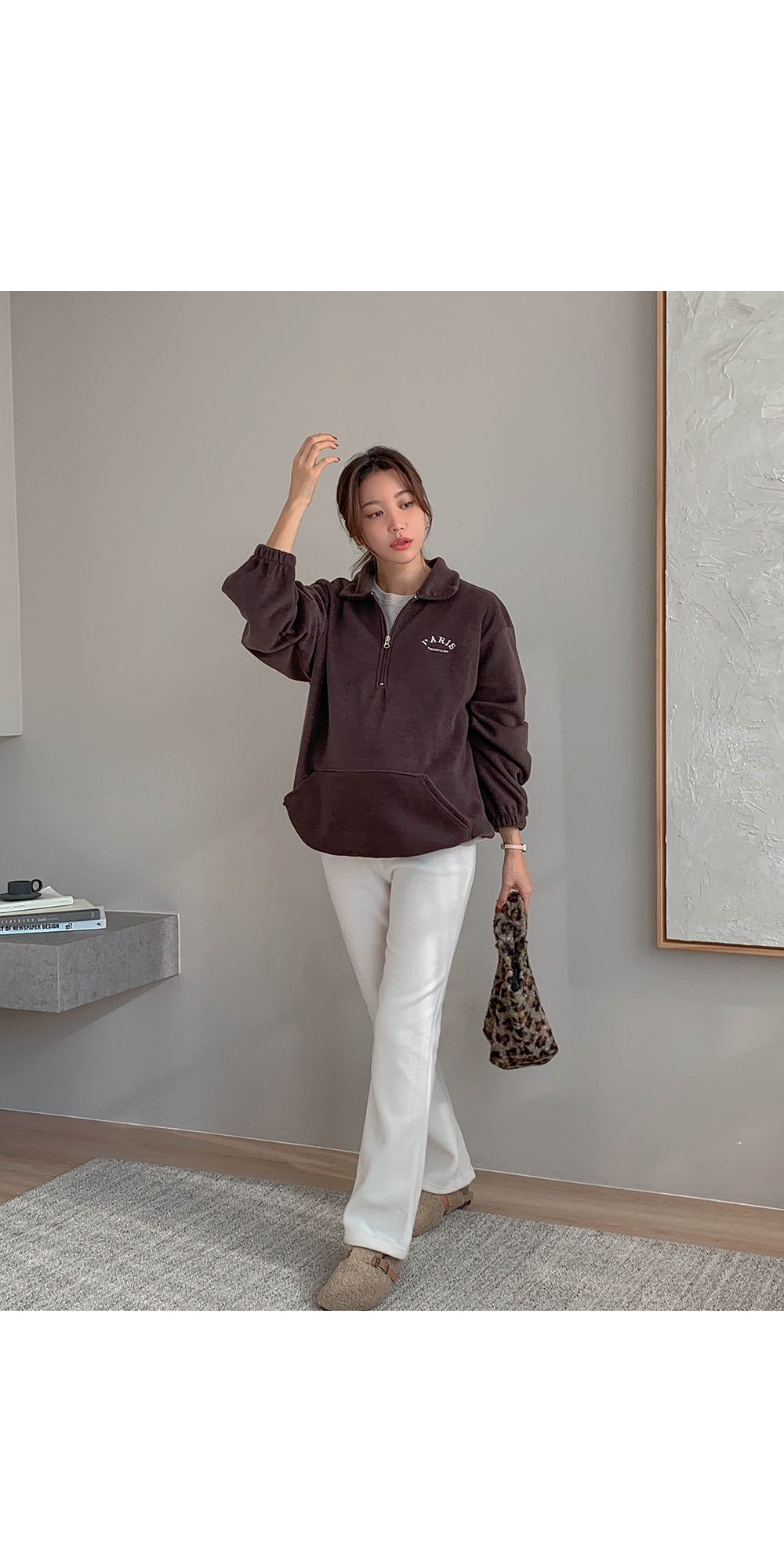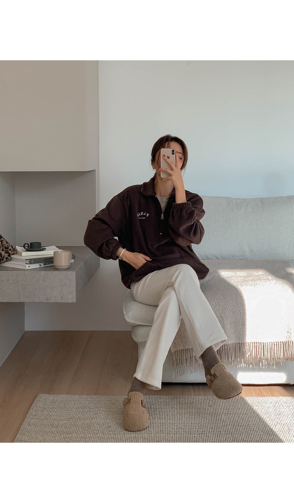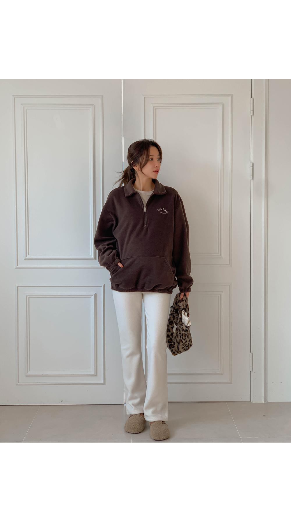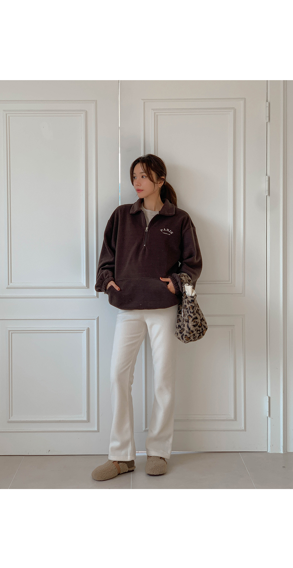 Maternity*Shuel embroidery fleece half-zip-up