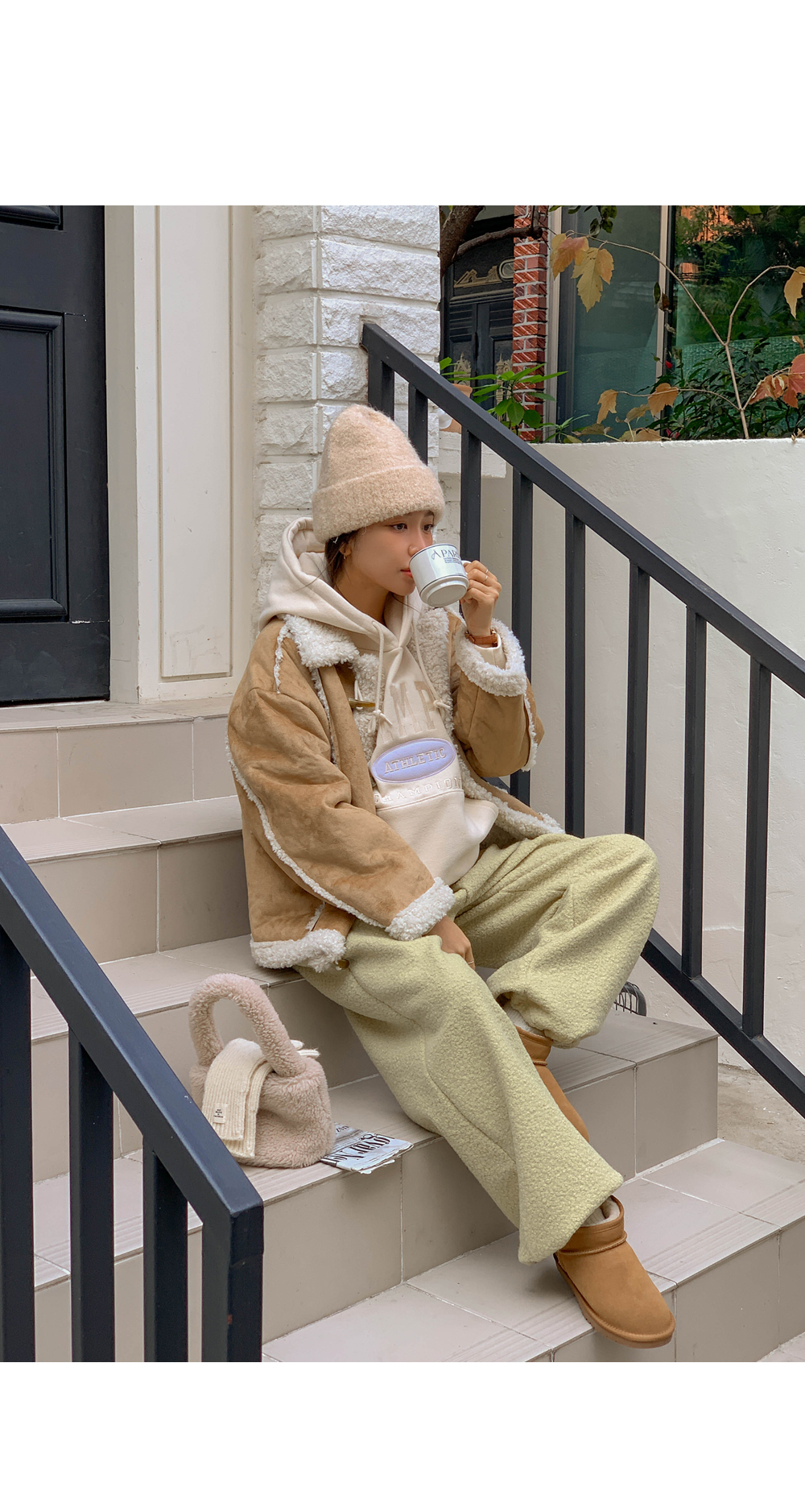 Maternity*Olpia Embroidery Sheepskin Hoodie)