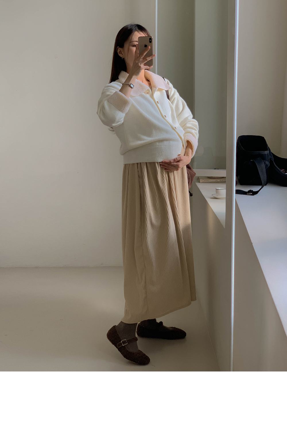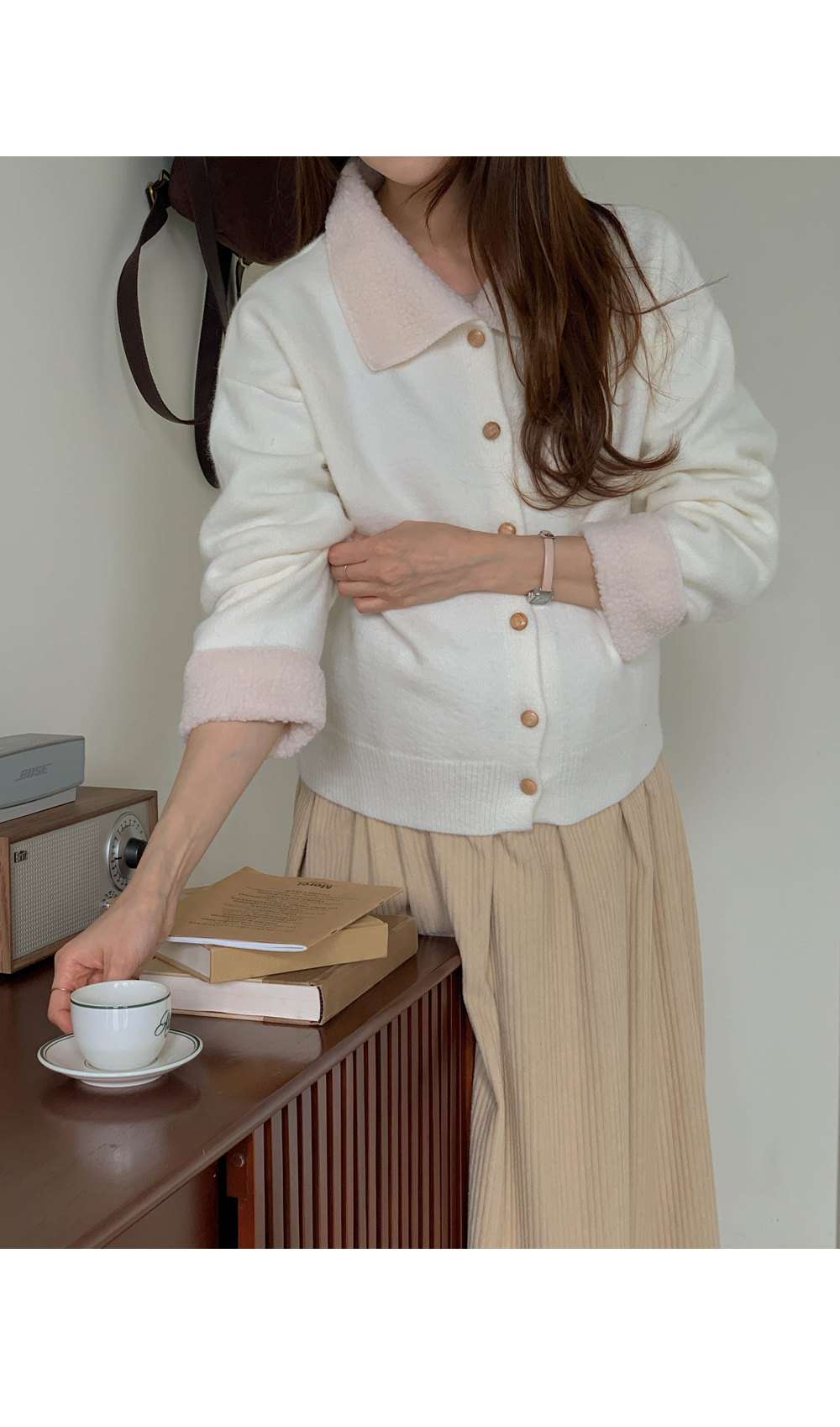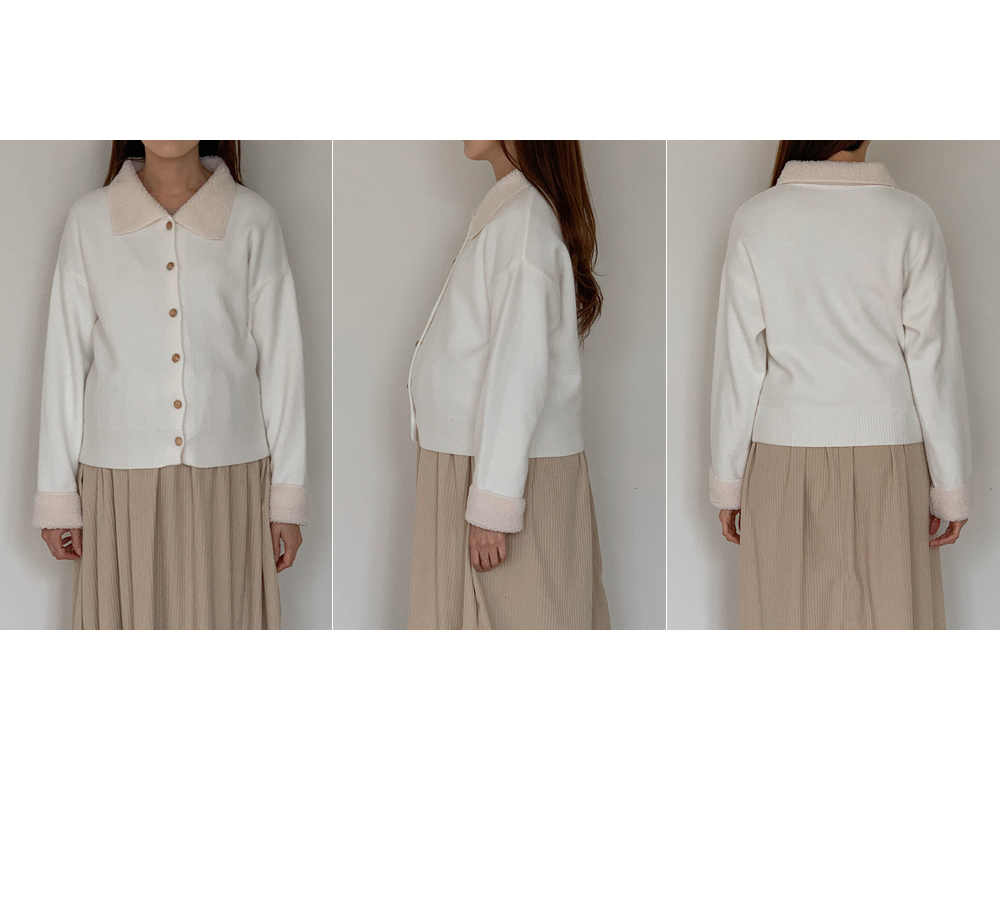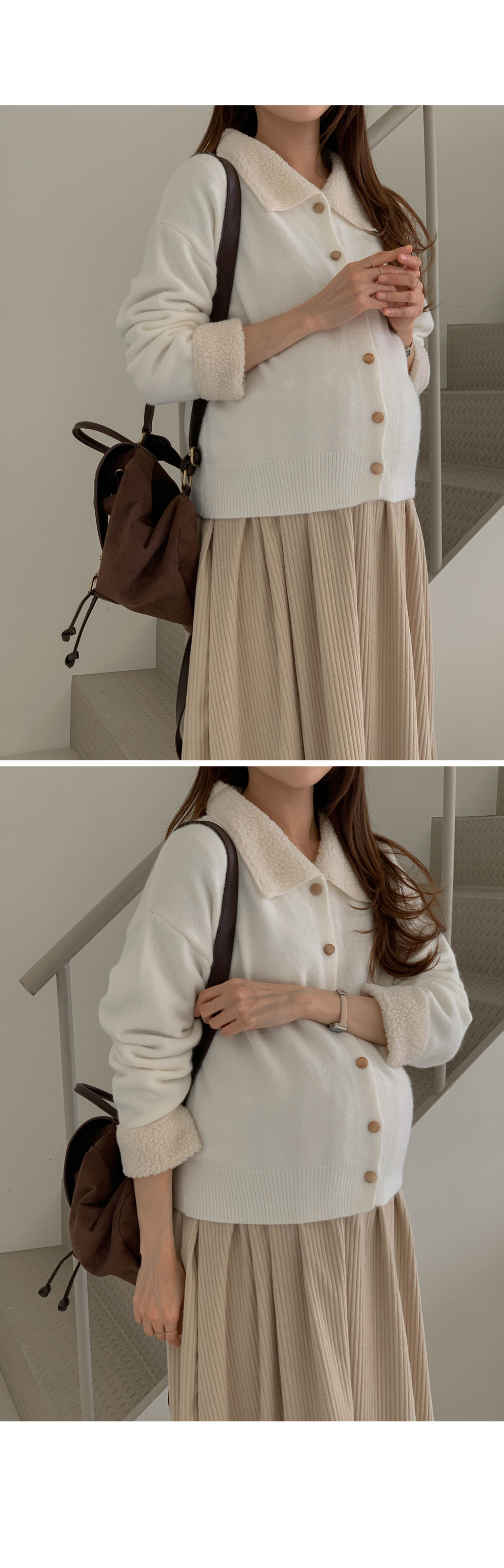 Maternity*Fluffy Collar Wood Button Cardigan)