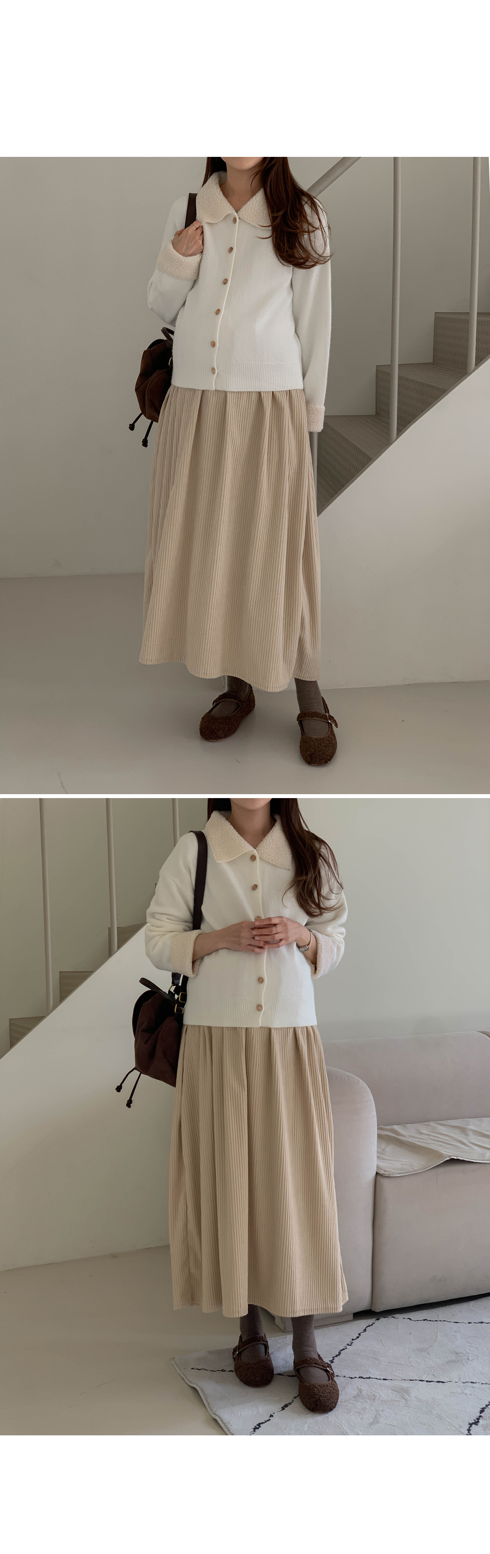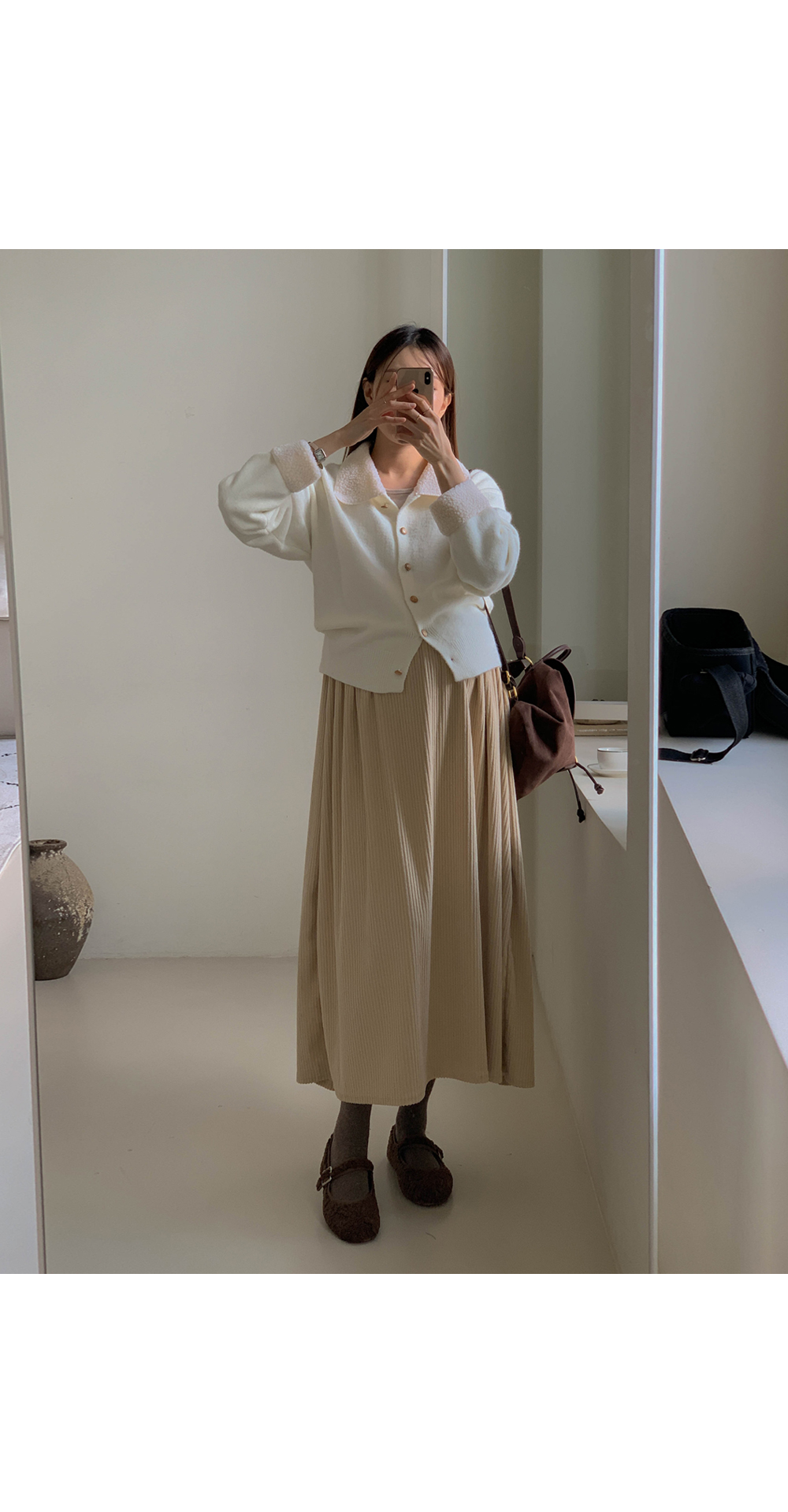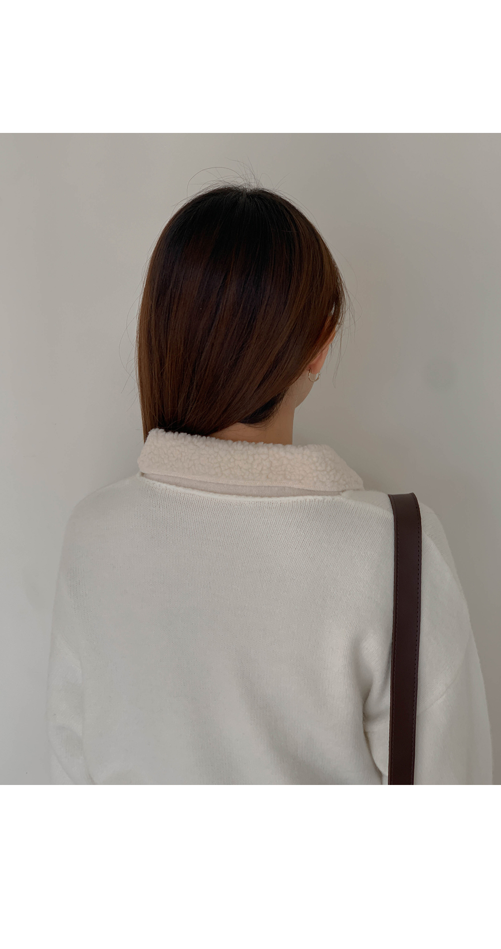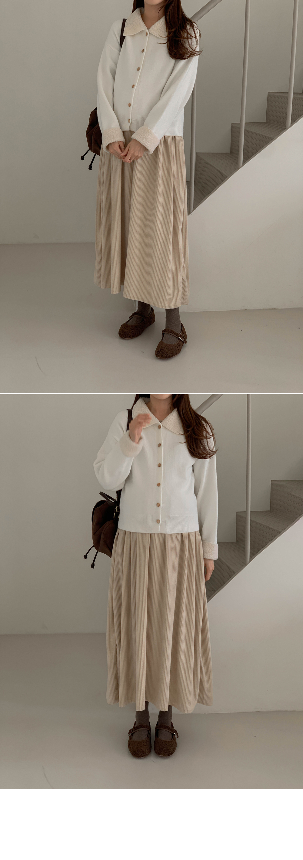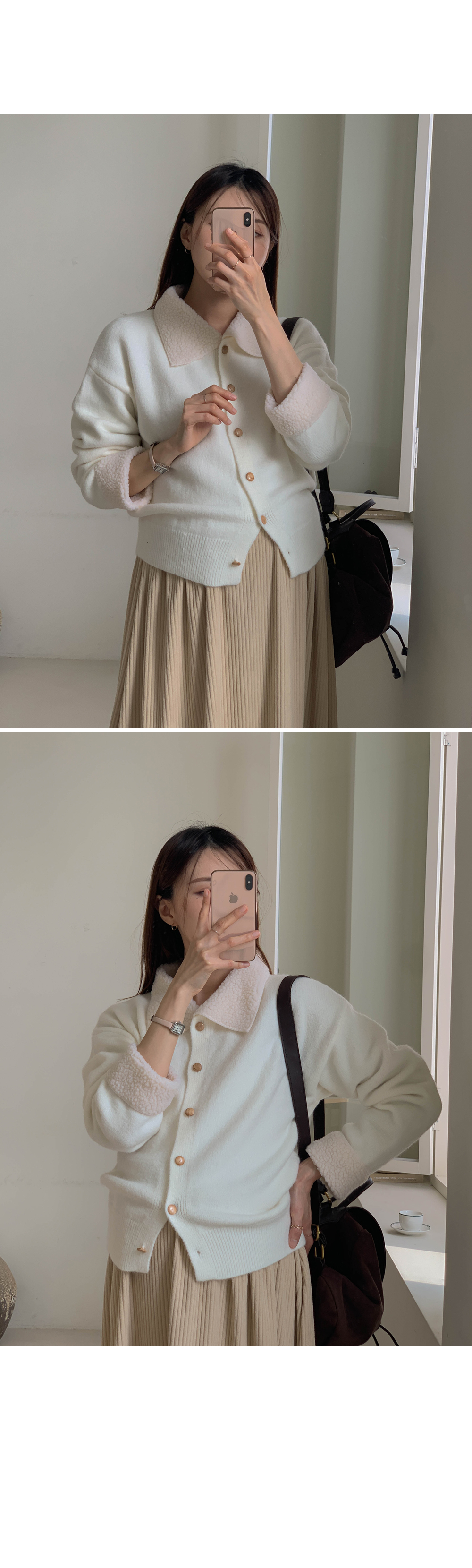 Maternity*Fluffy Collar Wood Button Cardigan)