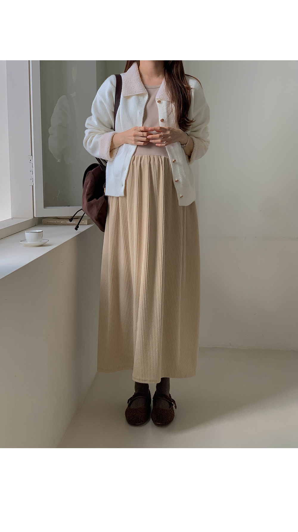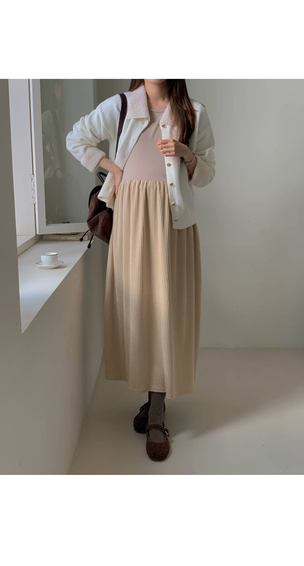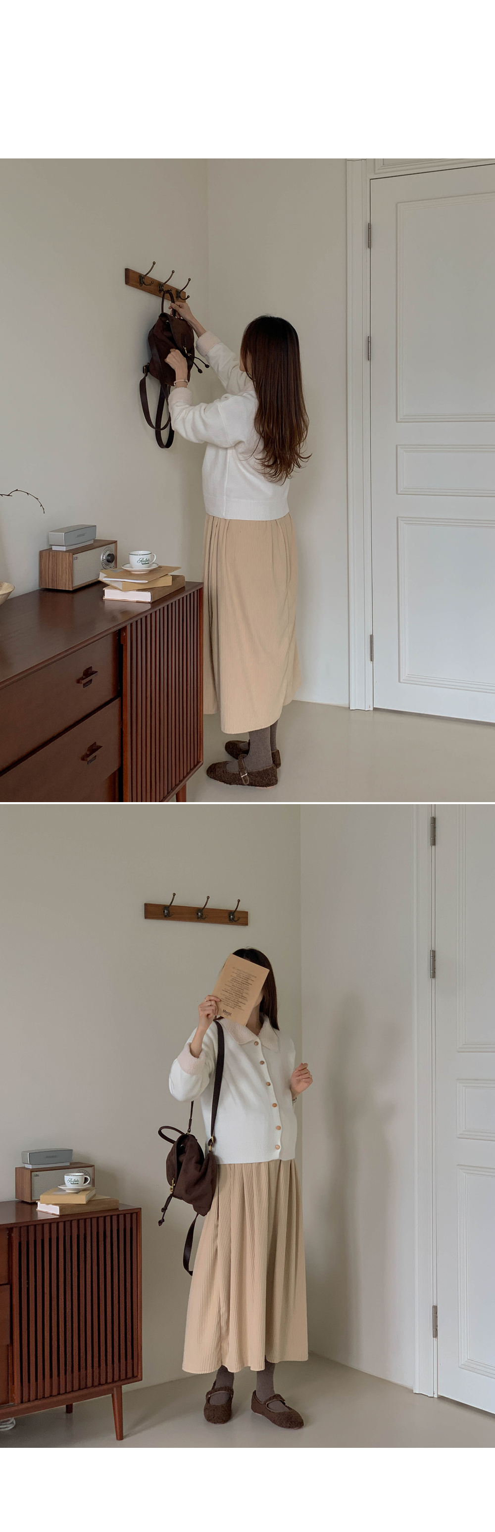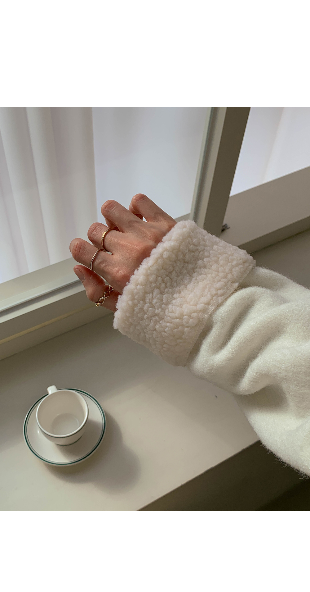 Maternity*Fluffy Collar Wood Button Cardigan)