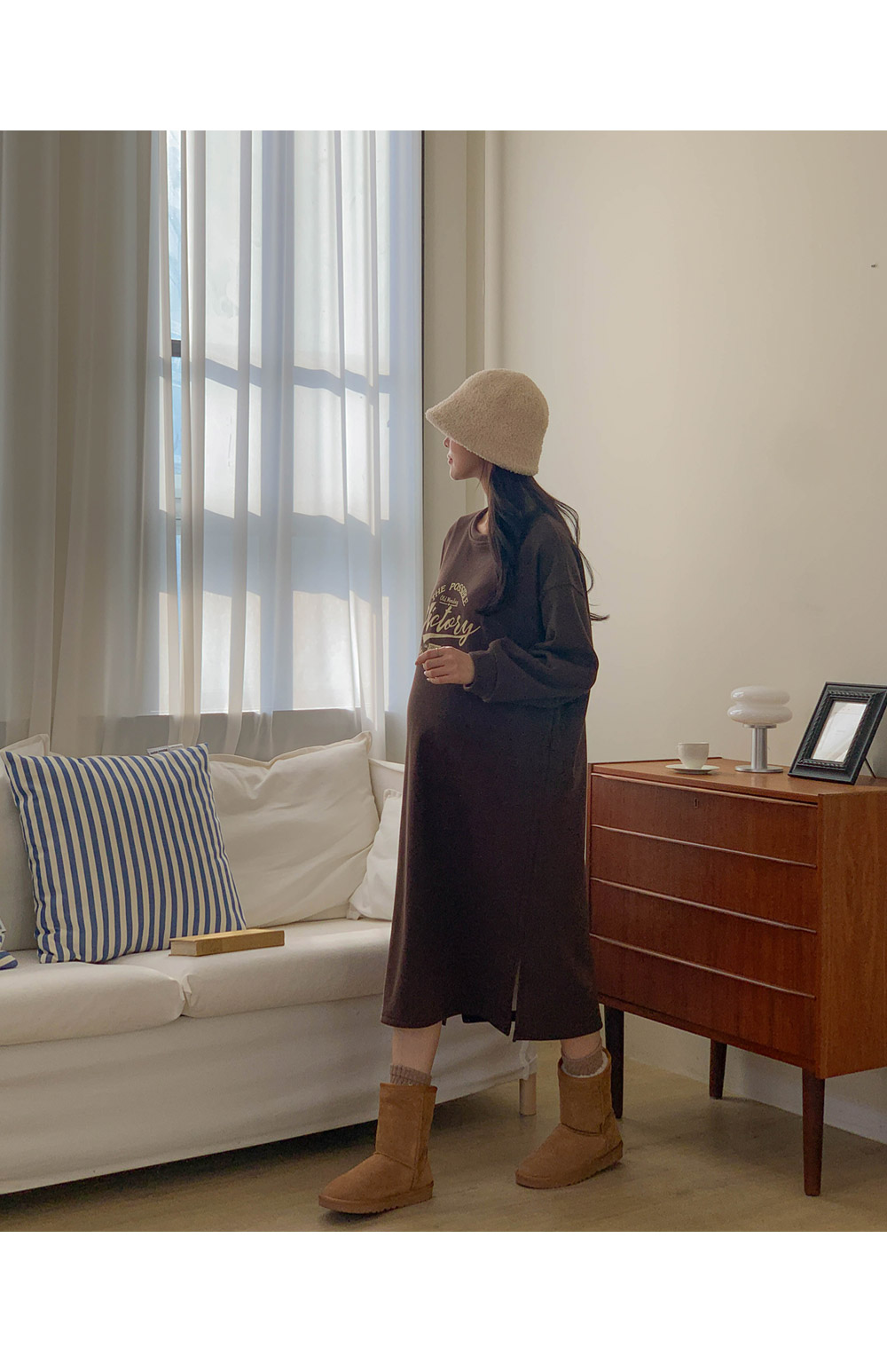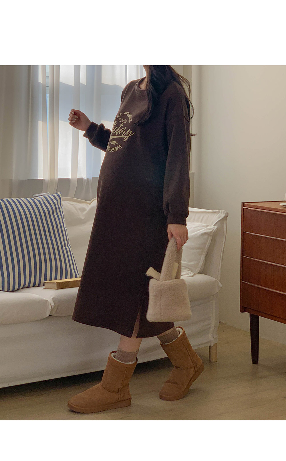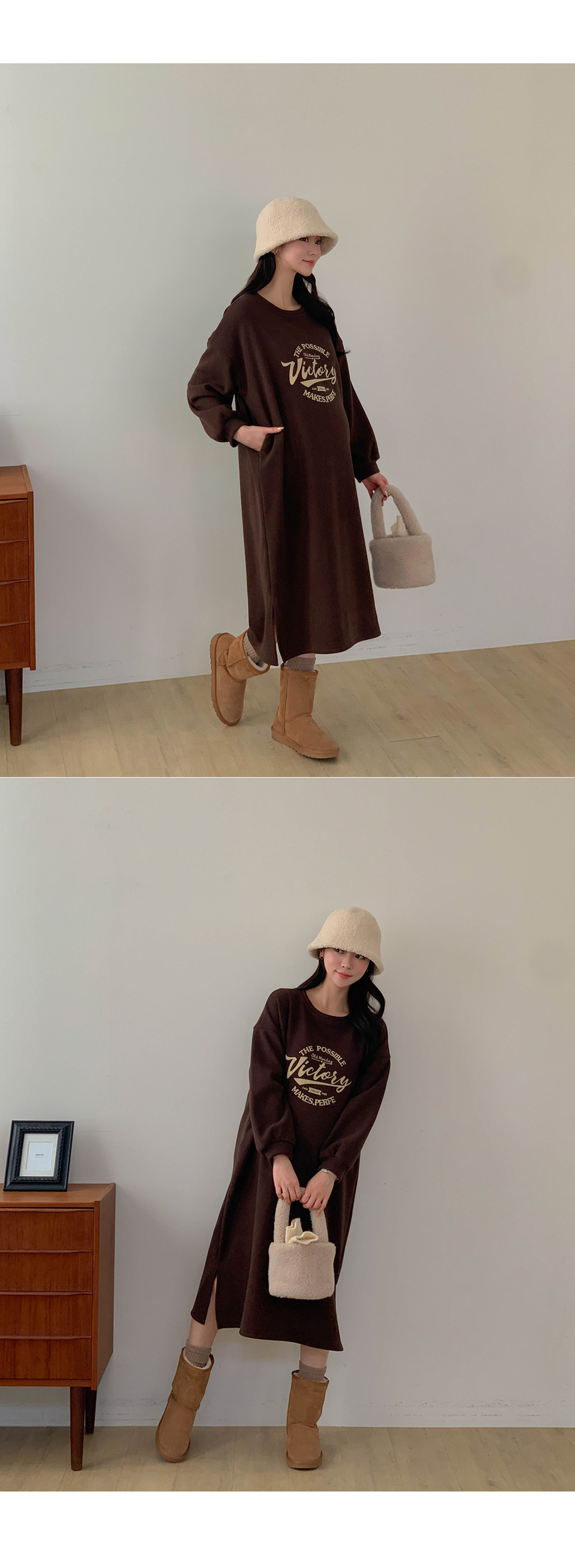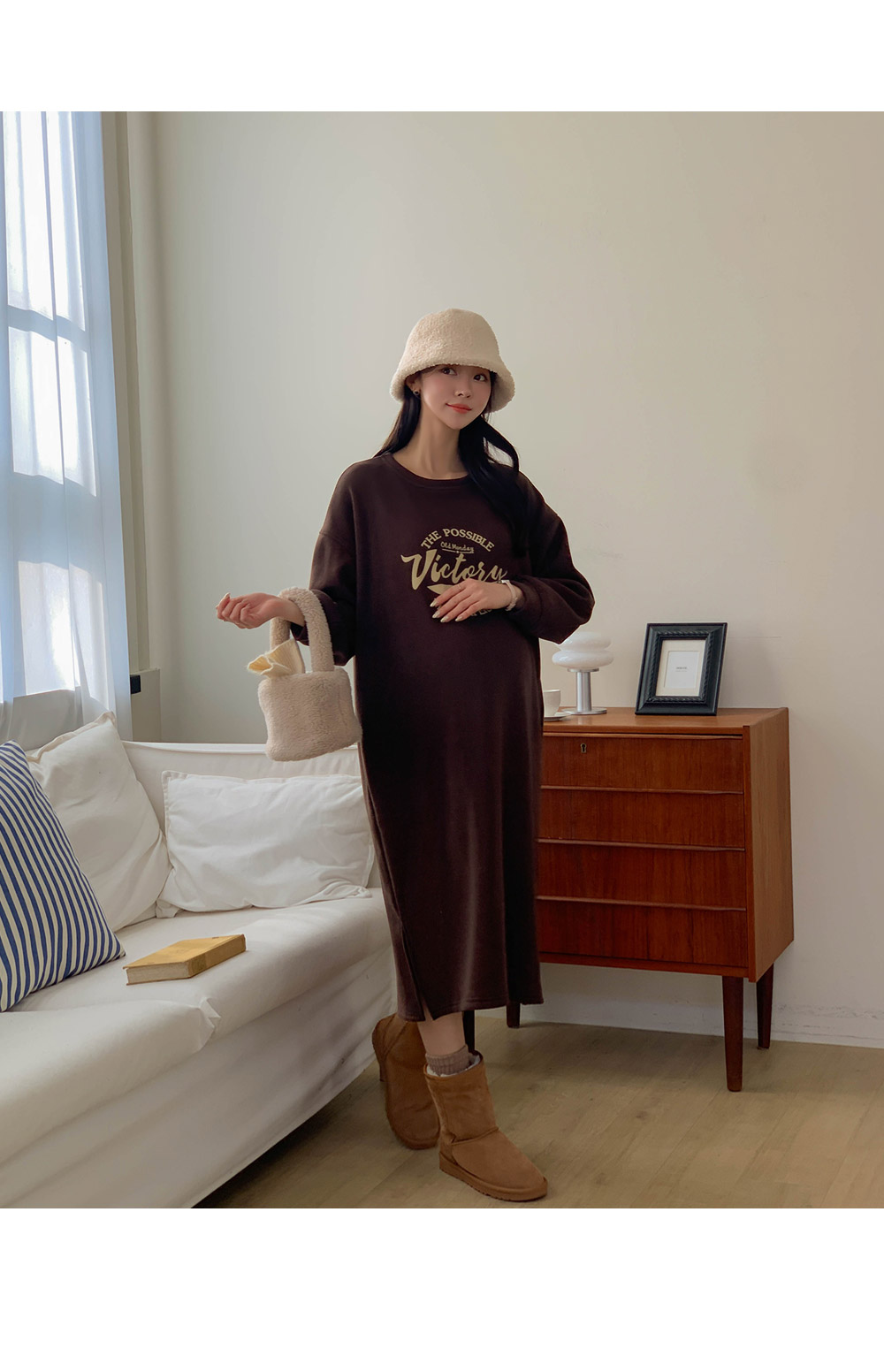 Maternity*Boren Mink Lining Side Slit One Piece)