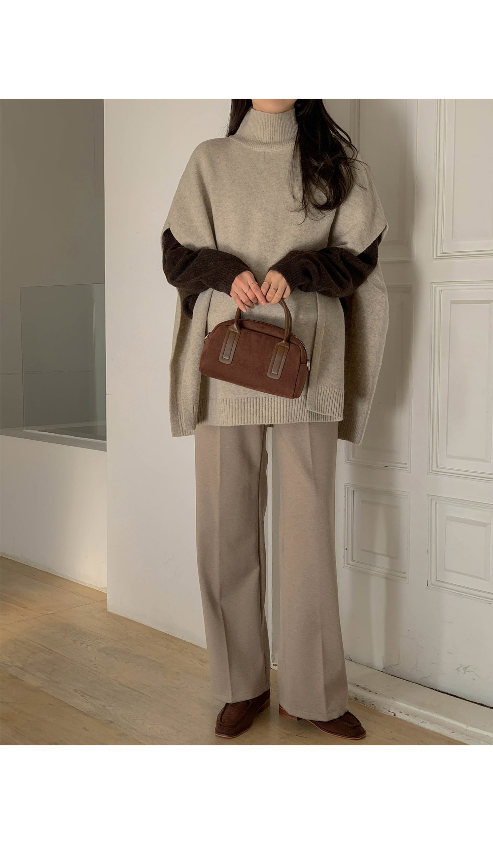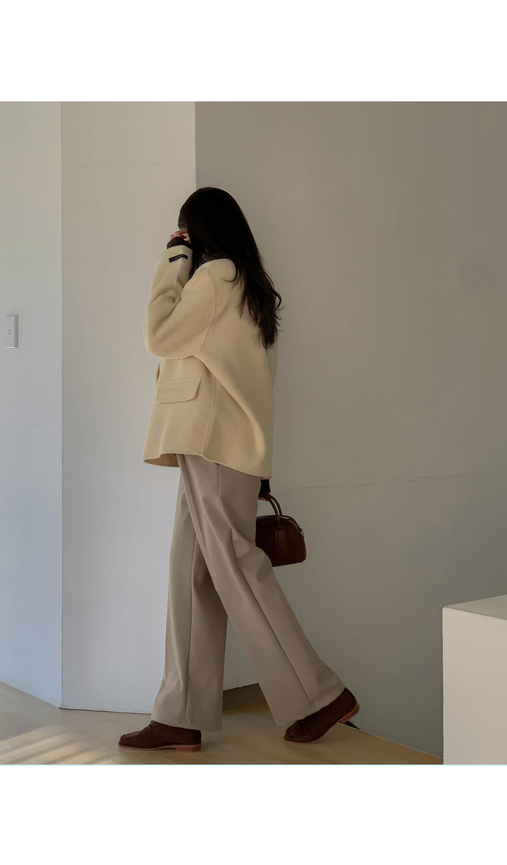 Maternity*Fluffy Fleece Pin Tuck Slacks)