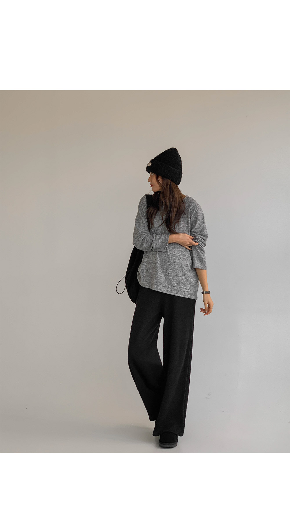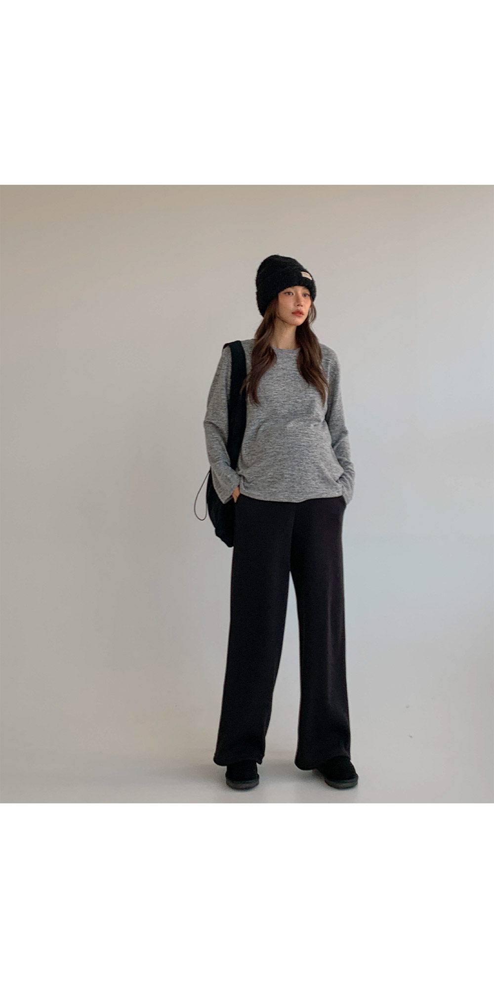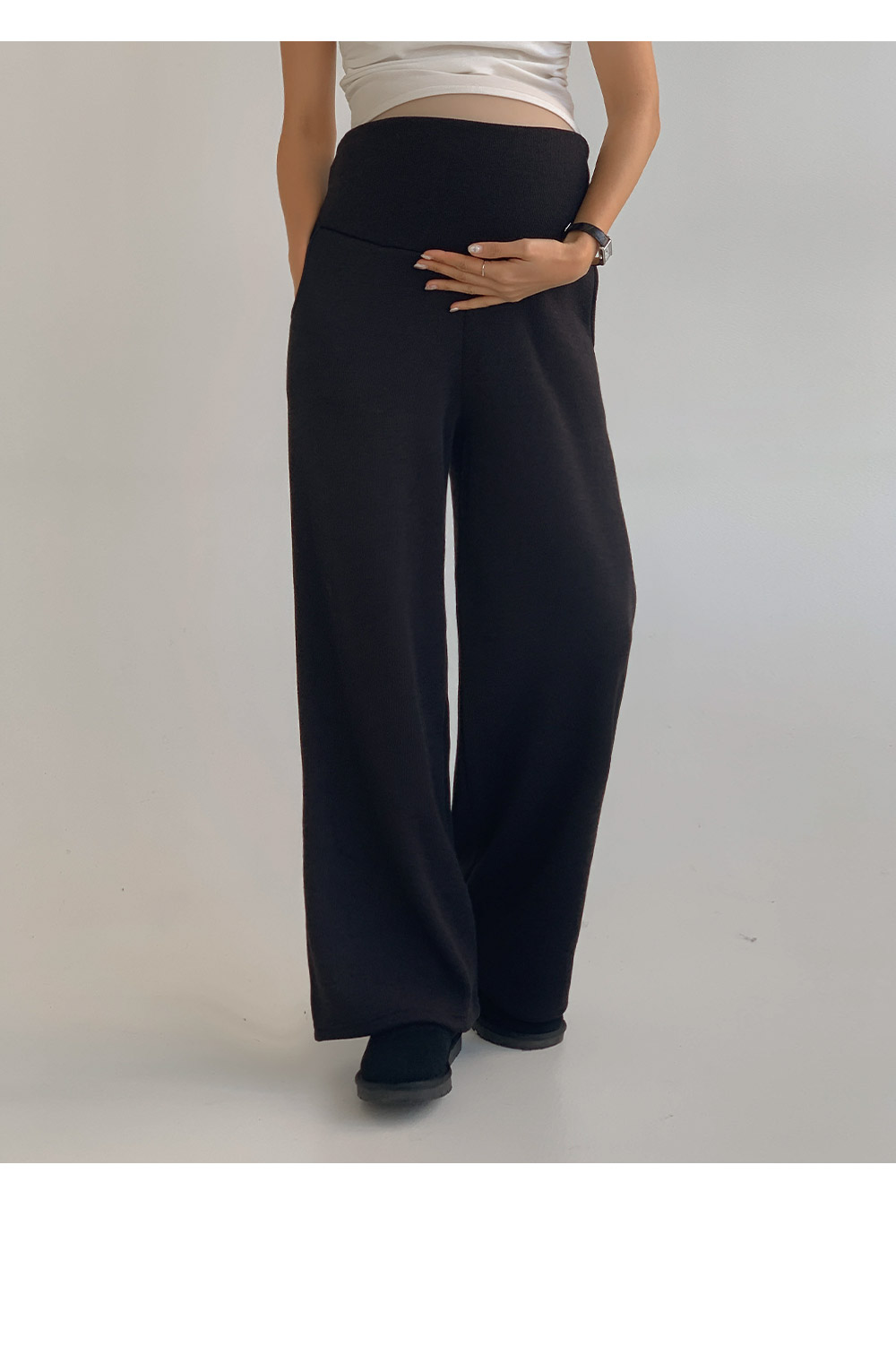 Maternity* Wide knit pants with thick fleece lining)